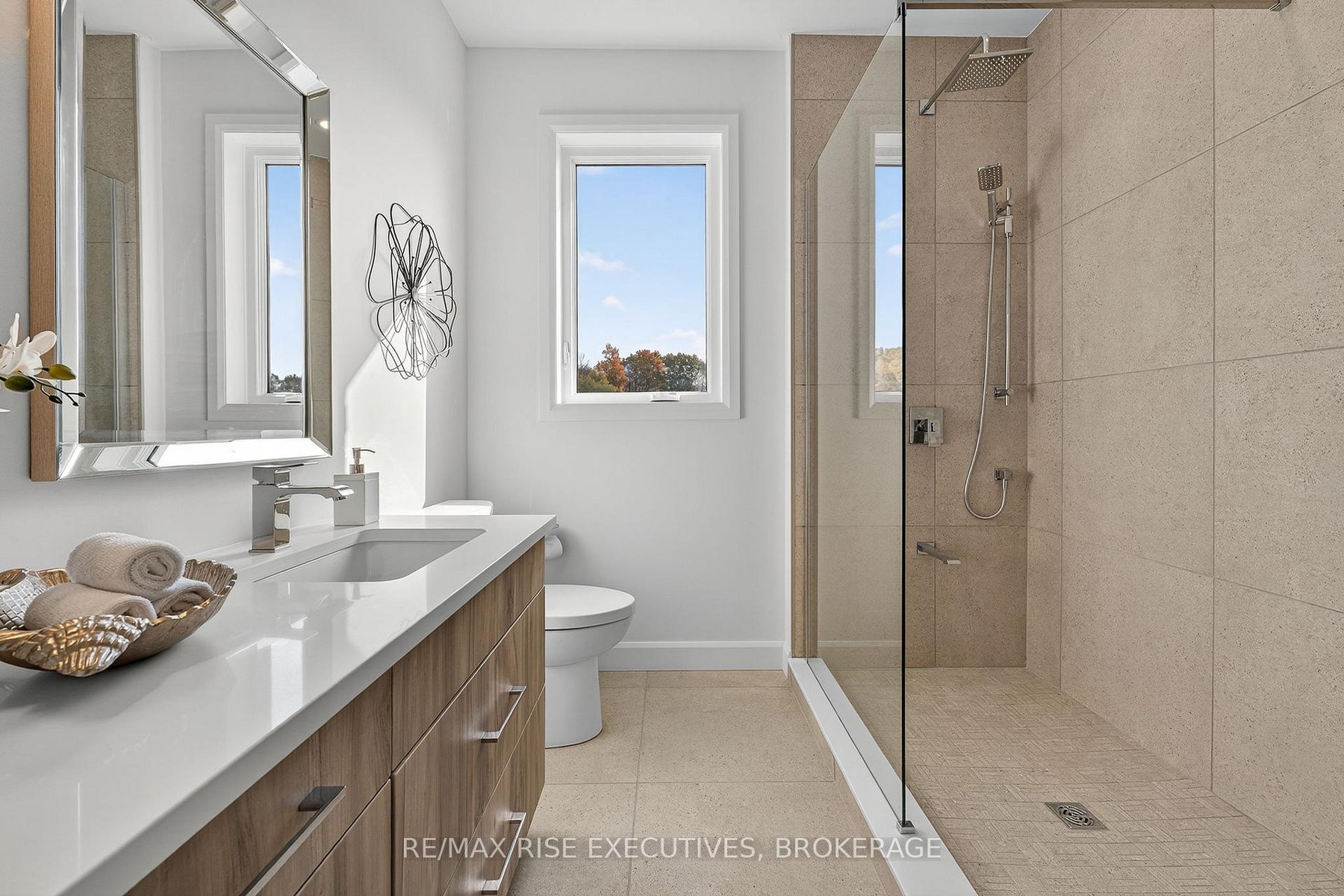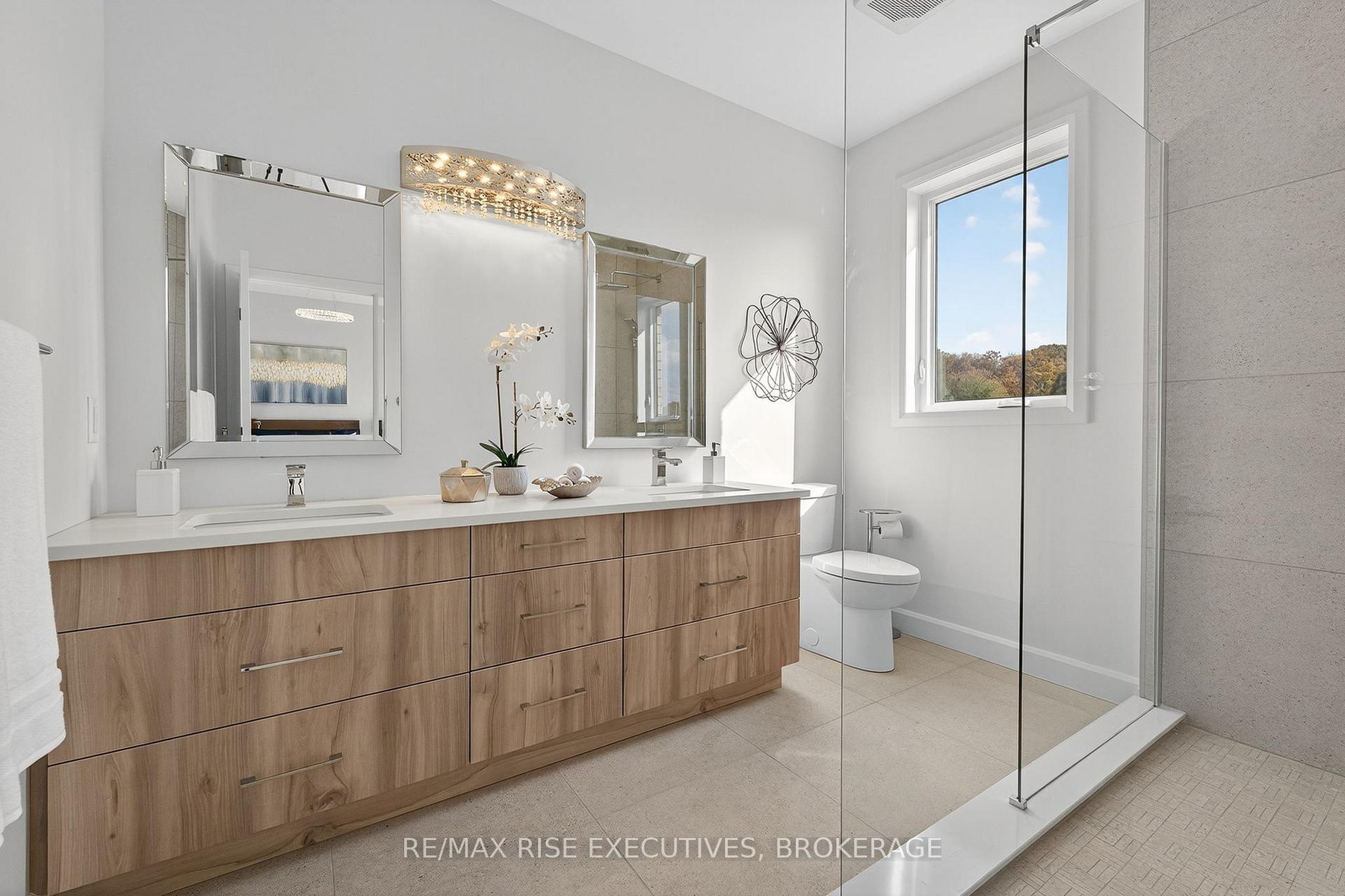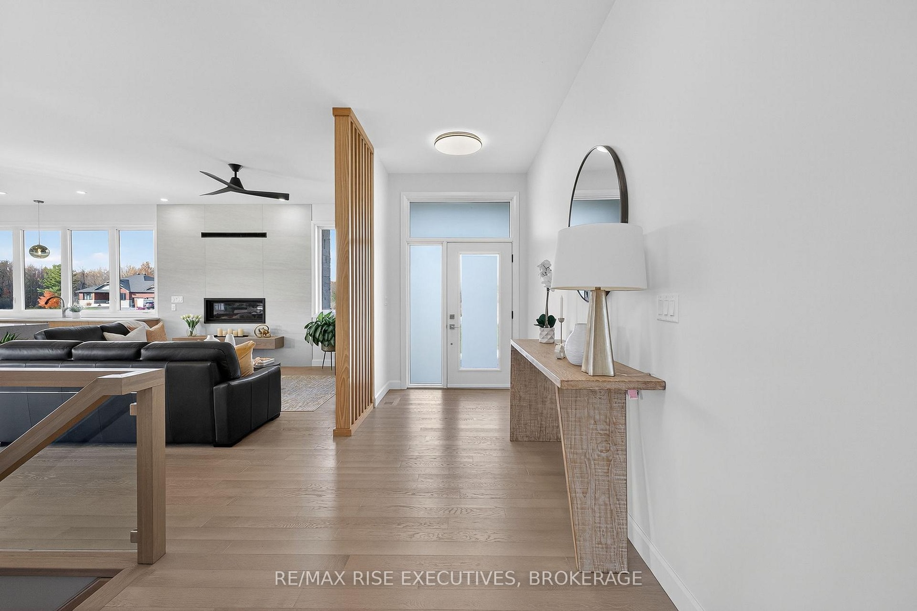 Nestled just minutes north of Kingston, this luxurious estate-style home combines timeless craftsmanship with modern sophistication. Built on a solid ICF foundation and wrapped in a full masonry exterior, it stands as a true testament to elegant and enduring design. Step through premium doors into a grand foyer with soaring ceilings, where Gaylord hardwood floors flow throughout the home. The open-concept main level is anchored by a striking gas fireplace in the living room-creating warmth and ambiance that beautifully complement the home's architectural character. At the heart of the home, a gourmet kitchen worthy of a magazine spread features a waterfall island, custom cabinetry, and stainless steel appliances, including a full-sized fridge and stove. Upstairs, glass railings and hardwood staircases showcase the fine attention to detail, leading to a spa-inspired primary ensuite with a glass-enclosed shower-your private retreat at the end of the day. Outside, a covered rear deck overlooks the expansive backyard, offering a perfect setting for entertaining or quiet evenings outdoors. With a three-car driveway, premium construction, and the reassurance of a Tarion new-home warranty, this home blends style with long-term confidence.This is estate-style living at its finest-a statement residence that balances grand design, premium finishes, and lasting quality in a serene, highly desirable location.
