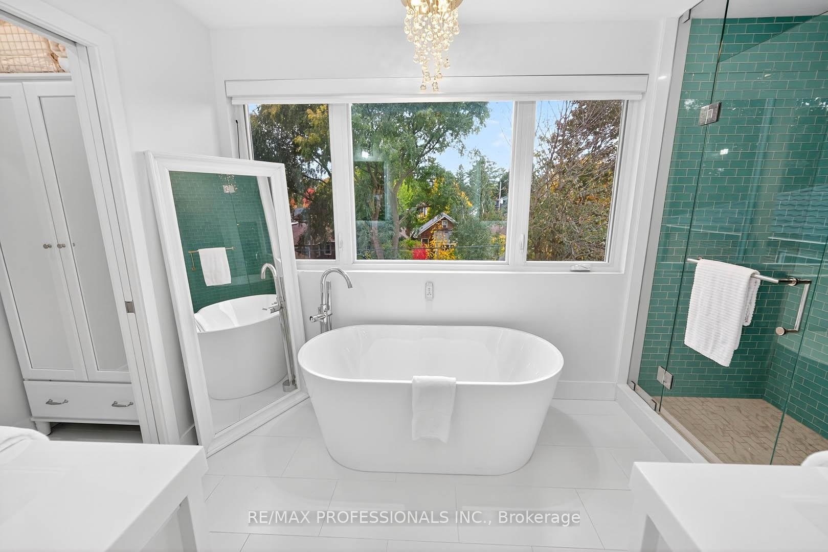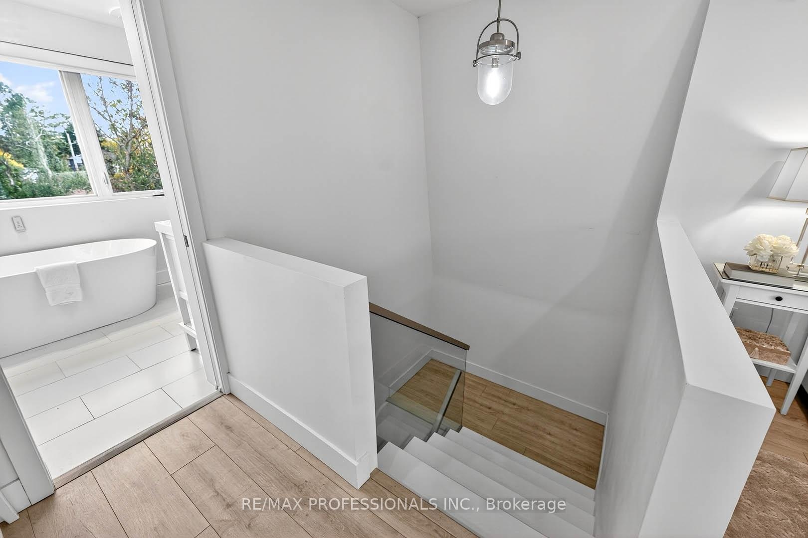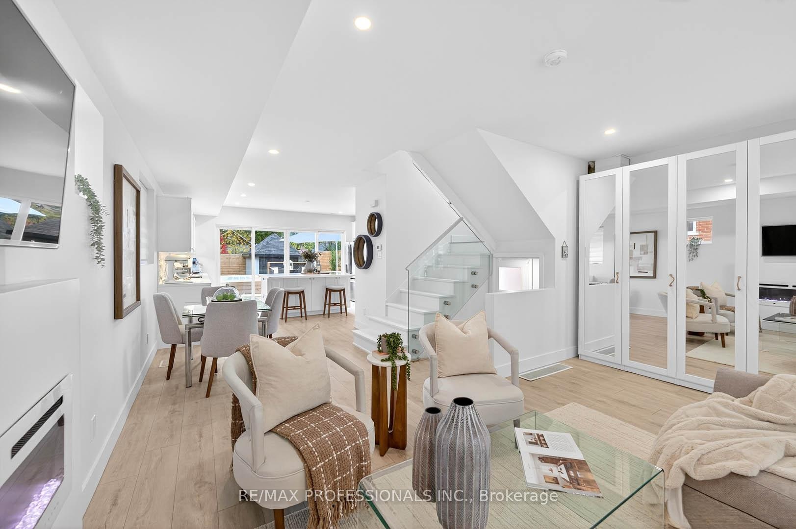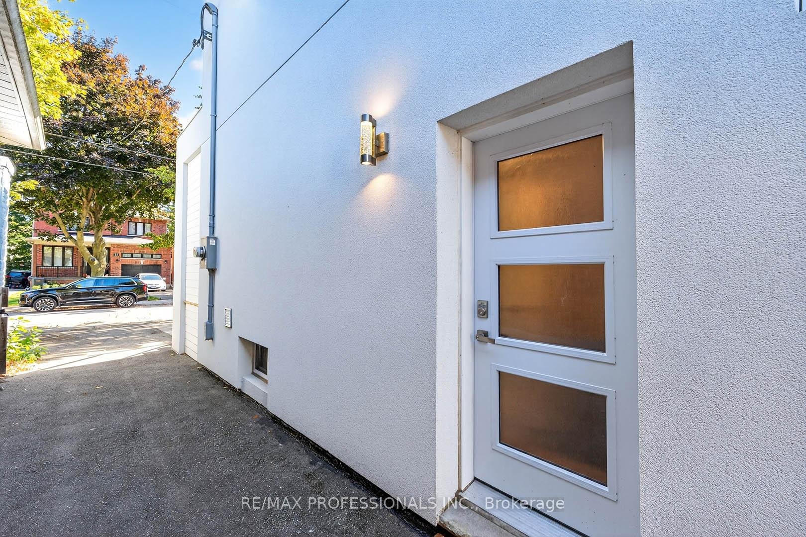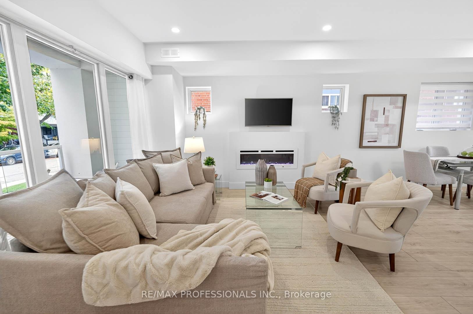Stunning 3-Story California-Inspired Home, Completely Rebuilt in 2023! This one-of-a-kind residence in New Toronto's Lake-Side community offers 3 spacious bedrooms, 4 beautifully designed bathrooms, and a perfect blend of modern luxury and warm charm. The open-concept main floor features a sun-filled living space and a chef's dream kitchen with a large family island, premium stainless-steel appliances, integrated built-in dishwasher, countertop stove with commercial-grade hood vent, and built-in wall oven & microwave. Elegant undermount and glass cabinet lighting, along with ample storage, make this kitchen an entertainer's delight! Step outside to a large back deck and garden with a built-in Hydropool Swim Spa, creating a private backyard oasis ideal for relaxation or gatherings. The 2nd level boasts two large, light-filled bedrooms with generous closets, a modern 4-piece bath, and convenient laundry. Retreat to the entire third level, exclusively designed as a private Primary Suite featuring a sun-drenched bedroom with an electric fireplace, balcony overlooking the treed neighborhood, and a luxurious 5-piece spa ensuite with a soaker tub, crystal chandelier, double sinks with light-up anti-fog mirrors, and a separate shower with elegant glass Tiffany tile. Enjoy instant privacy with a custom remote blind! Glass & steel railings throughout add a sleek, contemporary touch. The finished basement offers a separate entrance, kitchen area with rough-in for a stovetop, spacious recreation room, 3-piece bath, fourth bedroom, and rough-in for additional laundry-perfect for guests or in-law/rental suite potential! Complete with a garage for storage, steps to beautiful parks, trails, schools, shopping, transit (TTC & GO), and so much more, this fully rebuilt home is truly turnkey and ready for you to move right in and start living your life by the lake!