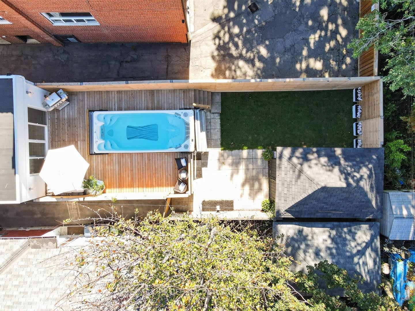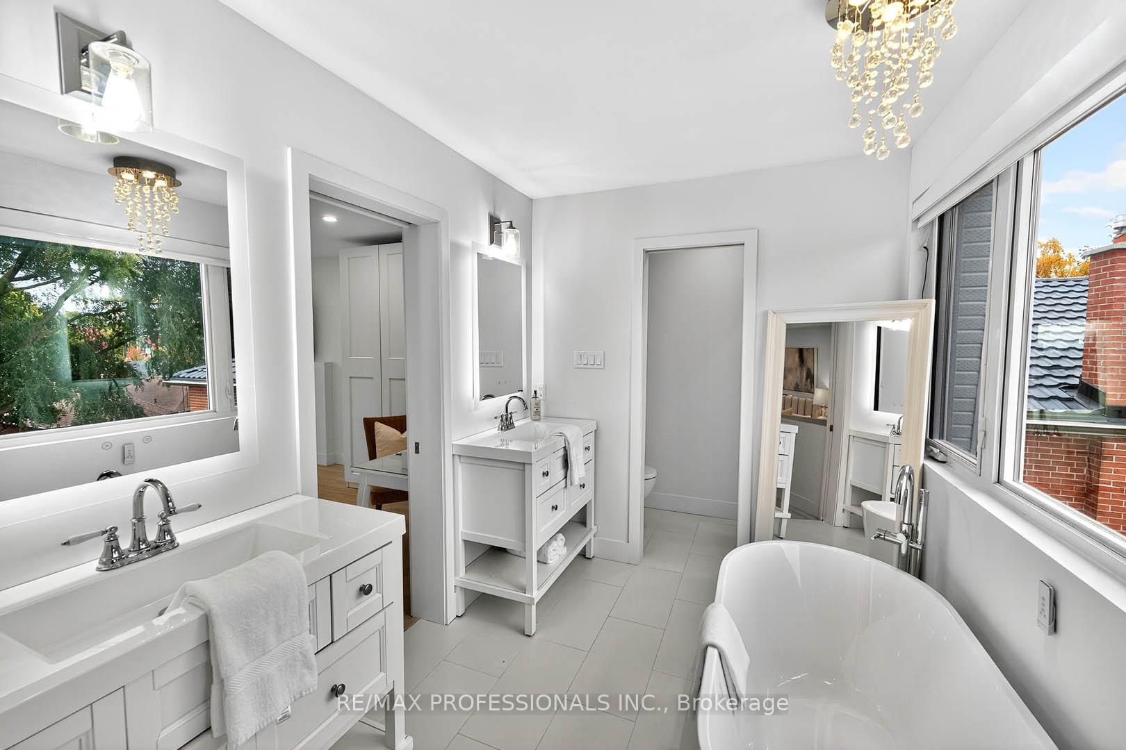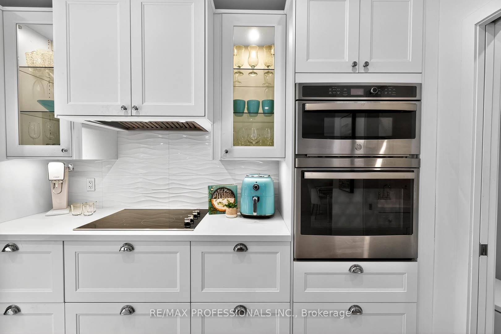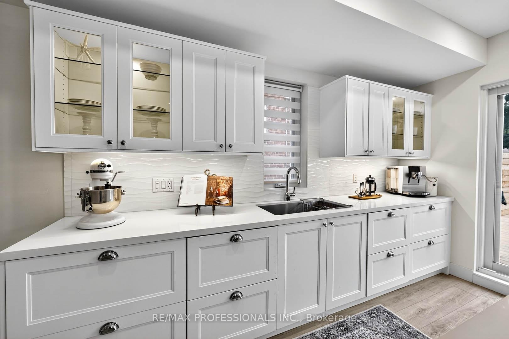 Stunning 3-Story California-Inspired Home, Completely Rebuilt in 2023! This one-of-a-kind residence in New Toronto's Lake-Side community offers 3 spacious bedrooms, 4 beautifully designed bathrooms, and a perfect blend of modern luxury and warm charm. The open-concept main floor features a sun-filled living space and a chef's dream kitchen with a large family island, premium stainless-steel appliances, integrated built-in dishwasher, countertop stove with commercial-grade hood vent, and built-in wall oven & microwave. Elegant undermount and glass cabinet lighting, along with ample storage, make this kitchen an entertainer's delight! Step outside to a large back deck and garden with a built-in Hydropool Swim Spa, creating a private backyard oasis ideal for relaxation or gatherings. The 2nd level boasts two large, light-filled bedrooms with generous closets, a modern 4-piece bath, and convenient laundry. Retreat to the entire third level, exclusively designed as a private Primary Suite featuring a sun-drenched bedroom with an electric fireplace, balcony overlooking the treed neighborhood, and a luxurious 5-piece spa ensuite with a soaker tub, crystal chandelier, double sinks with light-up anti-fog mirrors, and a separate shower with elegant glass Tiffany tile. Enjoy instant privacy with a custom remote blind! Glass & steel railings throughout add a sleek, contemporary touch. The finished basement offers a separate entrance, kitchen area with rough-in for a stovetop, spacious recreation room, 3-piece bath, fourth bedroom, and rough-in for additional laundry-perfect for guests or in-law/rental suite potential! Complete with a garage for storage, steps to beautiful parks, trails, schools, shopping, transit (TTC & GO), and so much more, this fully rebuilt home is truly turnkey and ready for you to move right in and start living your life by the lake!