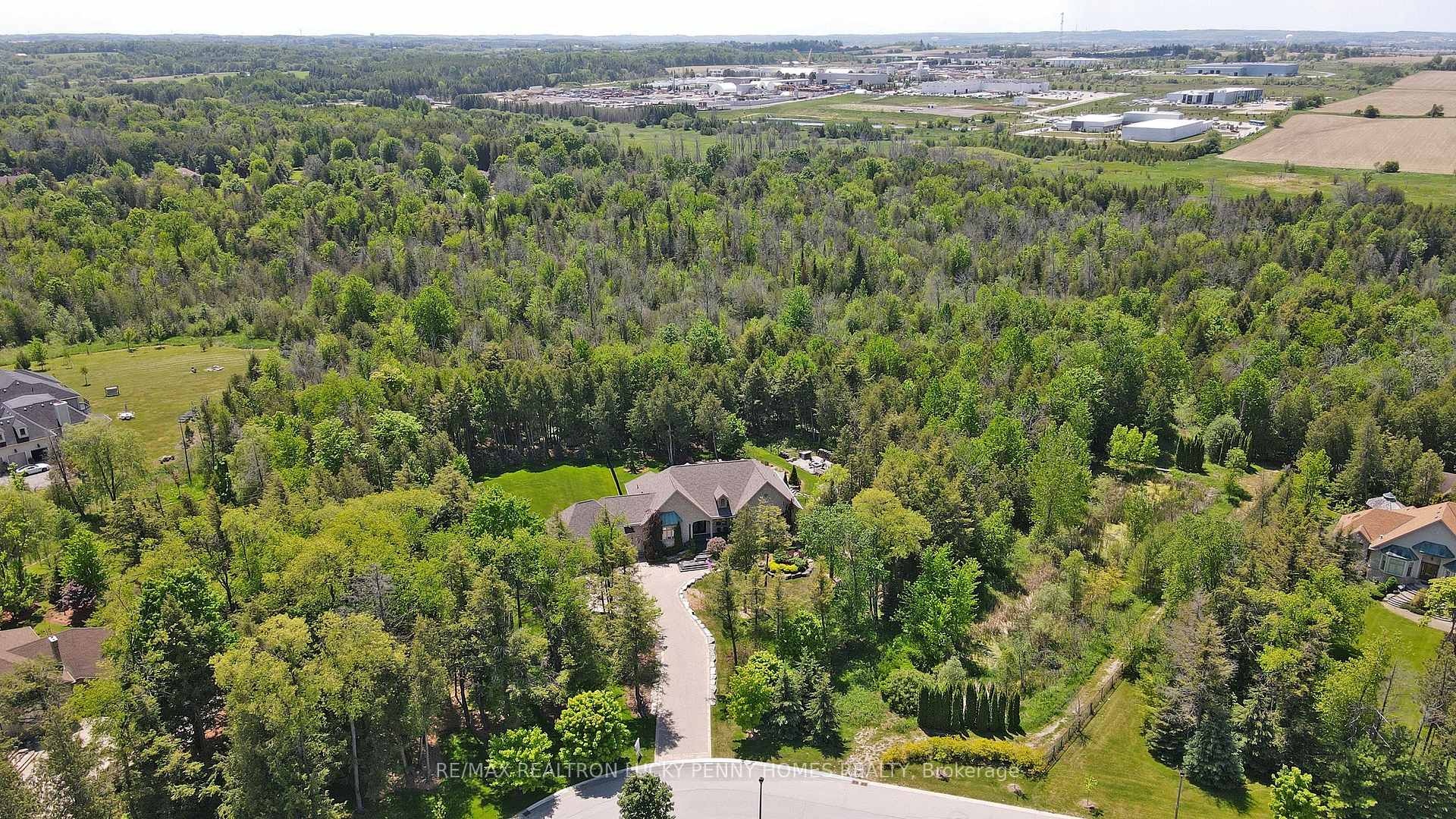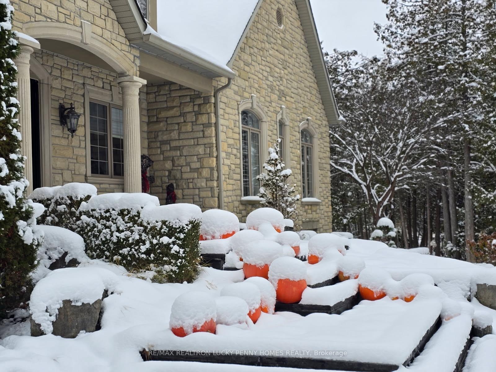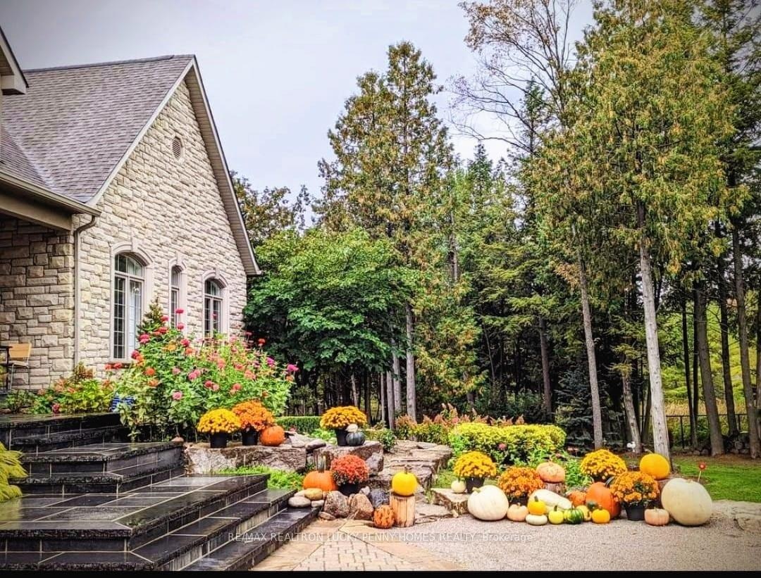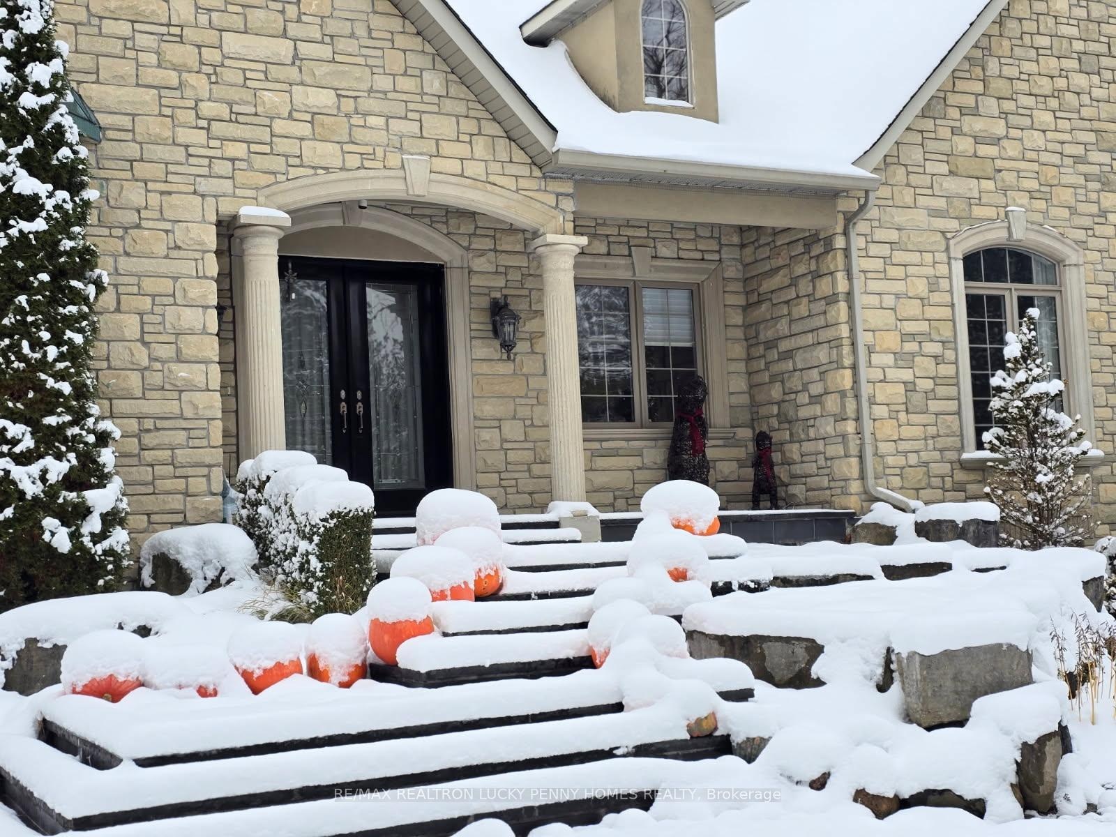 The Ultimate Entertainer's Dream Home! This one-of-a-kind luxury bungalow offers approximately 3,200 sq ft per level of refined living space on a 2-acre private treed lot in a quiet cul-de-sac, backing onto a serene 20-acre parcel with a km walking trail loop.Step inside to discover a bright, open-concept main floor with 10-foot ceilings, elegant crown moulding, and hardwood and tile floors throughout. The family room features a gas fireplace, built-in shelving, and walkout to the deck, seamlessly connecting to a gourmet kitchen with stainless steel appliances, centre island, and tile flooring. Adjacent breakfast area also walks out to the deck, overlooking the resort-style backyard. The formal dining room offers a gas fireplace and bay window, perfect for gatherings.The primary bedroom suite includes a gas fireplace, walk-in closet, and walkout to the deck, while two additional main-floor bedrooms share a semi-ensuite and feature hardwood floors and large windows. A private office with crown moulding and large window provides a perfect workspace.The professionally finished walkout basement boasts heated floors, 10-foot ceilings, and a spacious Great Room with wet bar, gas fireplace, and walkout to the patio. Additional features include two more bedrooms, an exercise room, and ample storage space-ideal for guests or multi-generational living. Step outside to your backyard oasis featuring an in-ground pool, cabana, and multiple seating areas surrounded by mature trees, creating the ultimate resort experience. The backyard also includes a treehouse and a dog free run fenced area, offering both adventure and freedom for family and pets alike.
