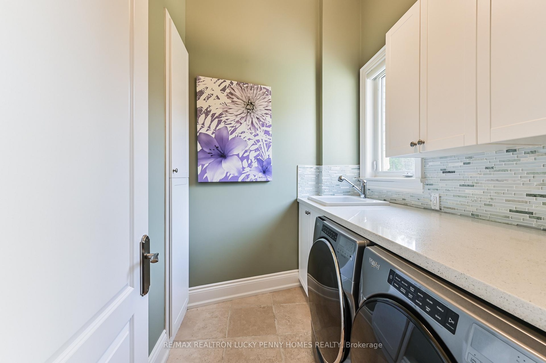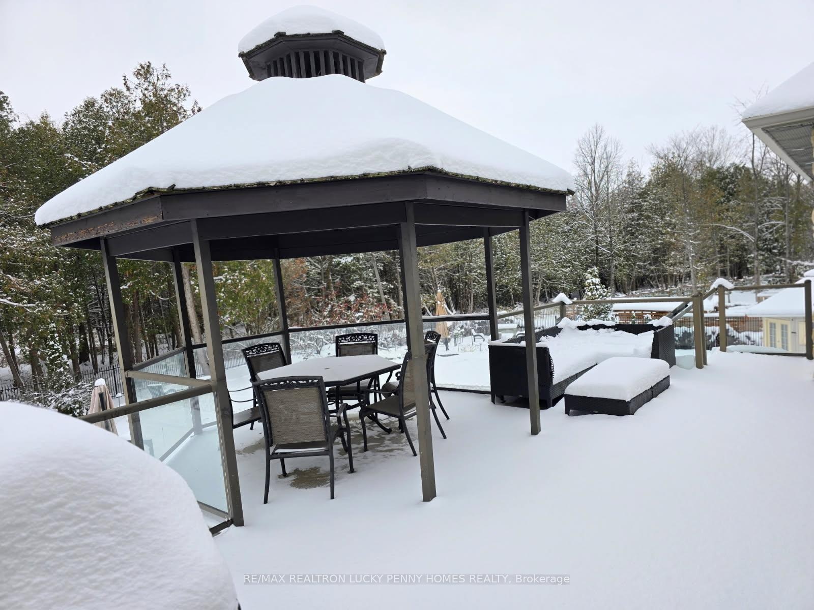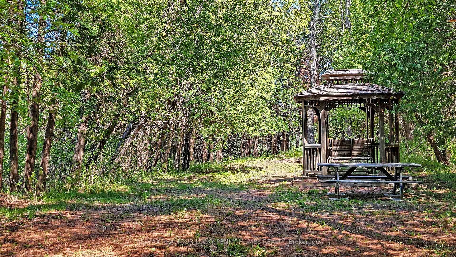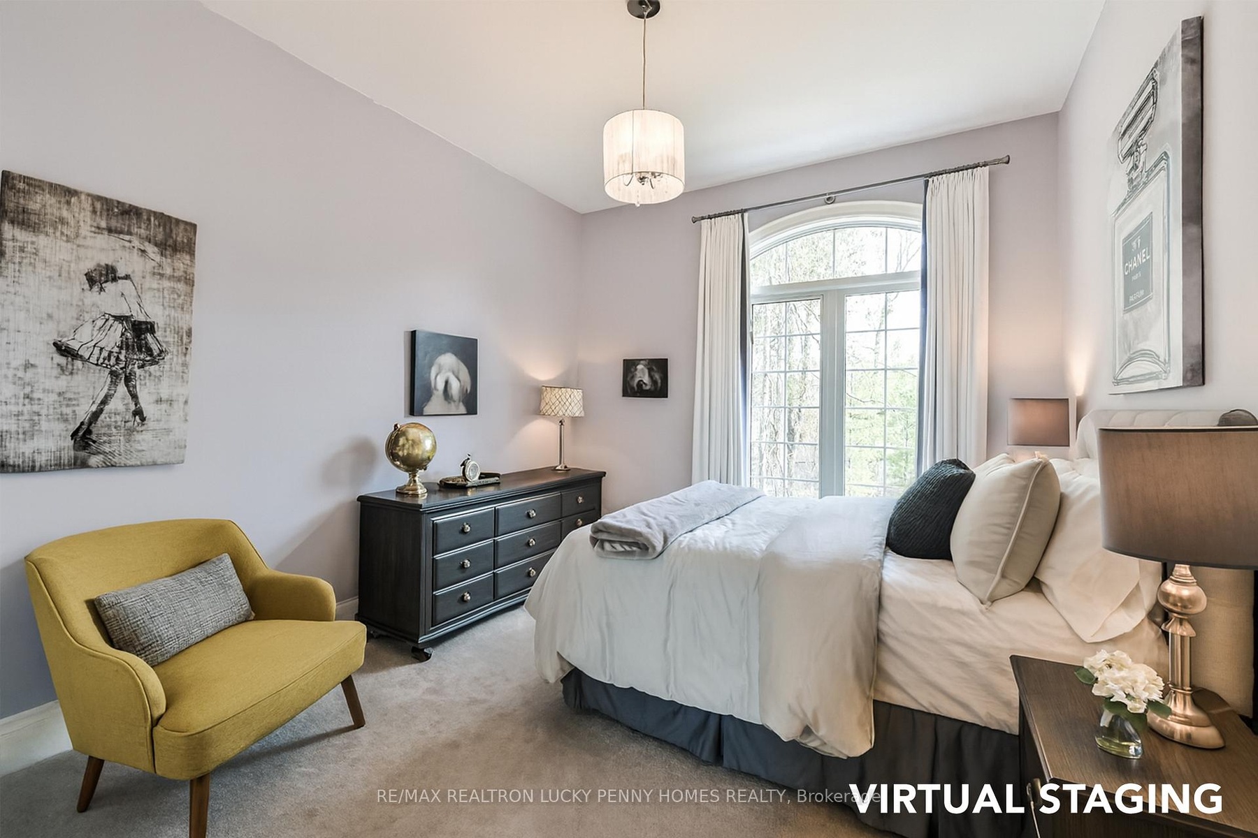 The Ultimate Entertainer's Dream Home! This one-of-a-kind luxury bungalow offers approximately 3,200 sq ft per level of refined living space on a 2-acre private treed lot in a quiet cul-de-sac, backing onto a serene 20-acre parcel with a km walking trail loop.Step inside to discover a bright, open-concept main floor with 10-foot ceilings, elegant crown moulding, and hardwood and tile floors throughout. The family room features a gas fireplace, built-in shelving, and walkout to the deck, seamlessly connecting to a gourmet kitchen with stainless steel appliances, centre island, and tile flooring. Adjacent breakfast area also walks out to the deck, overlooking the resort-style backyard. The formal dining room offers a gas fireplace and bay window, perfect for gatherings.The primary bedroom suite includes a gas fireplace, walk-in closet, and walkout to the deck, while two additional main-floor bedrooms share a semi-ensuite and feature hardwood floors and large windows. A private office with crown moulding and large window provides a perfect workspace.The professionally finished walkout basement boasts heated floors, 10-foot ceilings, and a spacious Great Room with wet bar, gas fireplace, and walkout to the patio. Additional features include two more bedrooms, an exercise room, and ample storage space-ideal for guests or multi-generational living. Step outside to your backyard oasis featuring an in-ground pool, cabana, and multiple seating areas surrounded by mature trees, creating the ultimate resort experience. The backyard also includes a treehouse and a dog free run fenced area, offering both adventure and freedom for family and pets alike.