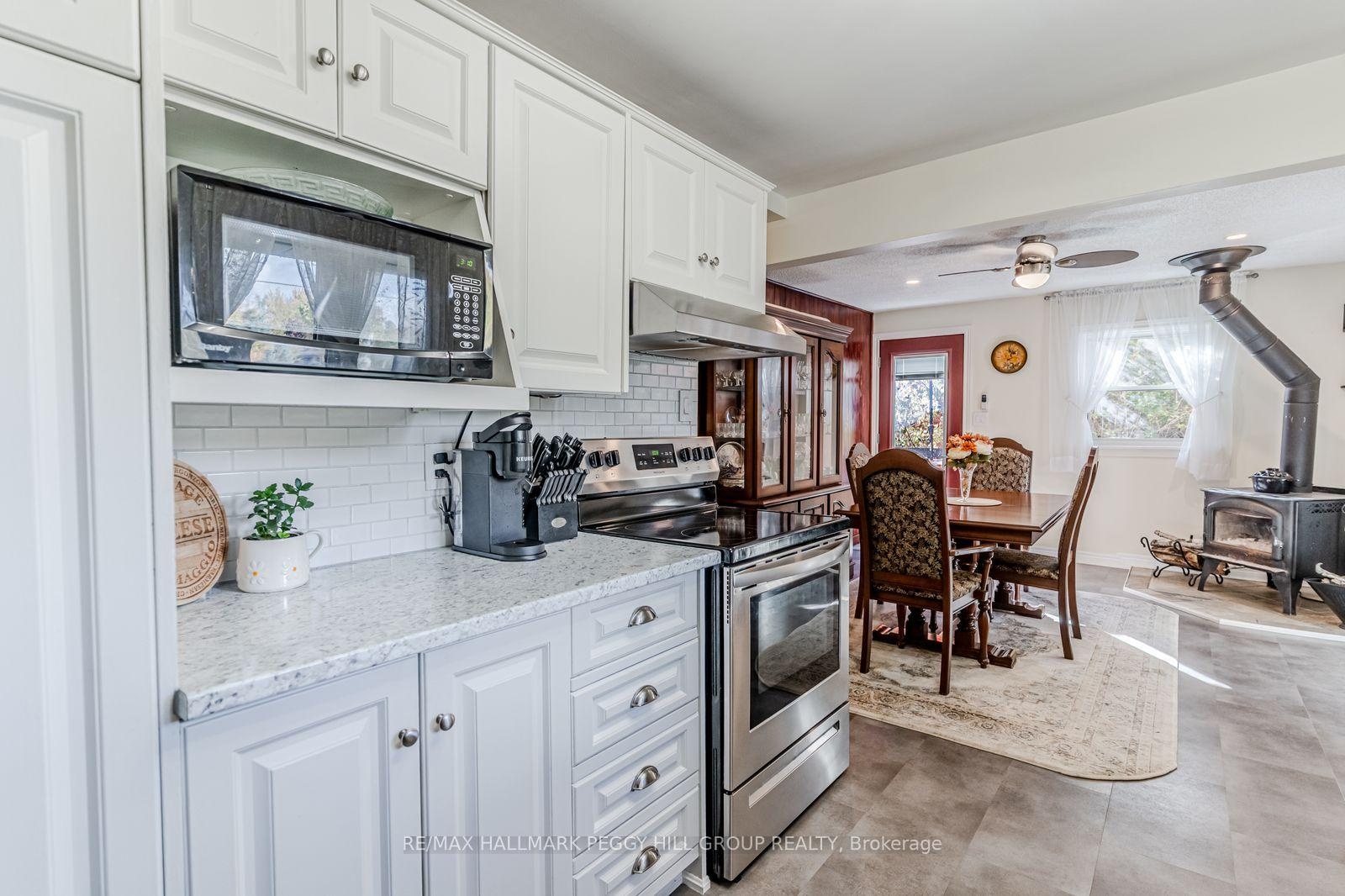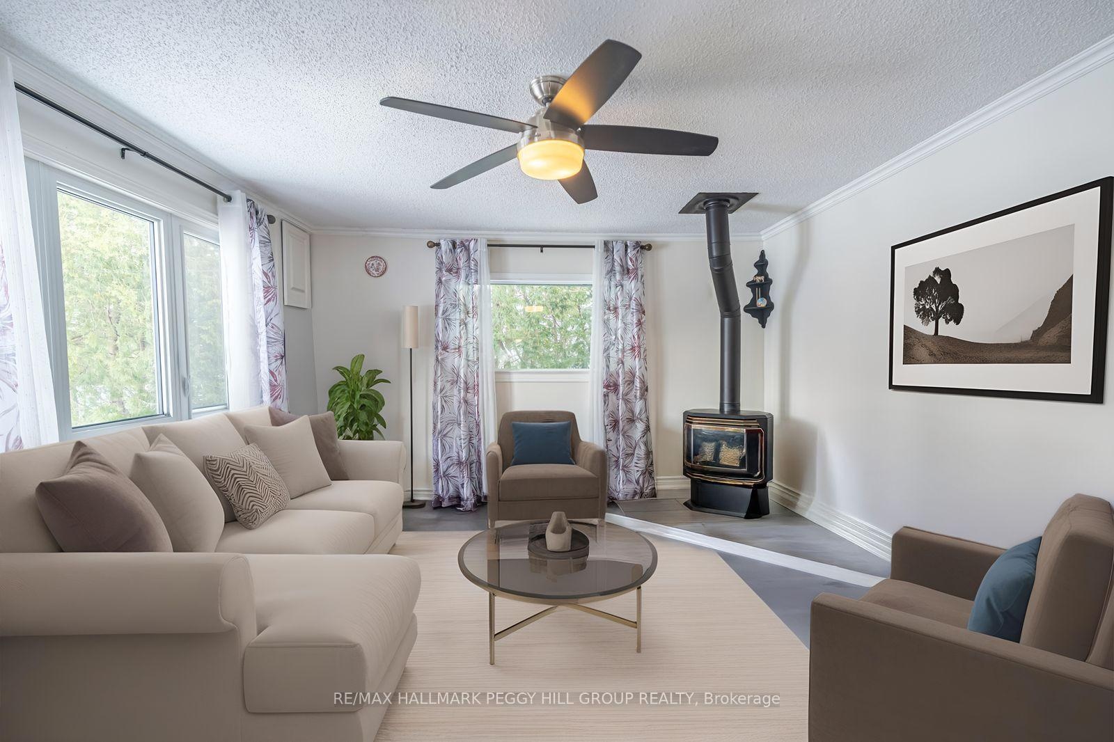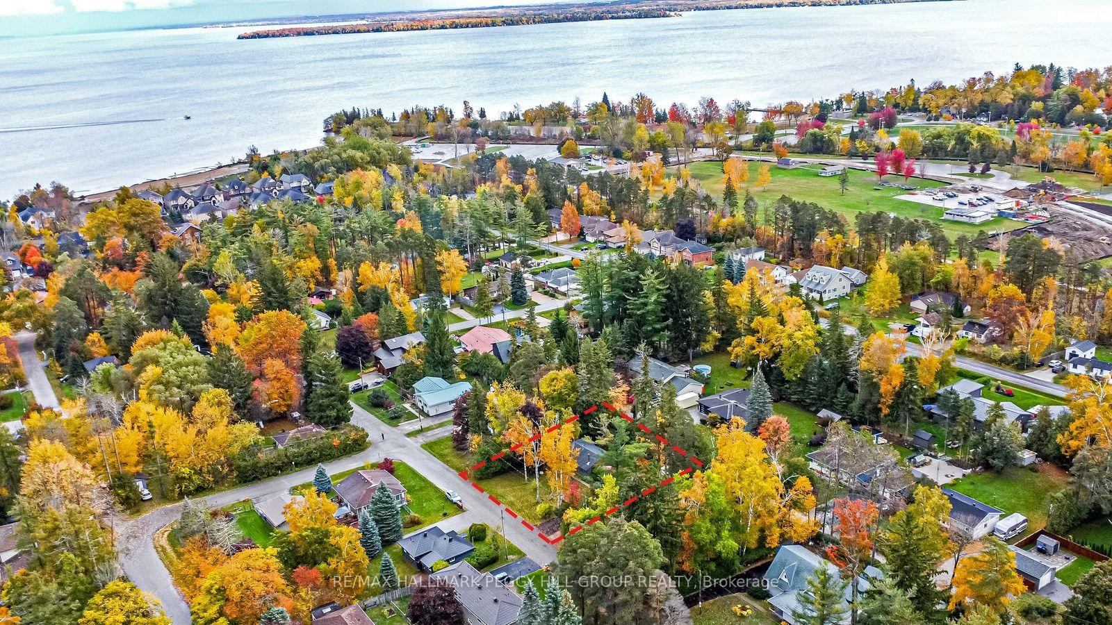 EXTENSIVELY UPDATED BUNGALOW WITH A CUSTOM DETACHED GARAGE, GENEROUSLY SIZED LANDSCAPED LOT & STEPS TO THE BEACH! This Alcona bungalow captures everything buyers hope to find: a beautifully updated interior, a generous 100 x 100 ft property, and an unbeatable location just steps from the beach. Clean, bright, and meticulously maintained, it showcases pride of ownership from the moment you arrive. The exterior stands out with warm cedar shake accents, a bold red front door, dark trim, and a welcoming front porch that gives the home undeniable character. Beyond its charming façade, the property showcases a fully fenced and landscaped backyard with an updated patio, a newer garden shed, a privacy shield, and three gates, complemented by updated front and side walkways. A freshly paved six-car driveway leads to a detached custom 17 x 20 ft garage or workshop with handcrafted wood swing doors and a man door, ideal for hobbyists or extra storage. The carpet-free interior features durable neutral vinyl tile flooring and a modern kitchen with white cabinetry, upgraded countertops, stainless steel appliances, a subway tile backsplash, and stylish lighting. A cozy gas fireplace adds warmth to the living room with peaceful front-yard views, while the formal dining room includes a wood stove and a separate side entrance. Two inviting bedrooms include a primary with a double closet and a second with a walk-in, along with a main-floor laundry area combined with a powder room. The main 4-piece bathroom has been refreshed with a newer light fixture, mirror, double shower rod, and fresh paint. Notable updates include newer windows and doors, spray foam insulation under the house, 200-amp service, and newer laundry appliances. Close to parks, trails, schools, shopping, dining, the YMCA, Sunset Speedway, and the Town Centre, with quick access to the GO Train and Highway 400, this #HomeToStay offers an exceptional opportunity to enjoy the best of Alcona living!