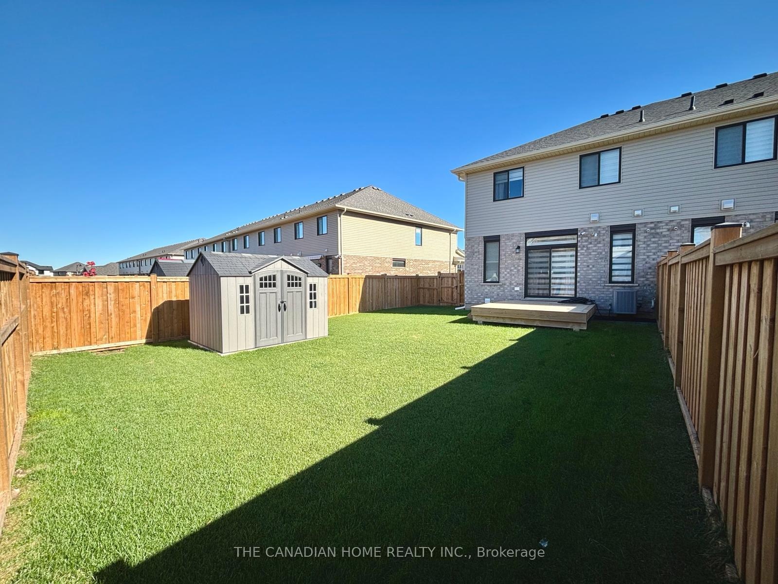For Lease - Modern End-Unit Townhome in Orchard Meadow Park, St. Thomas. Discover contemporary living in this newly built (2024) end-unit two-storey townhouse by Hayhoe Homes, located in the sought-after Orchard Meadow Park community of St. Thomas. This stunning home features 3 spacious bedrooms and 2.5 bathrooms, offering a perfect blend of modern design and functional living. The main floor showcases 9-foot ceilings and an open-concept layout that seamlessly connects the living, dining, and kitchen areas-ideal for both everyday living and entertaining. Upstairs, you'll find an impressive primary suite complete with a private ensuite bathroom and generous closet space. The additional bedrooms are well-sized, providing comfort and flexibility for family or guests. Enjoy the outdoors with a large backyard, perfect for relaxing or entertaining, plus an additional storage shed for extra convenience. Built with attention to detail and quality craftsmanship, this home offers modern finishes, energy-efficient construction, and a prime location close to schools, parks, shopping, and all amenities. Key Features: Built in 2024 by Hayhoe Homes. End-unit with modern exterior design. 3 bedrooms 2.5 bathrooms. 9 ft main floor ceilings | 8 ft second floor ceilings. Spacious primary bedroom with ensuite. Large backyard with storage shed 8*10. Located in the desirable Orchard Meadow Park community