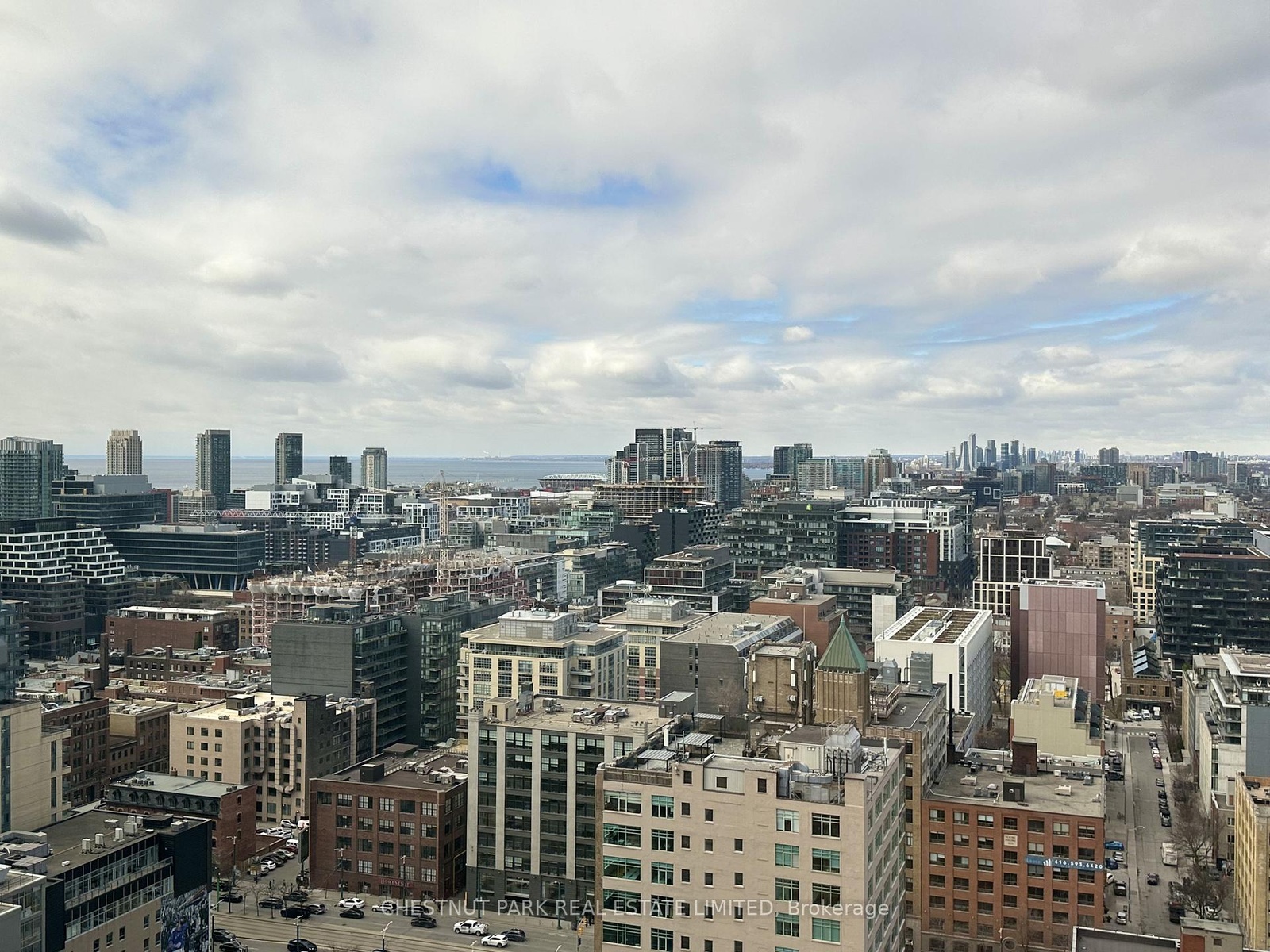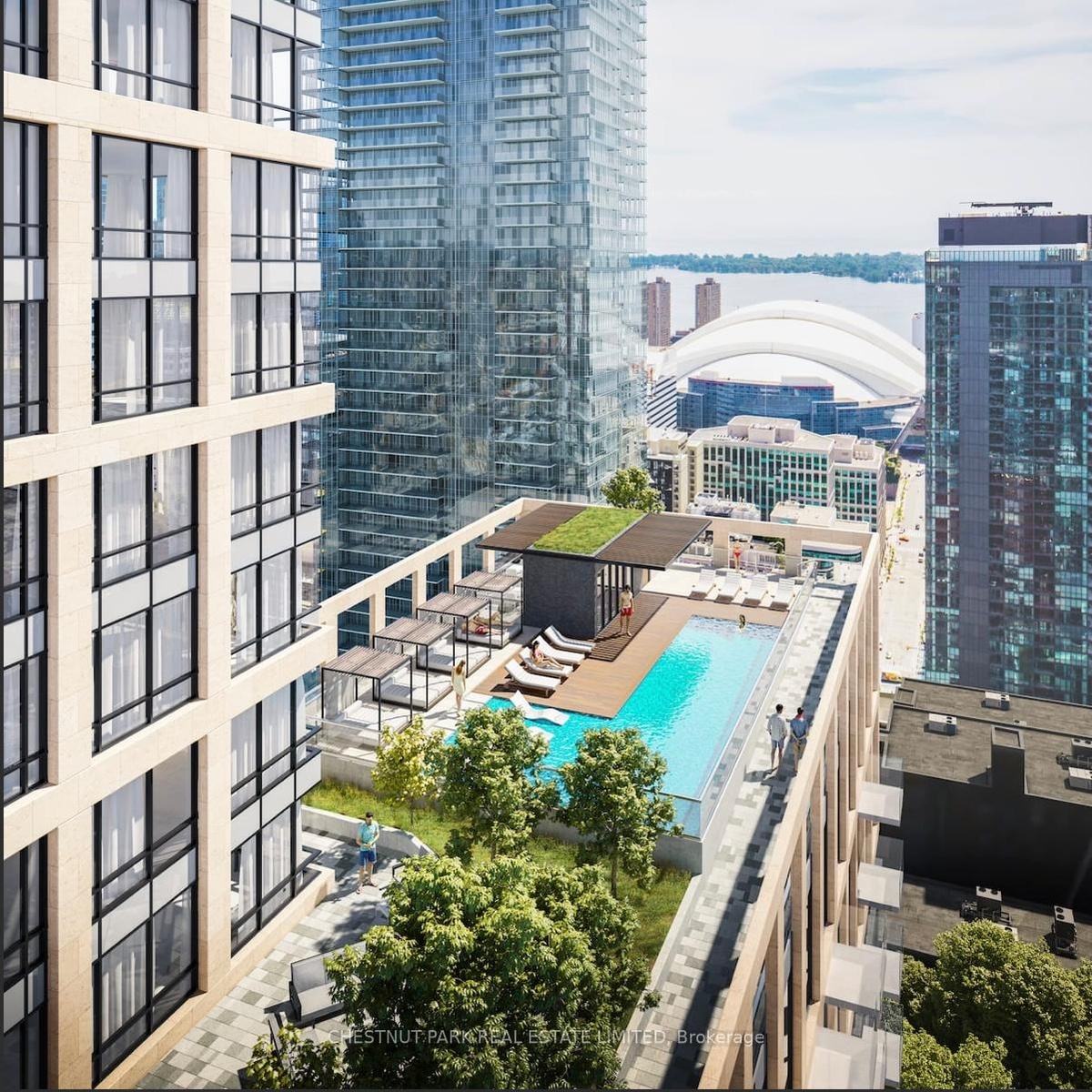 Queen Floor Plan - 2 Bedroom plus den, and 2 full baths condo at Peter and Adelaide. One of the best layouts in the building. Very spacious, lots of amenities and beautiful rooftop outdoor pool with lounge area. Parking and locker are included. Located in Toronto's Harbourfront and entertainment districts, minutes from Financial and entertainment areas. Walk to attractions retail, TTC and subway, restaurants and more! Suite upgrades as follows; bathroom fixtures, flooring, cabinets and kitchen counters. Bestco Fresh Foods on ground floor of building.