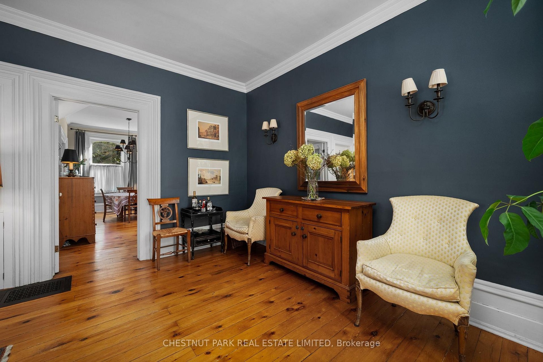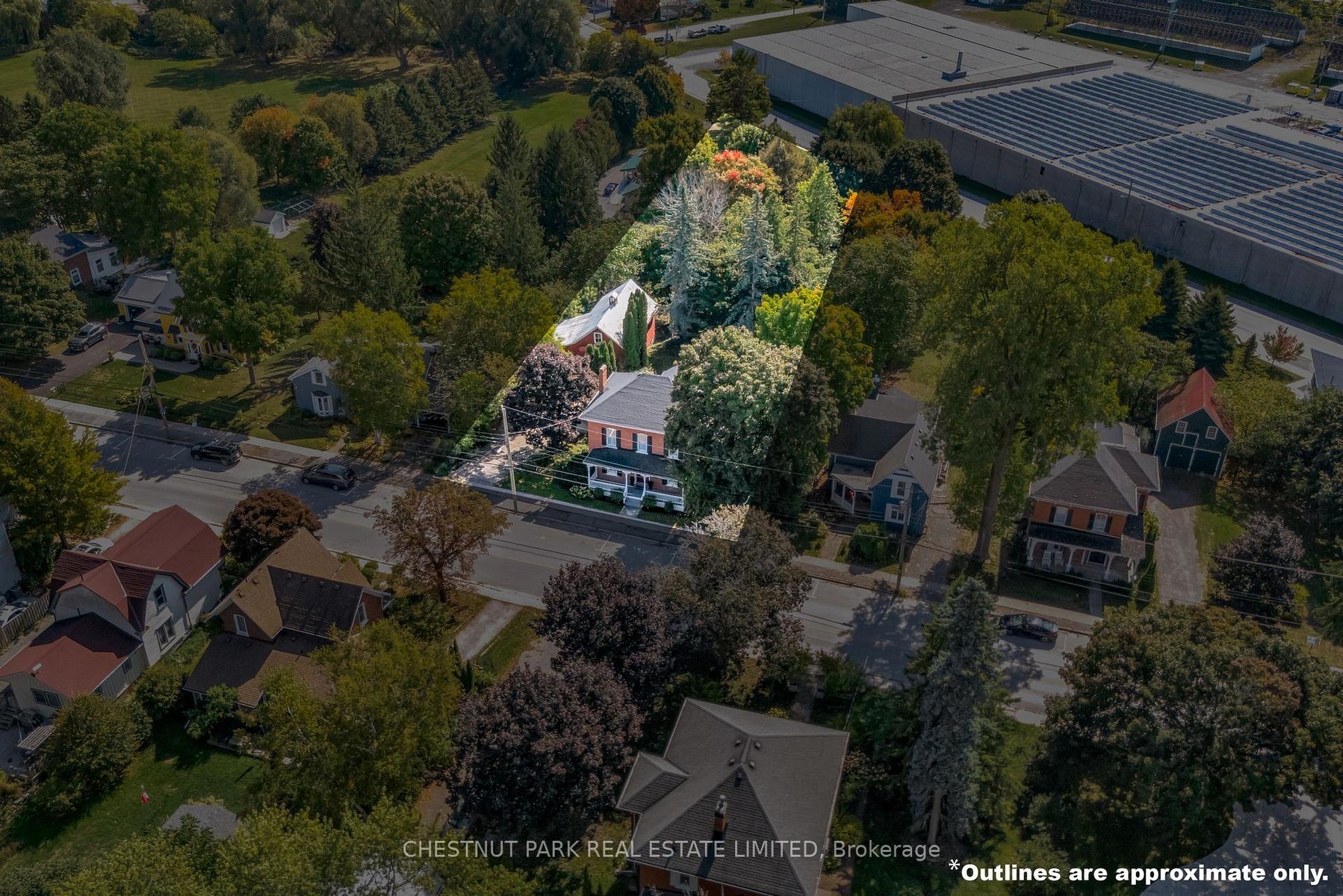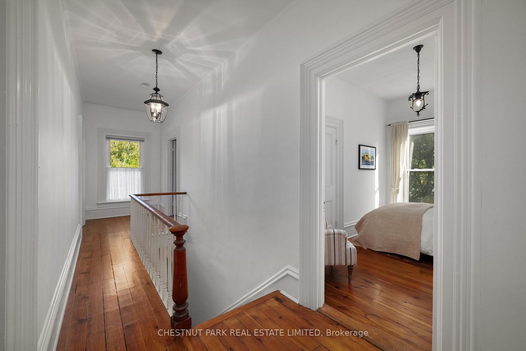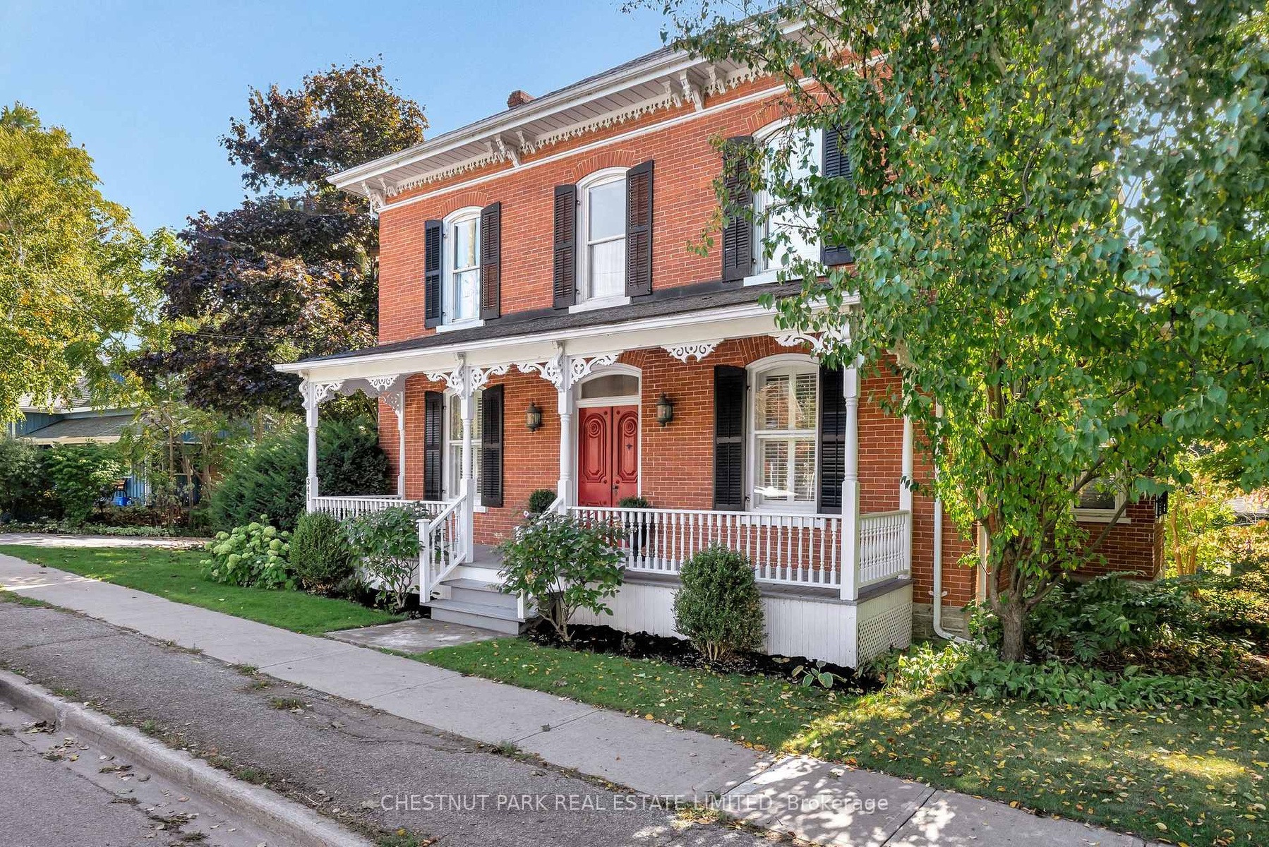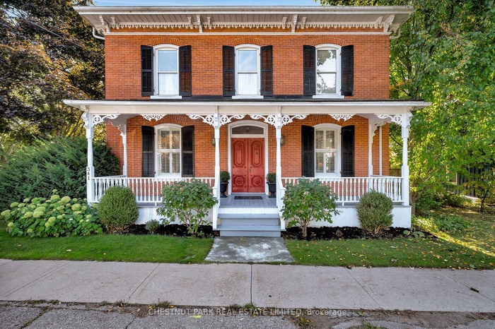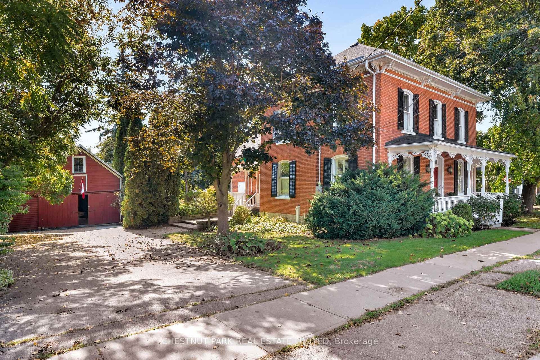 An architectural jewel of Bloomfield Main Street, 341 is a beautifully preserved century home with stylish modern amenities. This triple brick circa 1867 residence is a two-Storey hip-roof, showcasing soaring 10 ft ceilings, a classic centre-hall plan, elegant mouldings and timeless character throughout. Set on 1.1 acres in the heart of the village, the property extends down to Stanley Street, boasting upper and lower gardens divided by towering white pines, landscaped with a variety of mature trees that provide privacy and a haven for songbirds all year round. There is a comfy writers cabin tucked behind the home in the lower garden, along with one of the largest original coach houses in town, 2 full storeys, plus a lower level, offering endless potential. The long double-car driveway can accommodate several cars when hosting large groups. The charming Victorian era front doors open into a classic entrance hall with a convivial layout including two formal front rooms and spacious dining room, perfect for intimate or larger gatherings. The heart of the home is the updated kitchen, blending style and function, flowing into a cozy south facing sun room where you can enjoy morning coffee overlooking the magnificent pines. French doors open onto a balcony and a bird watchers paradise - forested gardens with lots of space for summer entertaining. This stylish home has four light-filled bedrooms with high ceilings and large windows facing out over the tree tops, three bathrooms including a three piece on the main-floor and upstairs, a guest bedroom with 2-piece en-suite, and a shared 4-piece along with a convenient bedroom-level laundry room. The back staircase leads to a versatile flex space, ideal as a studio, home office, or fitness area. The house is perfectly located, a short walk to the trendy boutiques, cafes and restaurants that make Bloomfield one of Prince Edward Countys most popular, vibrant villages.
