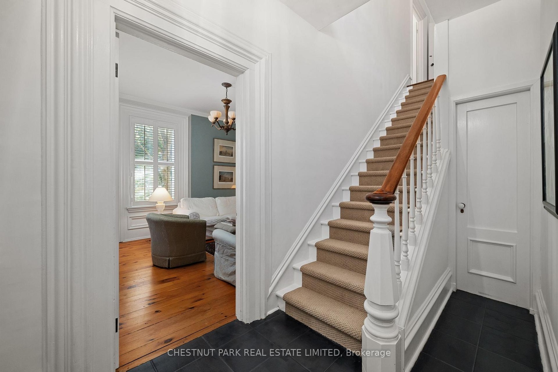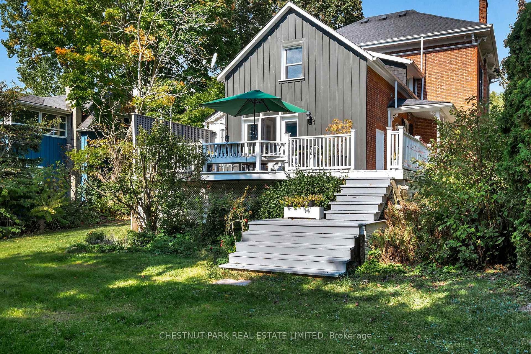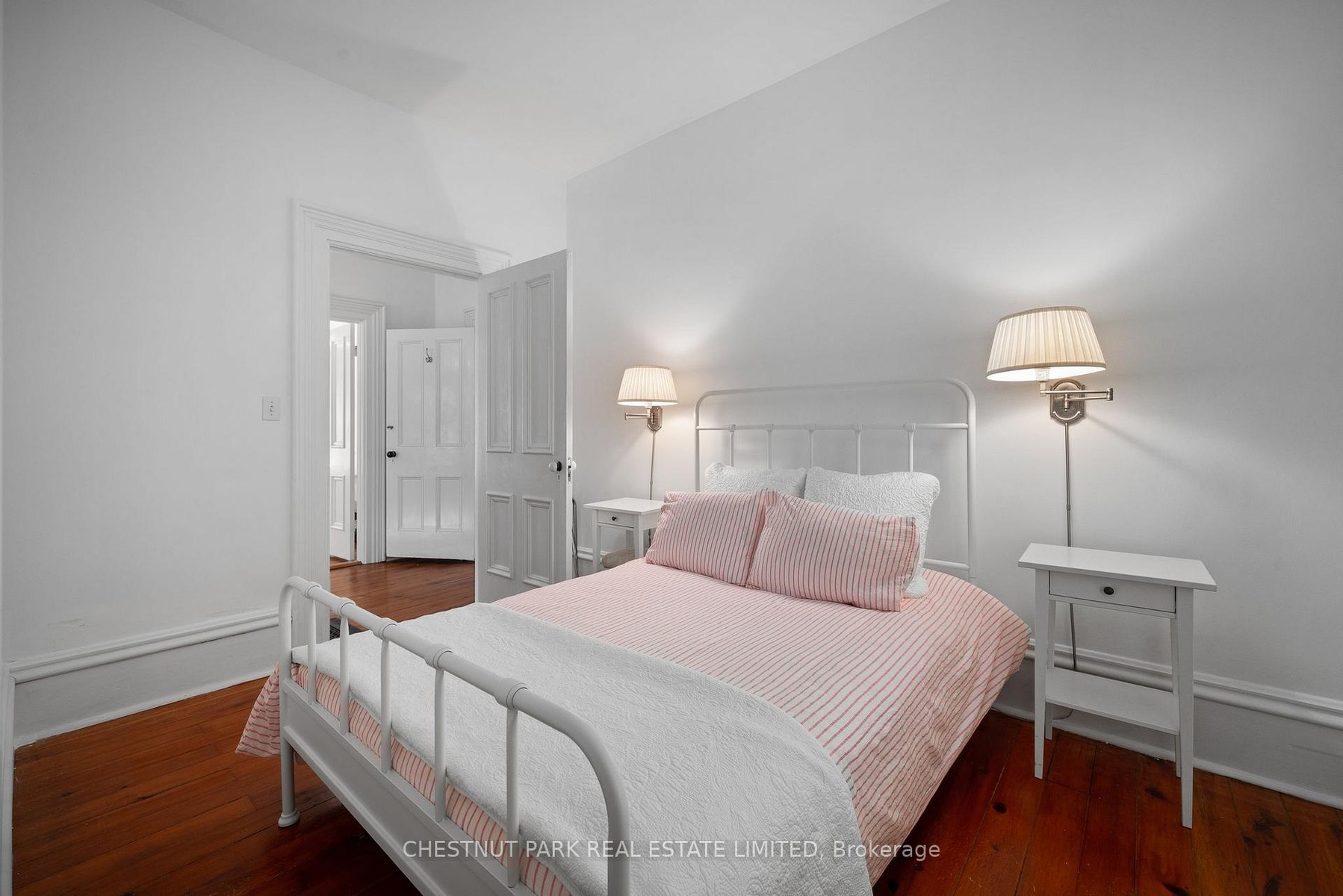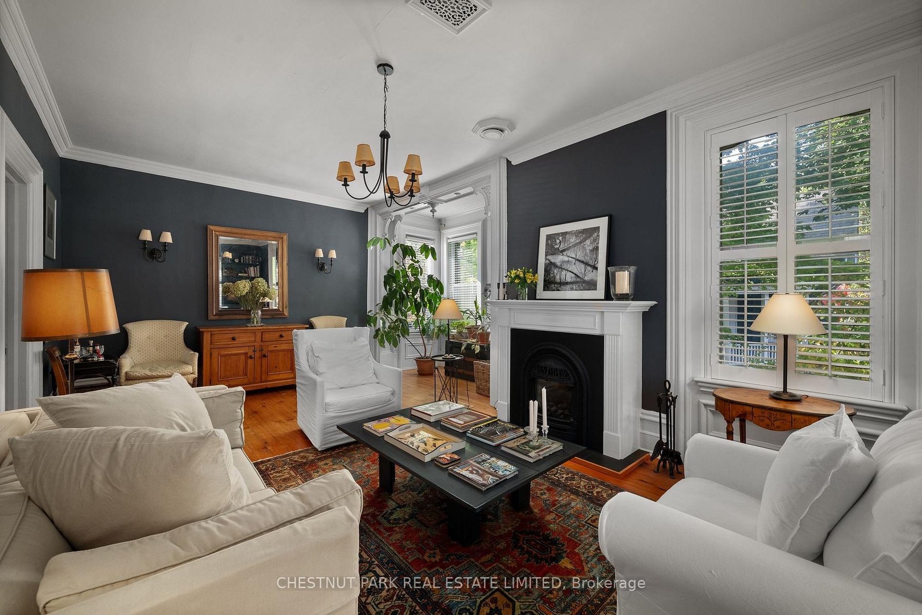 An architectural jewel of Bloomfield Main Street, 341 is a beautifully preserved century home with stylish modern amenities. This triple brick circa 1867 residence is a two-Storey hip-roof, showcasing soaring 10 ft ceilings, a classic centre-hall plan, elegant mouldings and timeless character throughout. Set on 1.1 acres in the heart of the village, the property extends down to Stanley Street, boasting upper and lower gardens divided by towering white pines, landscaped with a variety of mature trees that provide privacy and a haven for songbirds all year round. There is a comfy writers cabin tucked behind the home in the lower garden, along with one of the largest original coach houses in town, 2 full storeys, plus a lower level, offering endless potential. The long double-car driveway can accommodate several cars when hosting large groups. The charming Victorian era front doors open into a classic entrance hall with a convivial layout including two formal front rooms and spacious dining room, perfect for intimate or larger gatherings. The heart of the home is the updated kitchen, blending style and function, flowing into a cozy south facing sun room where you can enjoy morning coffee overlooking the magnificent pines. French doors open onto a balcony and a bird watchers paradise - forested gardens with lots of space for summer entertaining. This stylish home has four light-filled bedrooms with high ceilings and large windows facing out over the tree tops, three bathrooms including a three piece on the main-floor and upstairs, a guest bedroom with 2-piece en-suite, and a shared 4-piece along with a convenient bedroom-level laundry room. The back staircase leads to a versatile flex space, ideal as a studio, home office, or fitness area. The house is perfectly located, a short walk to the trendy boutiques, cafes and restaurants that make Bloomfield one of Prince Edward Countys most popular, vibrant villages.
