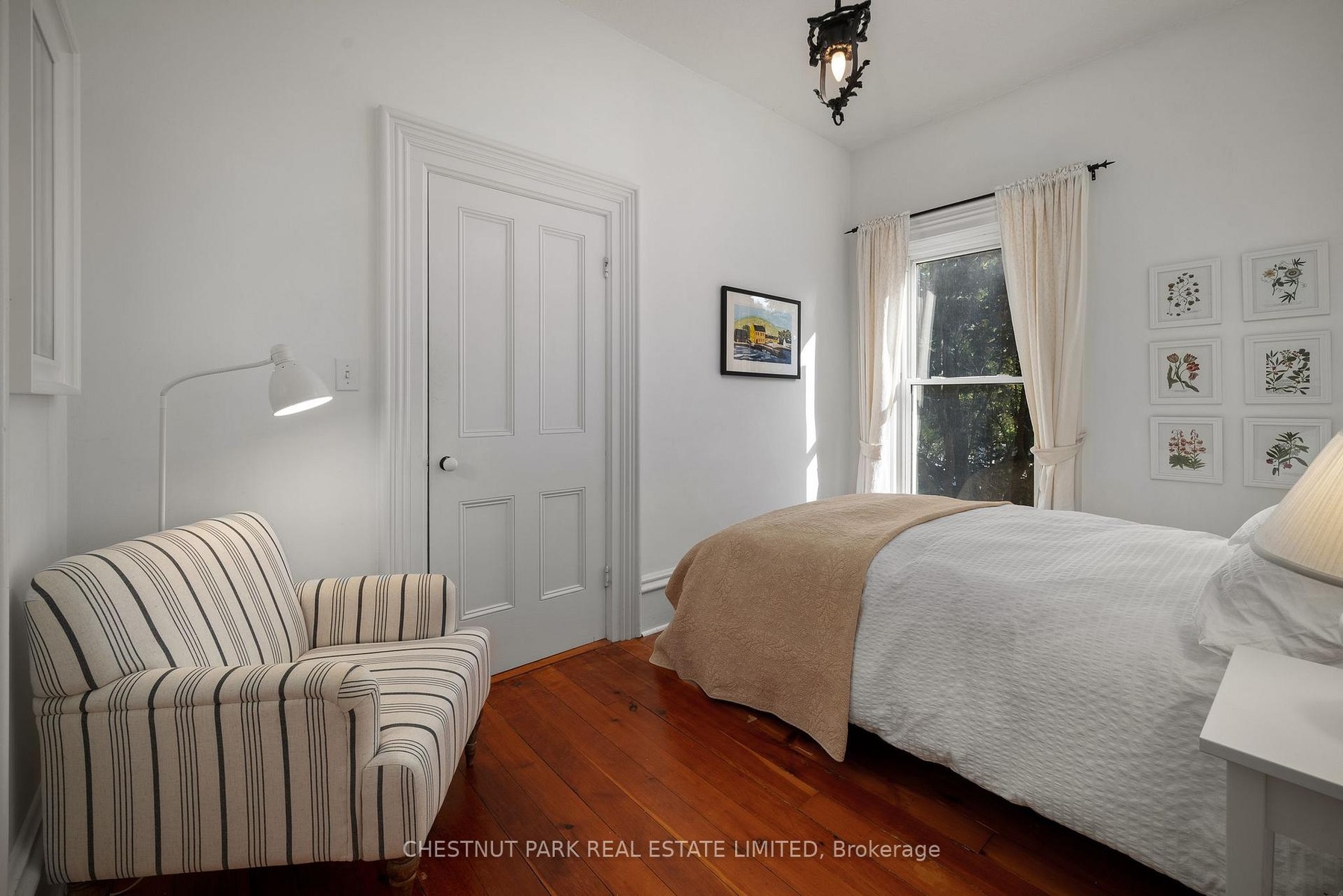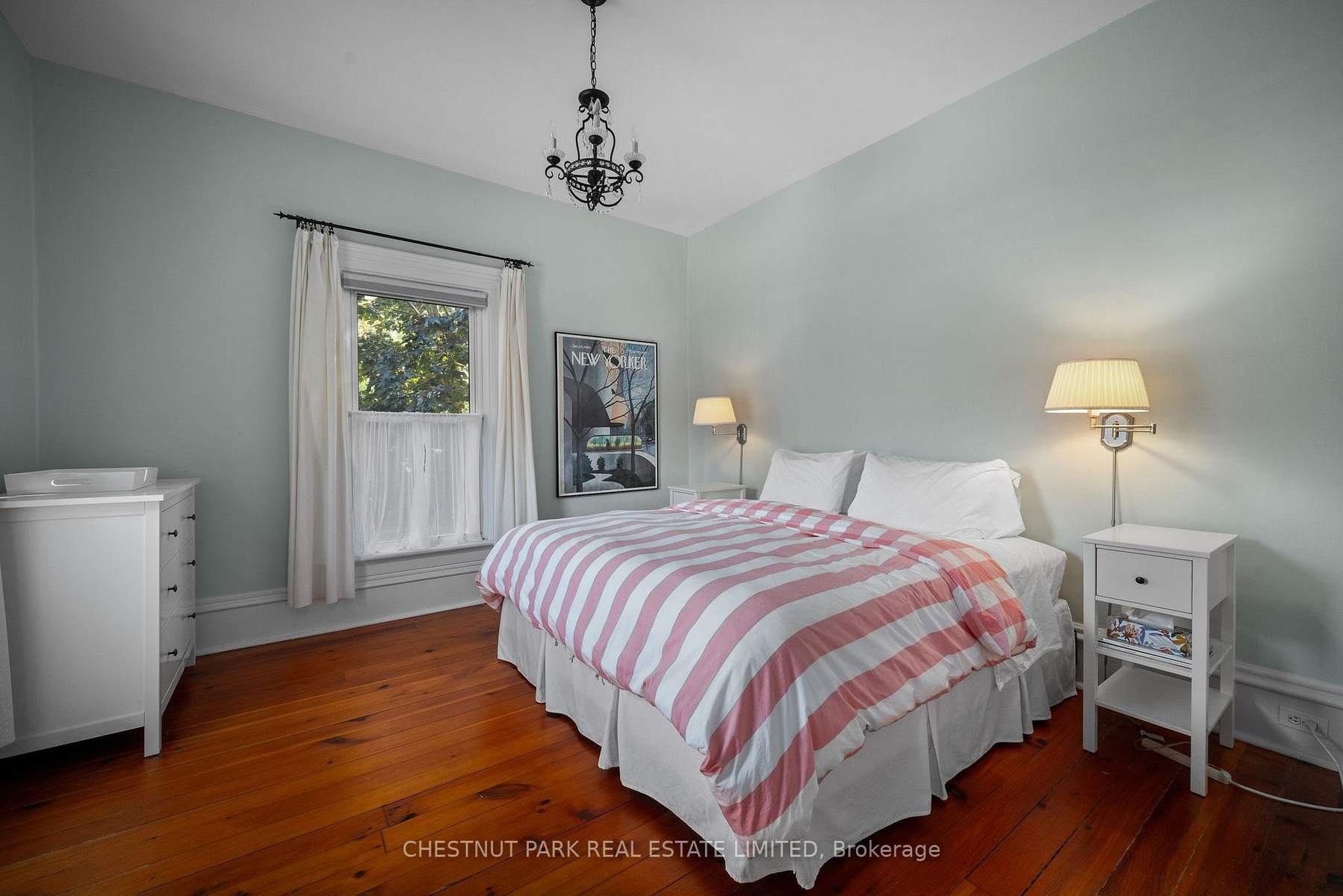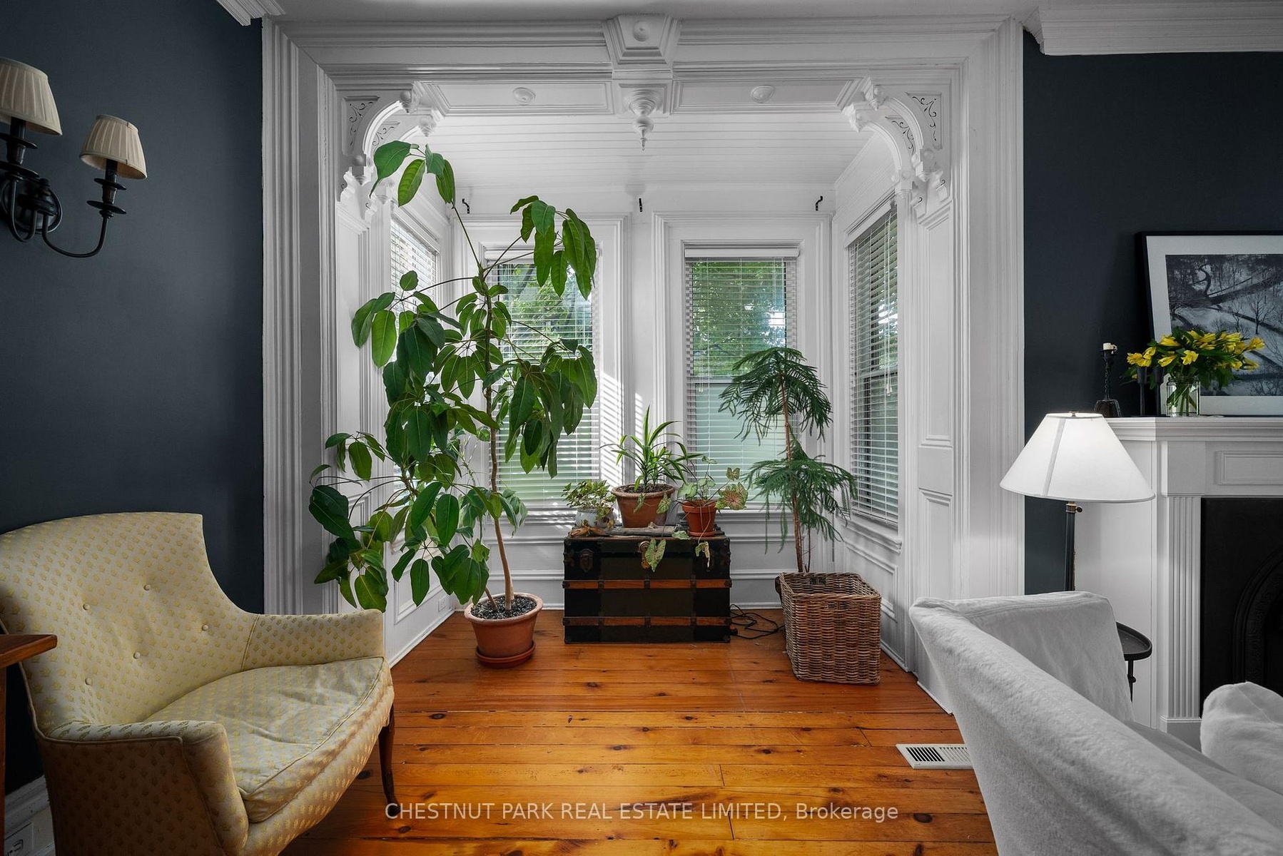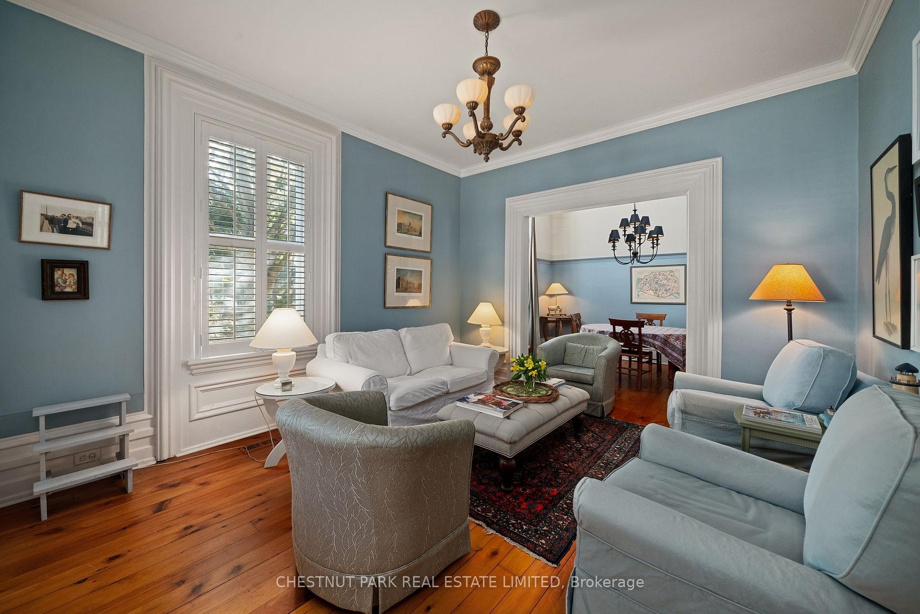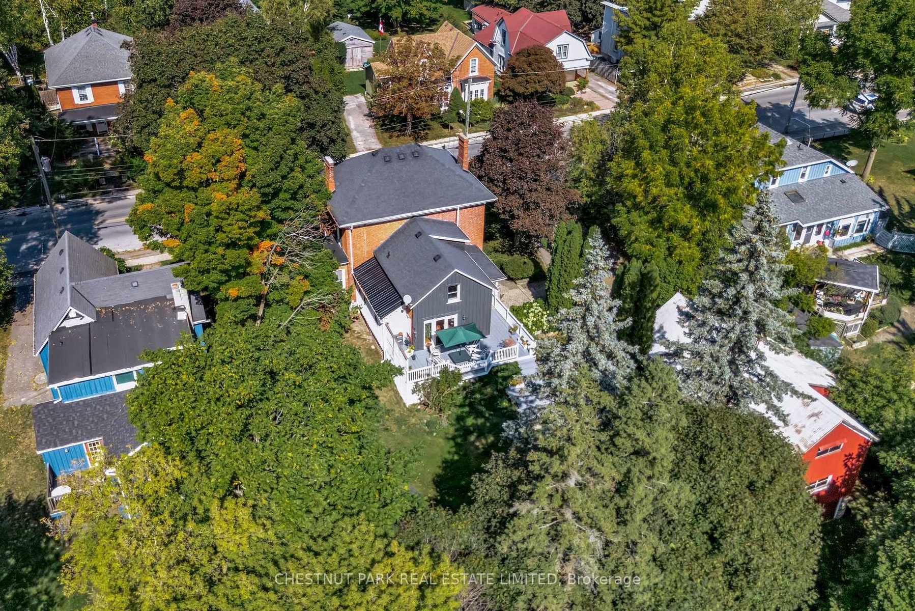 An architectural jewel of Bloomfield Main Street, 341 is a beautifully preserved century home with stylish modern amenities. This triple brick circa 1867 residence is a two-Storey hip-roof, showcasing soaring 10 ft ceilings, a classic centre-hall plan, elegant mouldings and timeless character throughout. Set on 1.1 acres in the heart of the village, the property extends down to Stanley Street, boasting upper and lower gardens divided by towering white pines, landscaped with a variety of mature trees that provide privacy and a haven for songbirds all year round. There is a comfy writers cabin tucked behind the home in the lower garden, along with one of the largest original coach houses in town, 2 full storeys, plus a lower level, offering endless potential. The long double-car driveway can accommodate several cars when hosting large groups. The charming Victorian era front doors open into a classic entrance hall with a convivial layout including two formal front rooms and spacious dining room, perfect for intimate or larger gatherings. The heart of the home is the updated kitchen, blending style and function, flowing into a cozy south facing sun room where you can enjoy morning coffee overlooking the magnificent pines. French doors open onto a balcony and a bird watchers paradise - forested gardens with lots of space for summer entertaining. This stylish home has four light-filled bedrooms with high ceilings and large windows facing out over the tree tops, three bathrooms including a three piece on the main-floor and upstairs, a guest bedroom with 2-piece en-suite, and a shared 4-piece along with a convenient bedroom-level laundry room. The back staircase leads to a versatile flex space, ideal as a studio, home office, or fitness area. The house is perfectly located, a short walk to the trendy boutiques, cafes and restaurants that make Bloomfield one of Prince Edward Countys most popular, vibrant villages.