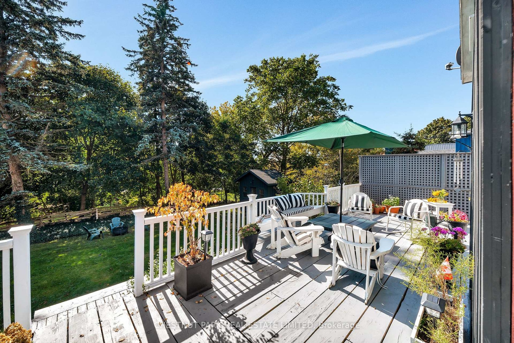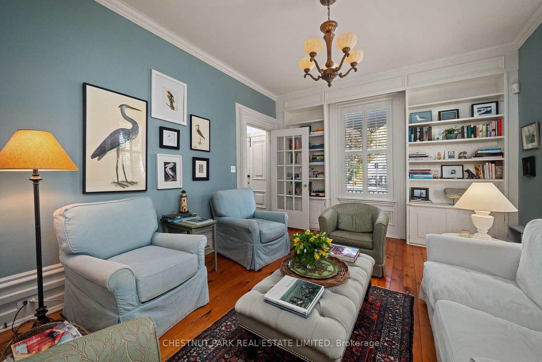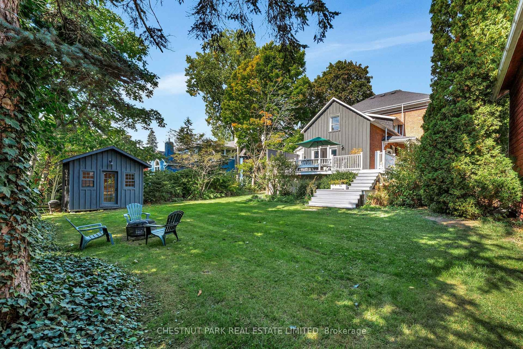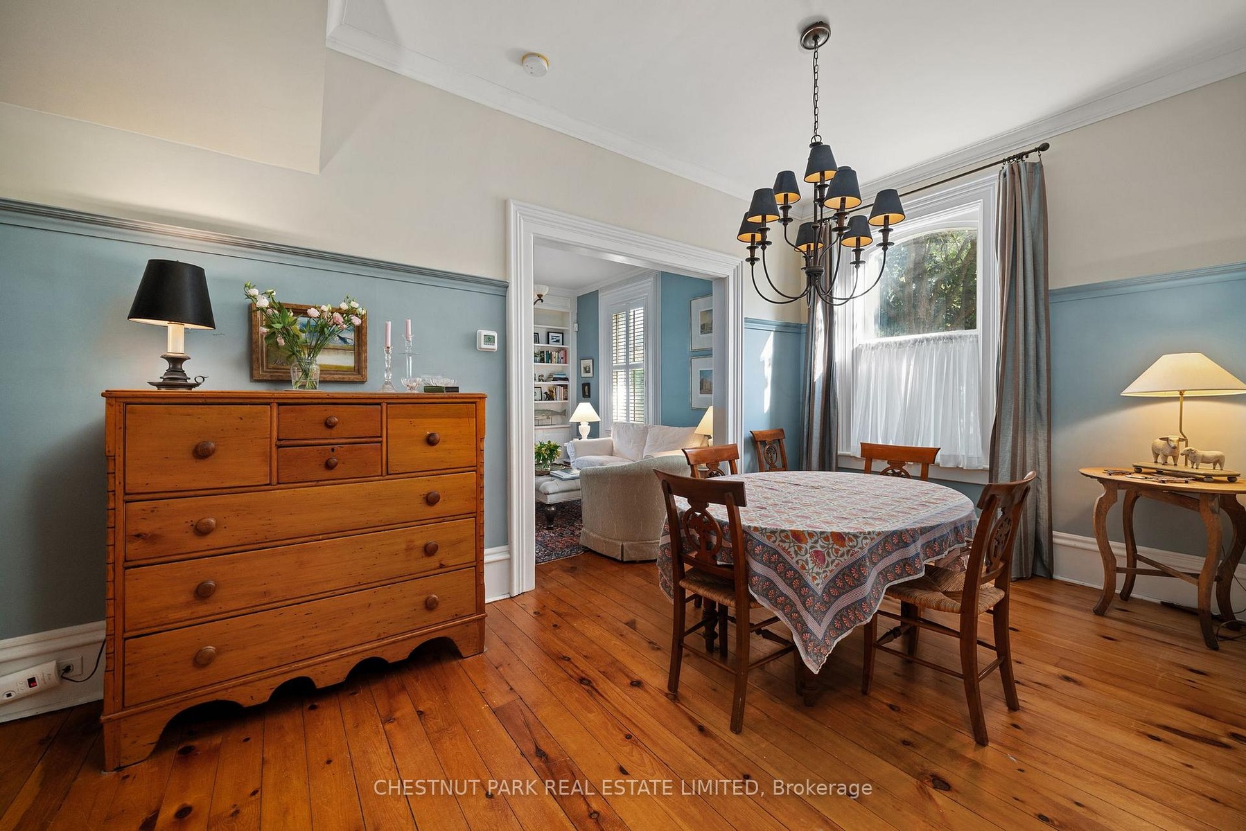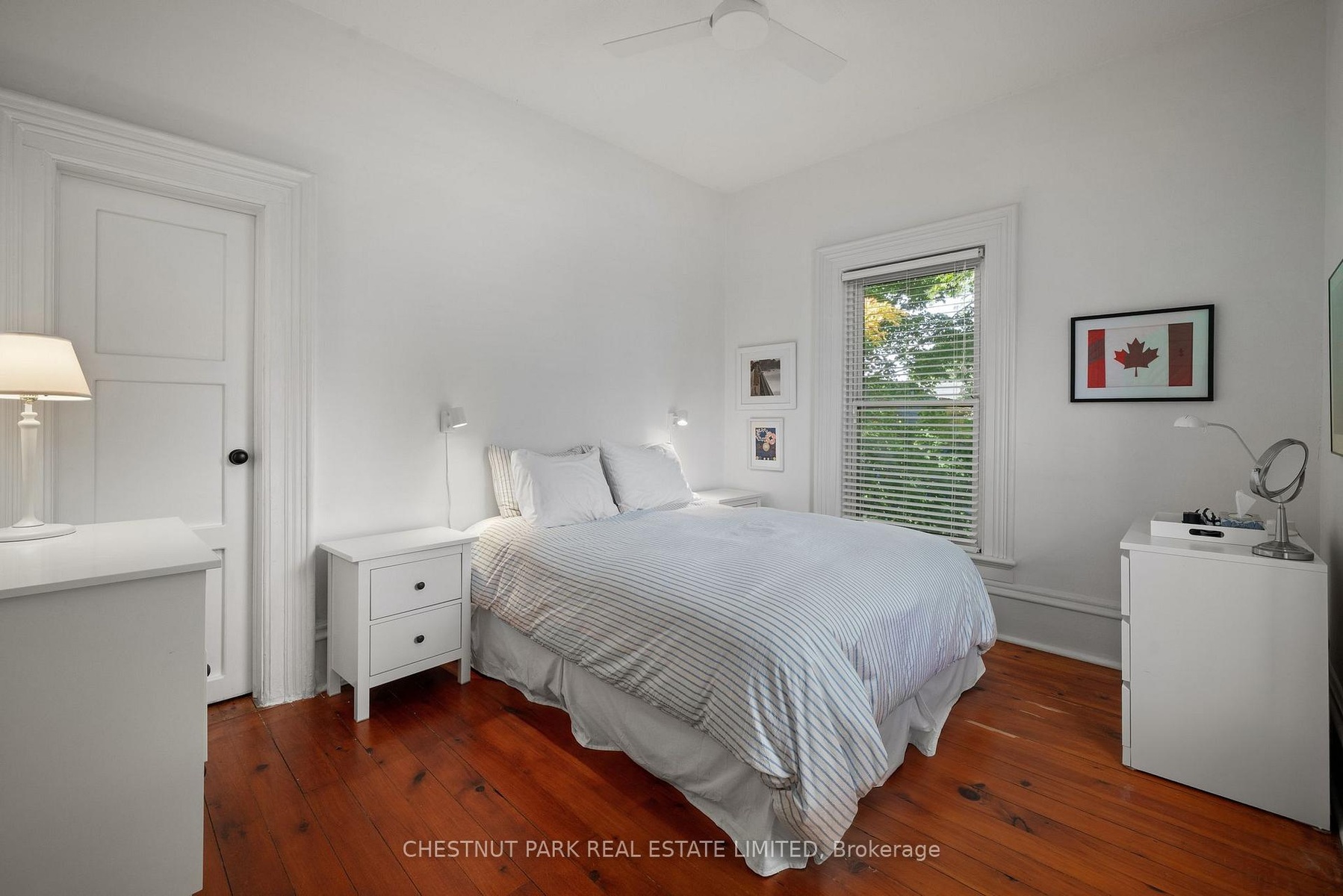 An architectural jewel of Bloomfield Main Street, 341 is a beautifully preserved century home with stylish modern amenities. This triple brick circa 1867 residence is a two-Storey hip-roof, showcasing soaring 10 ft ceilings, a classic centre-hall plan, elegant mouldings and timeless character throughout. Set on 1.1 acres in the heart of the village, the property extends down to Stanley Street, boasting upper and lower gardens divided by towering white pines, landscaped with a variety of mature trees that provide privacy and a haven for songbirds all year round. There is a comfy writers cabin tucked behind the home in the lower garden, along with one of the largest original coach houses in town, 2 full storeys, plus a lower level, offering endless potential. The long double-car driveway can accommodate several cars when hosting large groups. The charming Victorian era front doors open into a classic entrance hall with a convivial layout including two formal front rooms and spacious dining room, perfect for intimate or larger gatherings. The heart of the home is the updated kitchen, blending style and function, flowing into a cozy south facing sun room where you can enjoy morning coffee overlooking the magnificent pines. French doors open onto a balcony and a bird watchers paradise - forested gardens with lots of space for summer entertaining. This stylish home has four light-filled bedrooms with high ceilings and large windows facing out over the tree tops, three bathrooms including a three piece on the main-floor and upstairs, a guest bedroom with 2-piece en-suite, and a shared 4-piece along with a convenient bedroom-level laundry room. The back staircase leads to a versatile flex space, ideal as a studio, home office, or fitness area. The house is perfectly located, a short walk to the trendy boutiques, cafes and restaurants that make Bloomfield one of Prince Edward Countys most popular, vibrant villages.