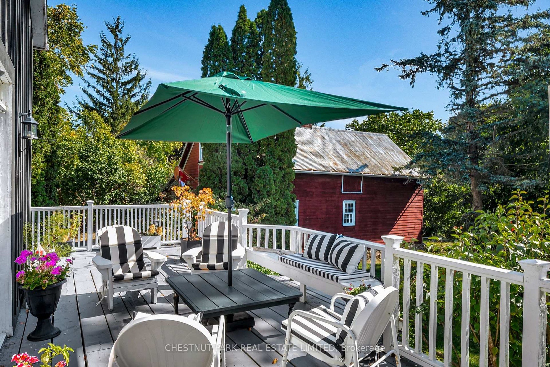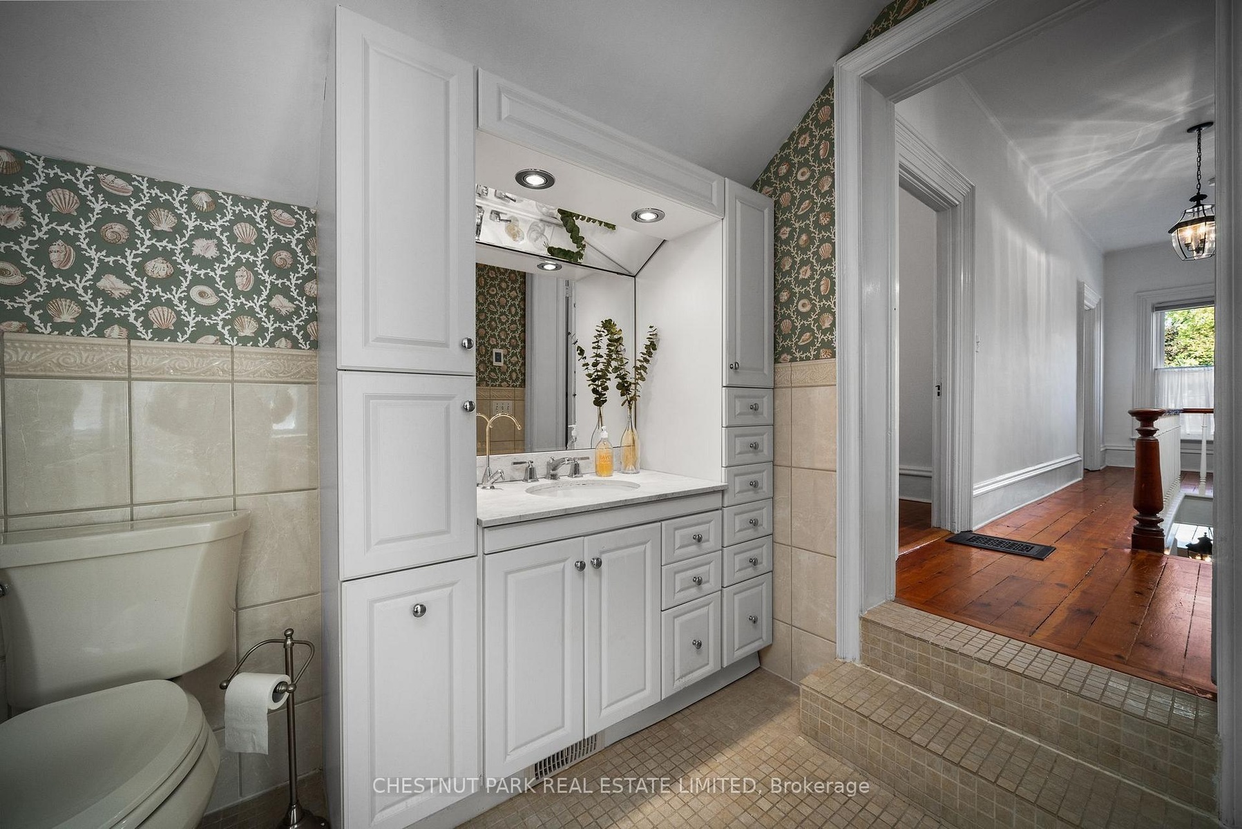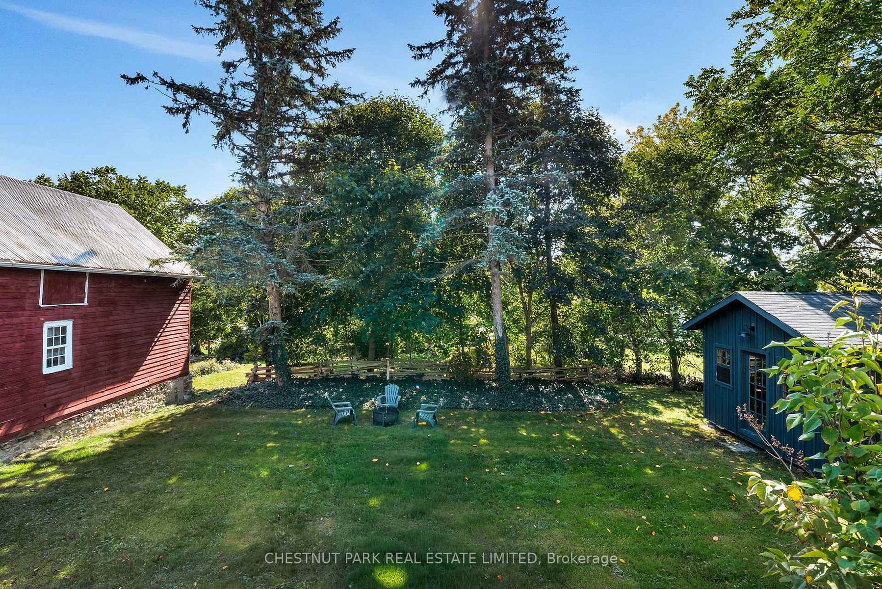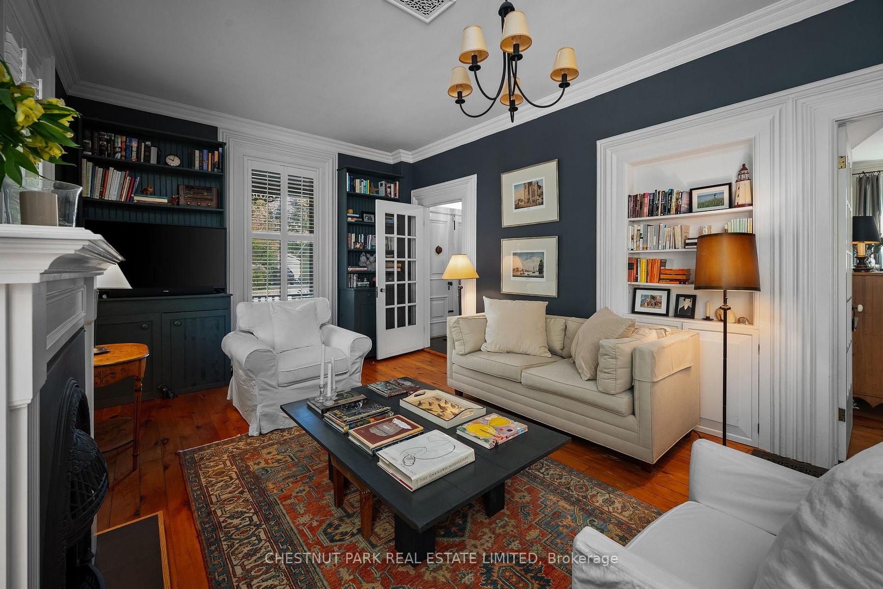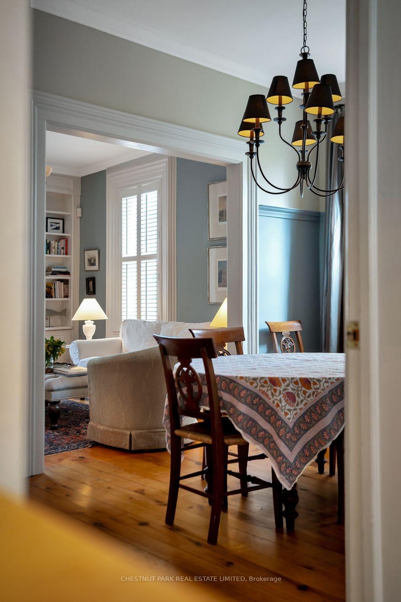 An architectural jewel of Bloomfield Main Street, 341 is a beautifully preserved century home with stylish modern amenities. This triple brick circa 1867 residence is a two-Storey hip-roof, showcasing soaring 10 ft ceilings, a classic centre-hall plan, elegant mouldings and timeless character throughout. Set on 1.1 acres in the heart of the village, the property extends down to Stanley Street, boasting upper and lower gardens divided by towering white pines, landscaped with a variety of mature trees that provide privacy and a haven for songbirds all year round. There is a comfy writers cabin tucked behind the home in the lower garden, along with one of the largest original coach houses in town, 2 full storeys, plus a lower level, offering endless potential. The long double-car driveway can accommodate several cars when hosting large groups. The charming Victorian era front doors open into a classic entrance hall with a convivial layout including two formal front rooms and spacious dining room, perfect for intimate or larger gatherings. The heart of the home is the updated kitchen, blending style and function, flowing into a cozy south facing sun room where you can enjoy morning coffee overlooking the magnificent pines. French doors open onto a balcony and a bird watchers paradise - forested gardens with lots of space for summer entertaining. This stylish home has four light-filled bedrooms with high ceilings and large windows facing out over the tree tops, three bathrooms including a three piece on the main-floor and upstairs, a guest bedroom with 2-piece en-suite, and a shared 4-piece along with a convenient bedroom-level laundry room. The back staircase leads to a versatile flex space, ideal as a studio, home office, or fitness area. The house is perfectly located, a short walk to the trendy boutiques, cafes and restaurants that make Bloomfield one of Prince Edward Countys most popular, vibrant villages.