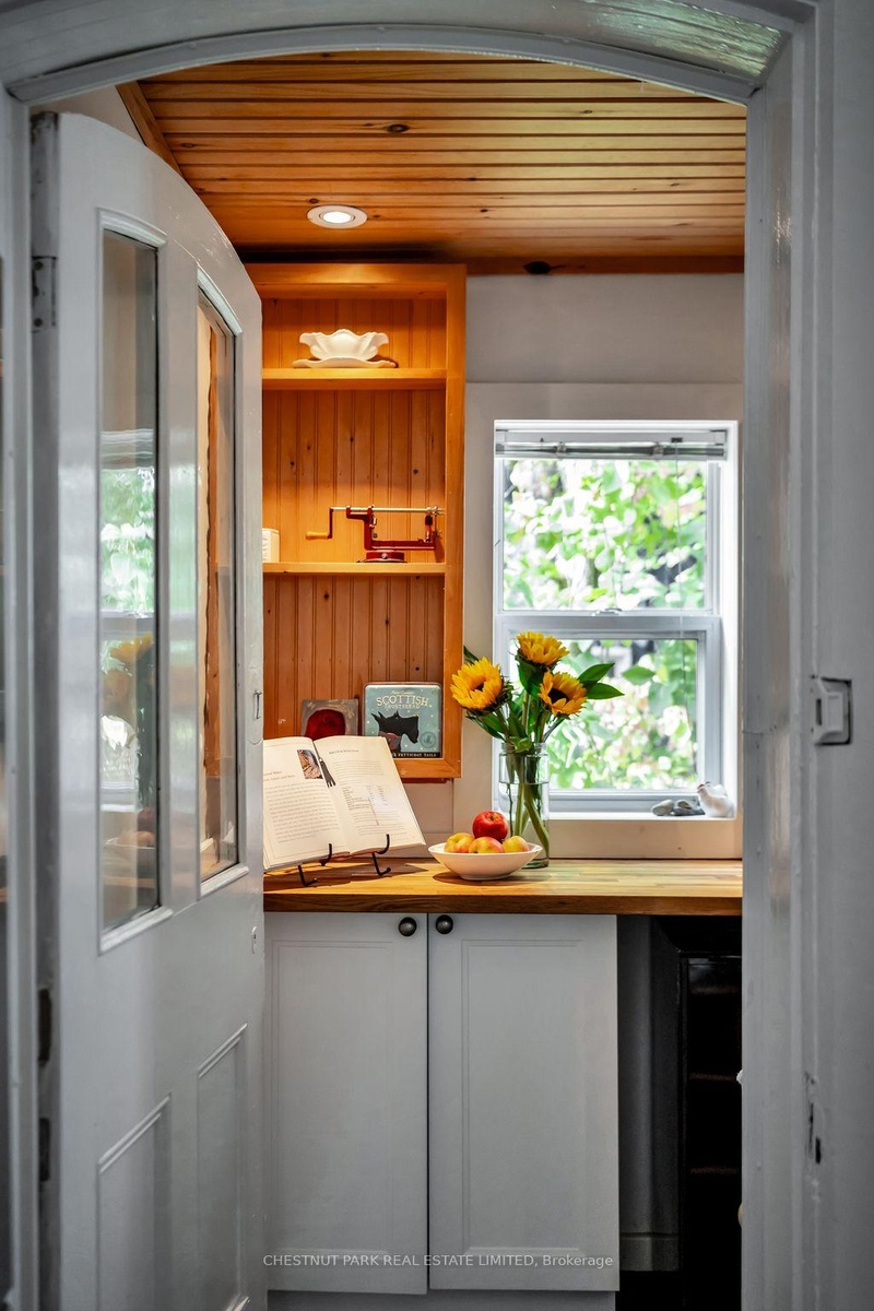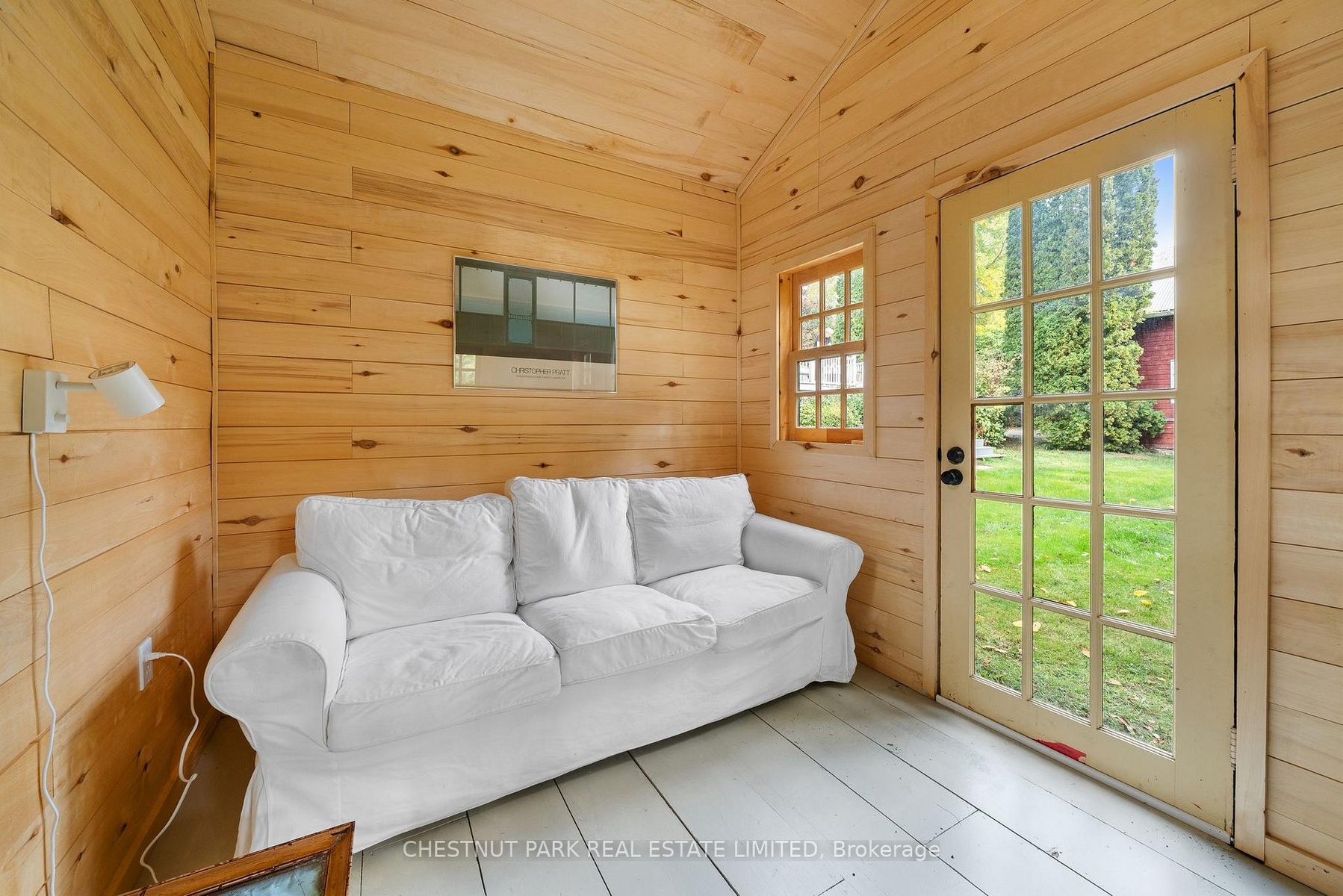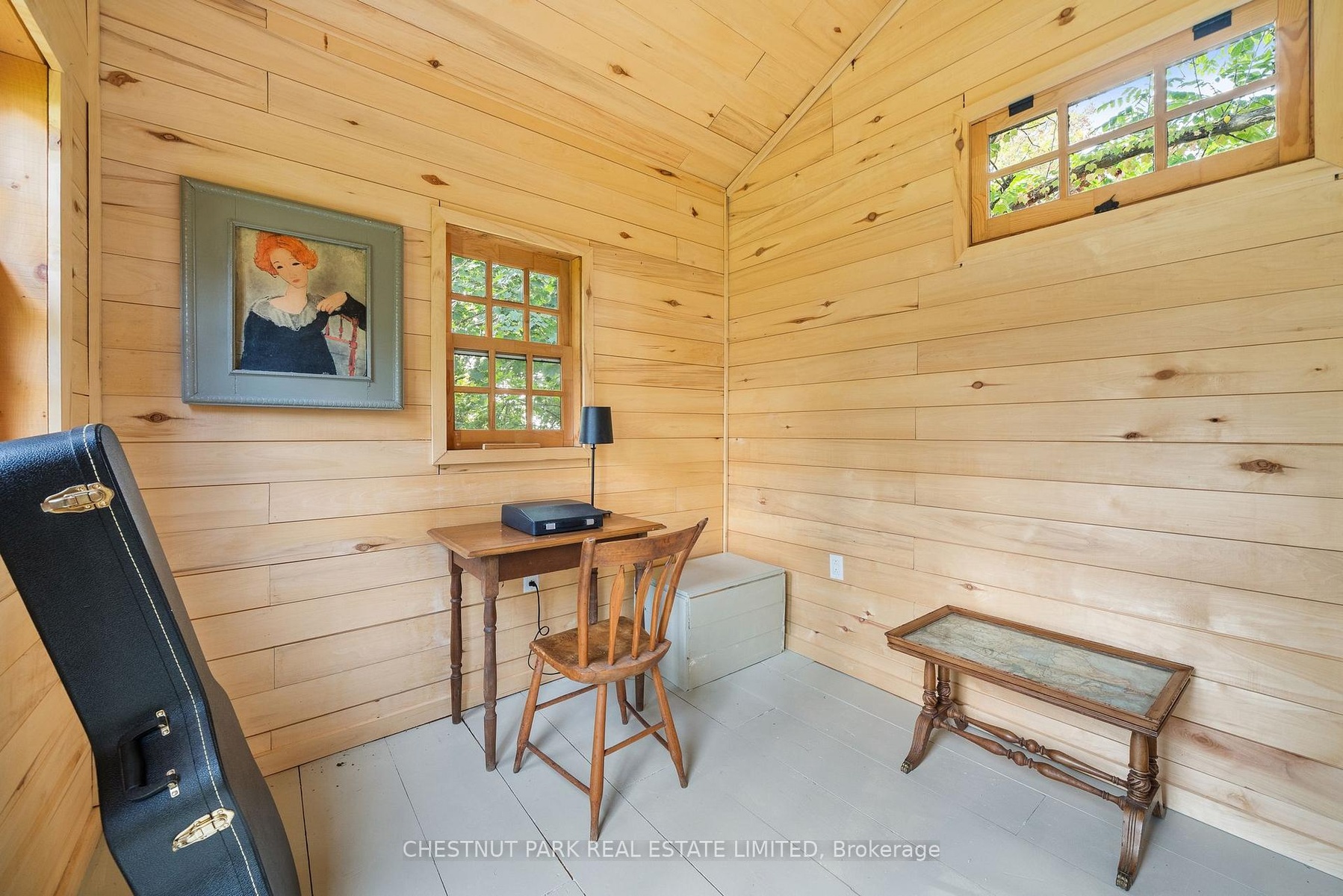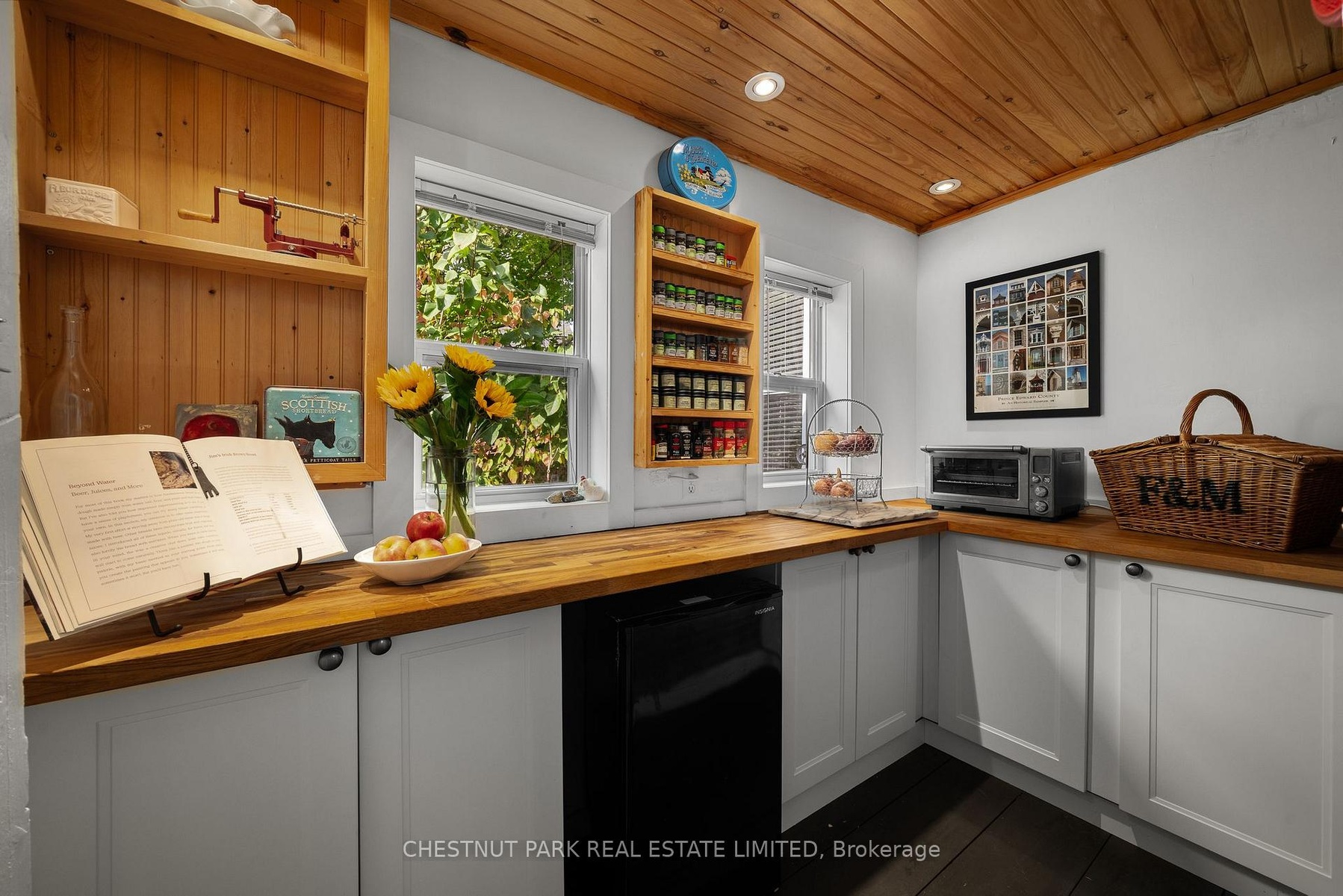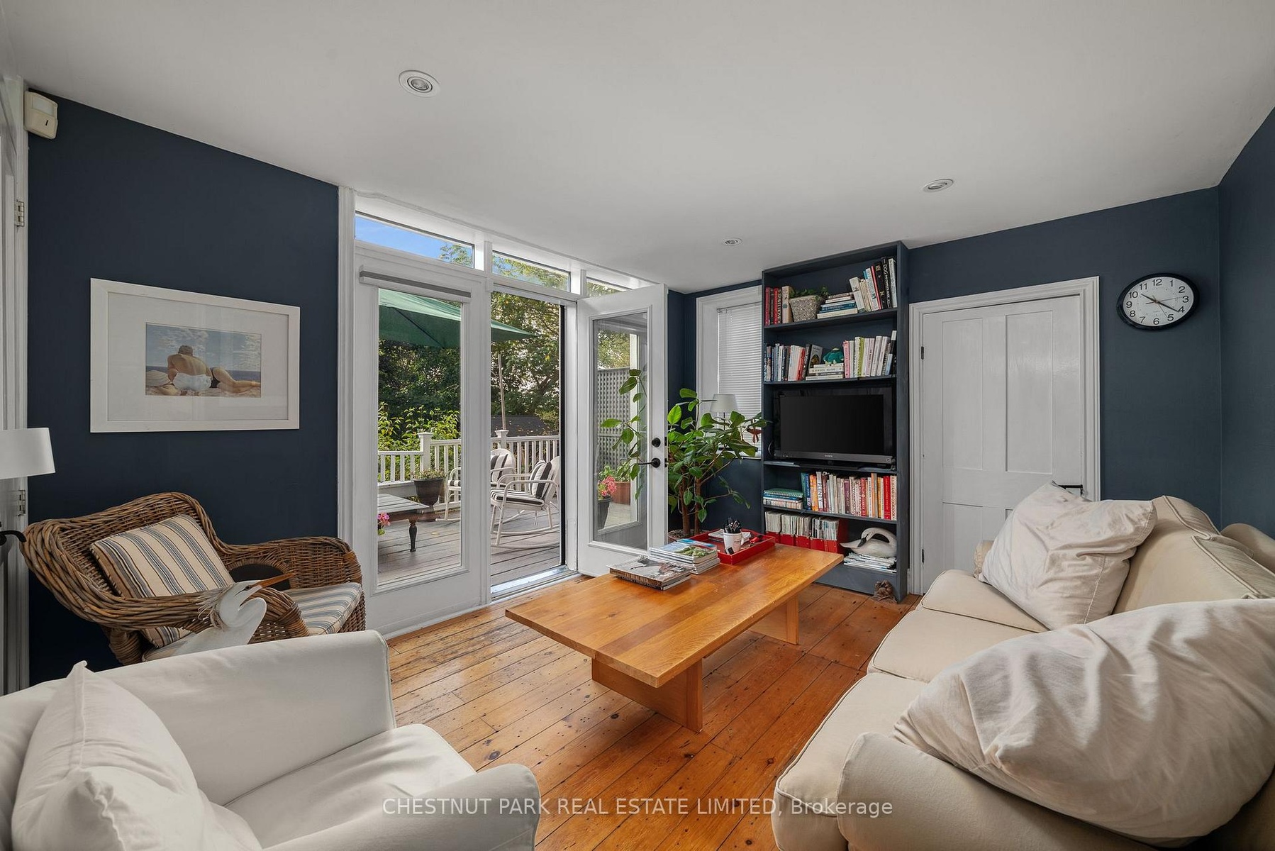 An architectural jewel of Bloomfield Main Street, 341 is a beautifully preserved century home with stylish modern amenities. This triple brick circa 1867 residence is a two-Storey hip-roof, showcasing soaring 10 ft ceilings, a classic centre-hall plan, elegant mouldings and timeless character throughout. Set on 1.1 acres in the heart of the village, the property extends down to Stanley Street, boasting upper and lower gardens divided by towering white pines, landscaped with a variety of mature trees that provide privacy and a haven for songbirds all year round. There is a comfy writers cabin tucked behind the home in the lower garden, along with one of the largest original coach houses in town, 2 full storeys, plus a lower level, offering endless potential. The long double-car driveway can accommodate several cars when hosting large groups. The charming Victorian era front doors open into a classic entrance hall with a convivial layout including two formal front rooms and spacious dining room, perfect for intimate or larger gatherings. The heart of the home is the updated kitchen, blending style and function, flowing into a cozy south facing sun room where you can enjoy morning coffee overlooking the magnificent pines. French doors open onto a balcony and a bird watchers paradise - forested gardens with lots of space for summer entertaining. This stylish home has four light-filled bedrooms with high ceilings and large windows facing out over the tree tops, three bathrooms including a three piece on the main-floor and upstairs, a guest bedroom with 2-piece en-suite, and a shared 4-piece along with a convenient bedroom-level laundry room. The back staircase leads to a versatile flex space, ideal as a studio, home office, or fitness area. The house is perfectly located, a short walk to the trendy boutiques, cafes and restaurants that make Bloomfield one of Prince Edward Countys most popular, vibrant villages.