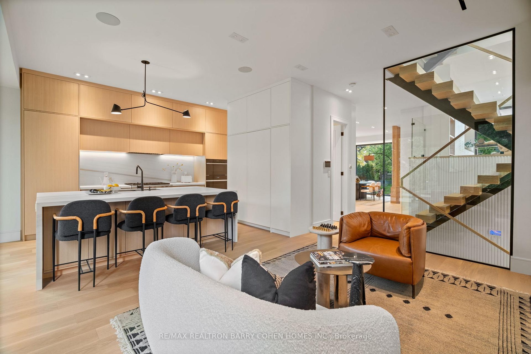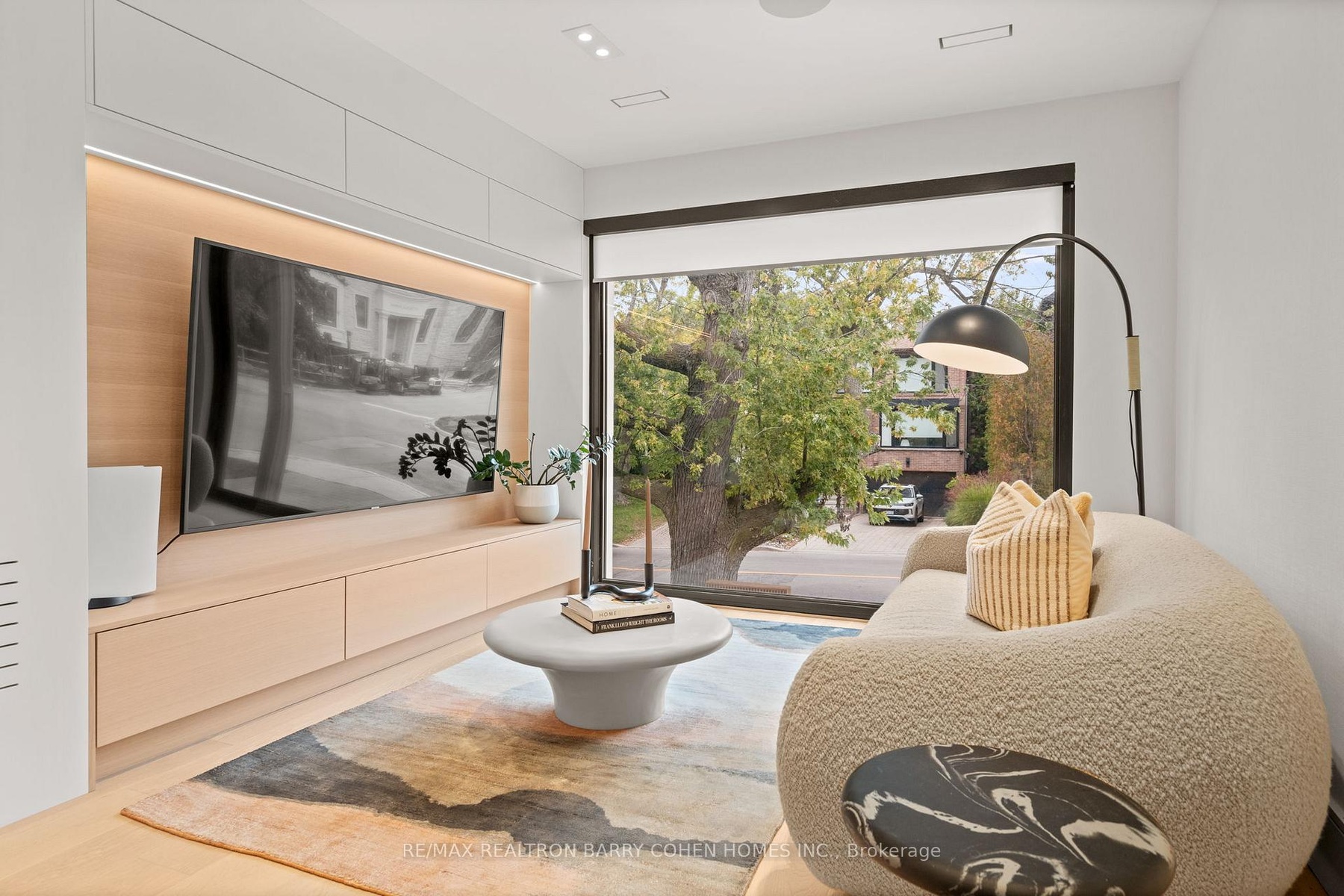An Architectural Standout In Midtown Toronto. Built By Its Owner To An Exceptional Standard Of Quality, Craftsmanship & Discerning Taste. Offering 3,665 Sqft. Of Luxurious Living Space Above Grade, Including A Magnificent Walk-Out Basement. Every Detail Hand-Selected, Every Choice Intentional. An Inspired Blend Of Scandinavian & Contemporary Design, With Solid White Oak Accents, Artful Ambient Lighting & Luxury Finishes At Every Turn. Control 4 Automation & In-Ceiling Speakers Throughout. Expansive & Bright Principal Spaces Feature Floor-to-Ceiling Windows, Oak Floors & Bespoke Built-Ins, Anchored By Elegant Floating Stairs. Family Room W/ Linear Gas Fireplace, Travertine Surround, Integrated Seating & Walk-Out To Terrace Overlooking Rear Gardens. Chef-Inspired Custom Kitchen Features Premium Wolf/Miele Appliances & Centre Island W/ Waterfall-Edge Porcelain Countertop. Cozy Loft Lounge W/ Oversized Windows Overlooking Front Gardens. Stylish Primary Suite W/ Soaring Vaulted Ceilings, Private Balcony, Walk-In Closet W/ Illuminated Built-Ins & Spa-Quality Ensuite W/ Curbless Shower, Freestanding Tub & Heated Porcelain Floors. All Bedrooms W/ Custom Built-In Closets & Ensuites W/ Heated Floors. Ground-Level Basement Boasts Impressive Scale For Entertaining, Floor-to-Ceiling Windows, Fully-Outfitted Bar, Linear Gas Fireplace W/ Stone Surround, Walk-Out To Backyard, Nanny Suite & 3-Piece Bathroom. Backyard Retreat Features Covered Outdoor Living Room W/ Built-In Coyote Barbecue, Stone Countertops, Integrated Seating & TV Niche. Mature Tree Cover & Privacy Fences W/ Custom Lighting. Striking Exterior Presence W/ Fluted Wood Paneling, Custom Wood Soffits & Fascia, 12-Ft. Solid Mahogany Front Door, Heated Steps & Curated Lighting. Prime Location In Midtown's Most Coveted Family Neighbourhood, Minutes To Yonge-Eglinton/Leaside Amenities, Sherwood Park, Top-Rated Schools & Public Transit.
