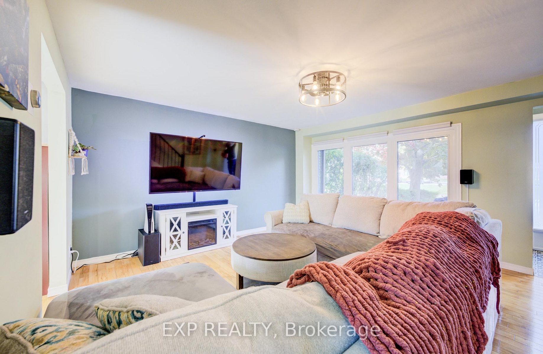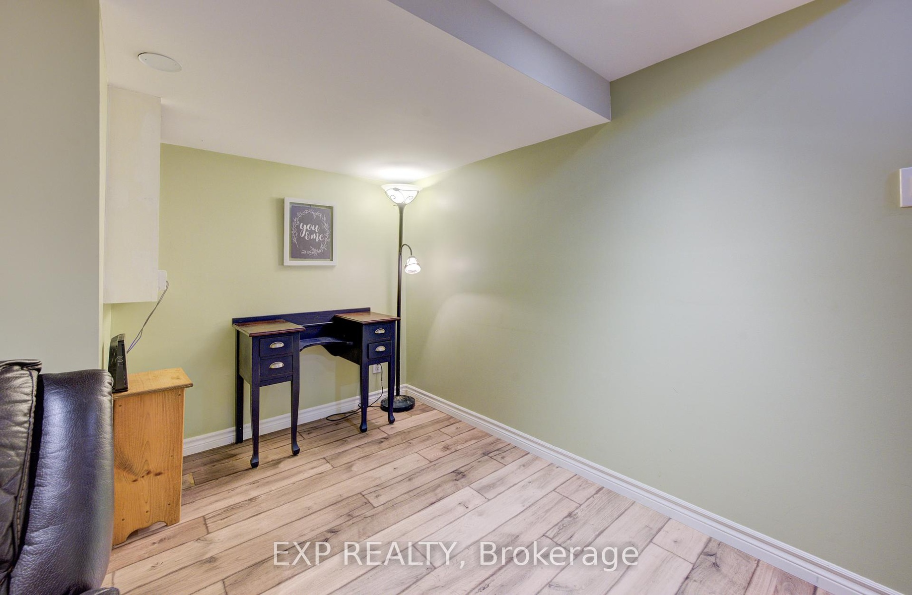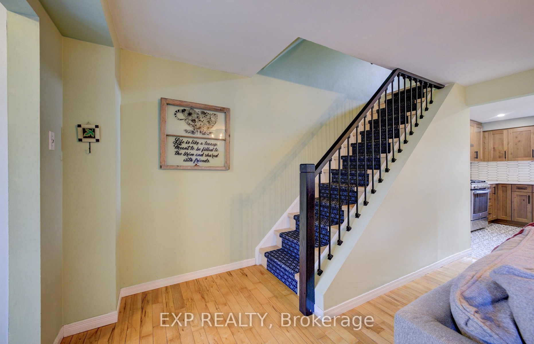 Welcome to 215 Preston Parkway, a move-in ready, updated townhouse in a convenient Cambridge location. This nicely finished 3-bedroom, 2-bath home offers over 1,100 sq ft of stylish living space. Enjoy a beautifully renovated kitchen (2023) featuring warm wood cabinetry, quartz counters, modern backsplash, and stainless steel appliances. The main level also showcases refinished hardwood floors, a spacious living room with large front-facing windows, and a dining area with walkout to a private deck and fenced backyard. Upstairs, all bedrooms are bright and generously sized. The home includes an updated main bathroom, bonus powder room, and a finished basement with extra storage. Located close to schools, parks, shopping, and Highway 401 for commuters.