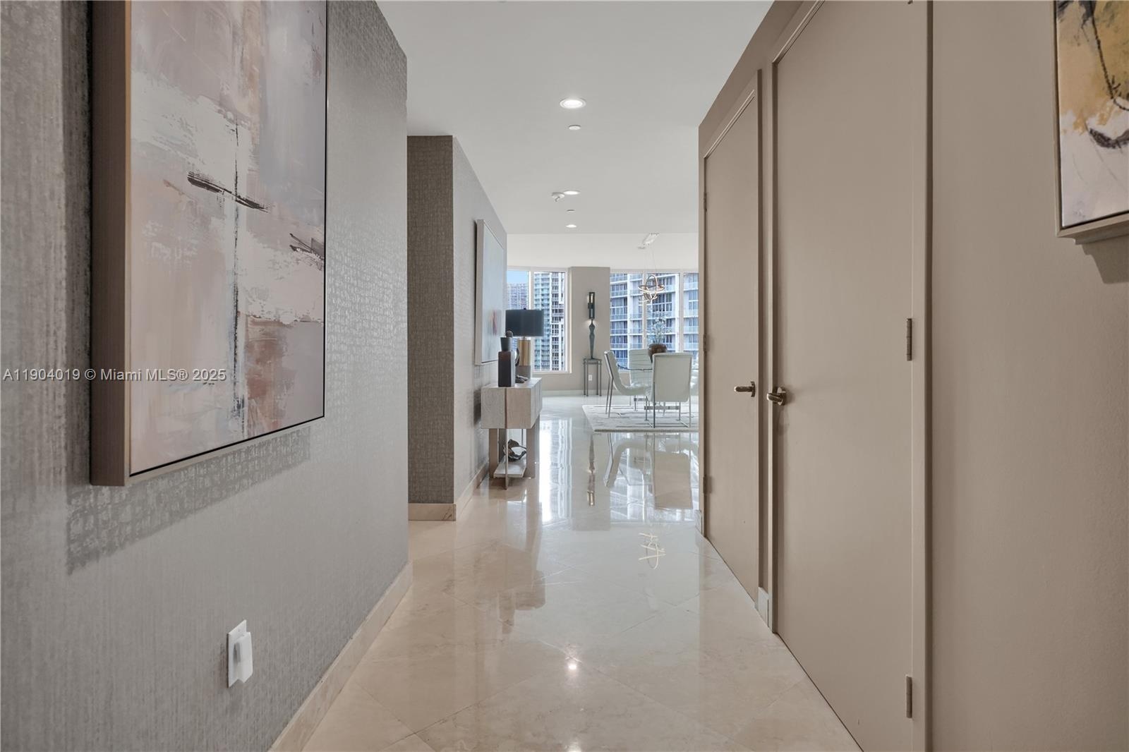 This phenomenal residence in the sky offers breathtaking panoramic views of Biscayne Bay and the Miami skyline from every window. The gourmet kitchen showcases custom Brazilian quartzite countertops, backsplash, and waterfall island, along with a sleek induction cooktop and a custom bar featuring a dual-zone 24-bottle wine fridge. Elegant marble floors flow throughout the home, creating a seamless sense of luxury. Carbonell provides an island oasis with resort-style amenities, including 2 tennis courts, golf putting green, indoor racquetball & basketball courts, a heated pool and jacuzzi, BBQ area, concierge, complimentary guest valet, children’s playroom, a two-story fitness center, party room, conference room, and business center. Experience an island lifestyle in the heart of the city.