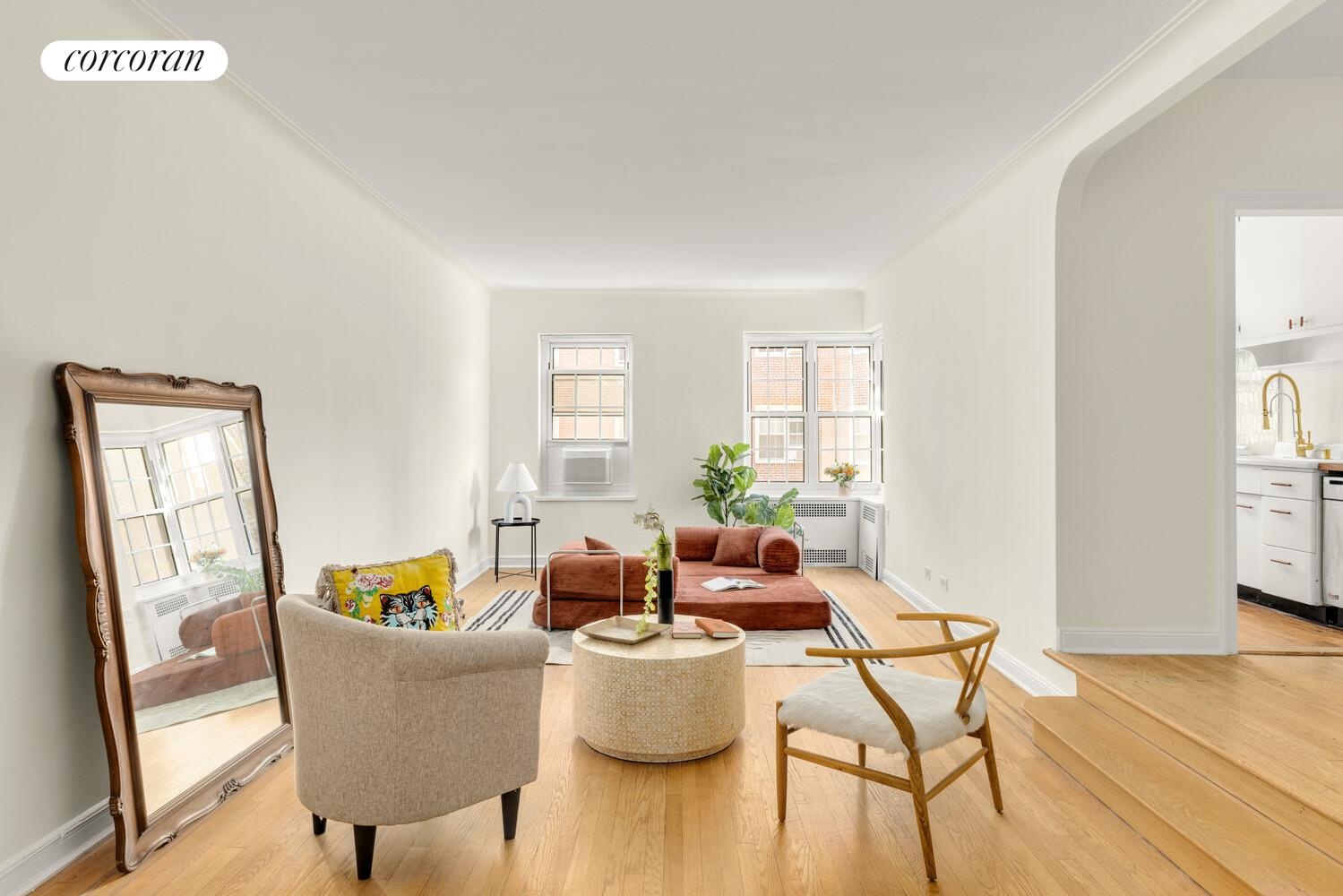 1 bed beauty with a fresh new kitchen that keeps all of the neo-Georgian majesty the Berkeley is known for. This massive one bed is filled with architectural delights including a sunken living room, a dining platform, graceful arches, original built in shelving, cast iron tub, a dressing room and more. This home is larger than many new development 3 bedrooms. The original hardwood floors are in excellent condition and have many years ahead on them. There are west, east and northern exposure making for a steady and graceful glow throughout the day.