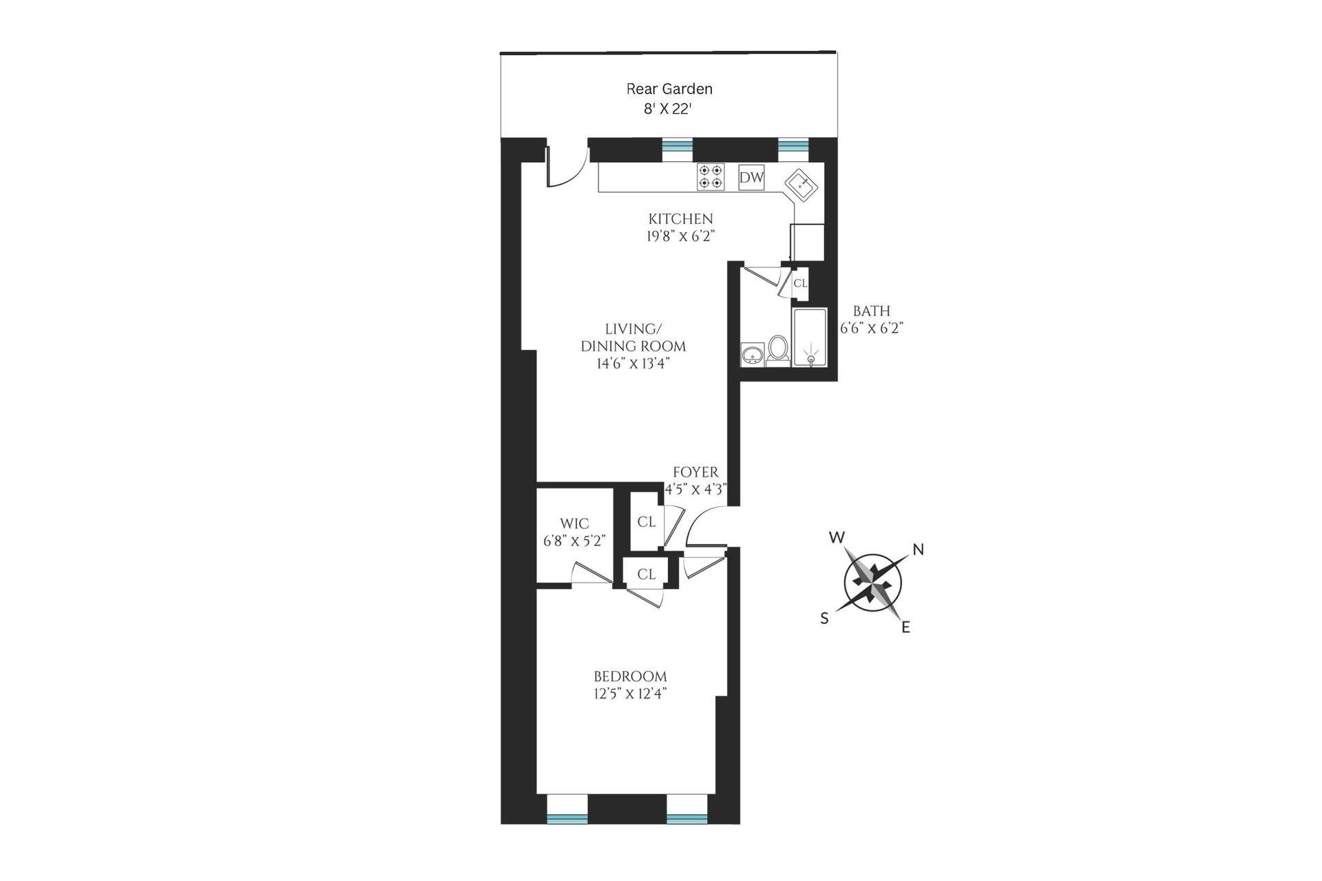 This garden-level home is a rare find in one of Brooklyn’s most coveted neighborhoods, especially one that has been thoughtfully redesigned. The garden home features a private entrance that opens into a welcoming foyer, offering ample space for dining and an additional living area. A coat closet is conveniently located just off the foyer for added storage. The rear door provides access to your own dedicated and private outdoor garden .