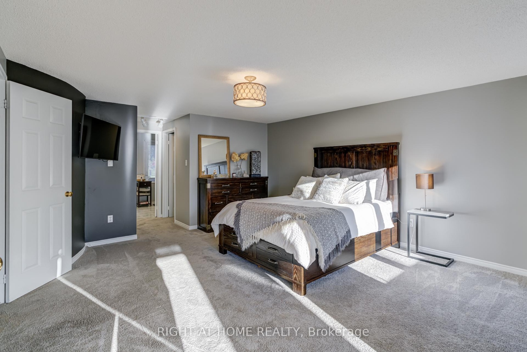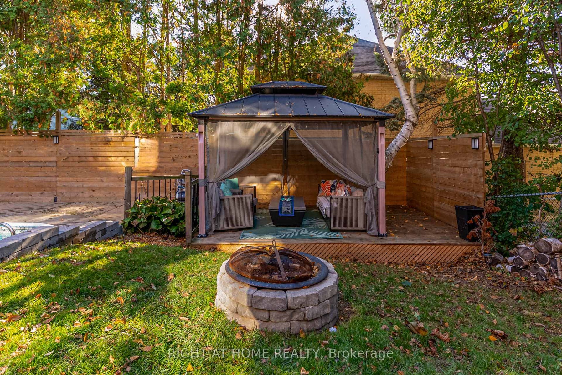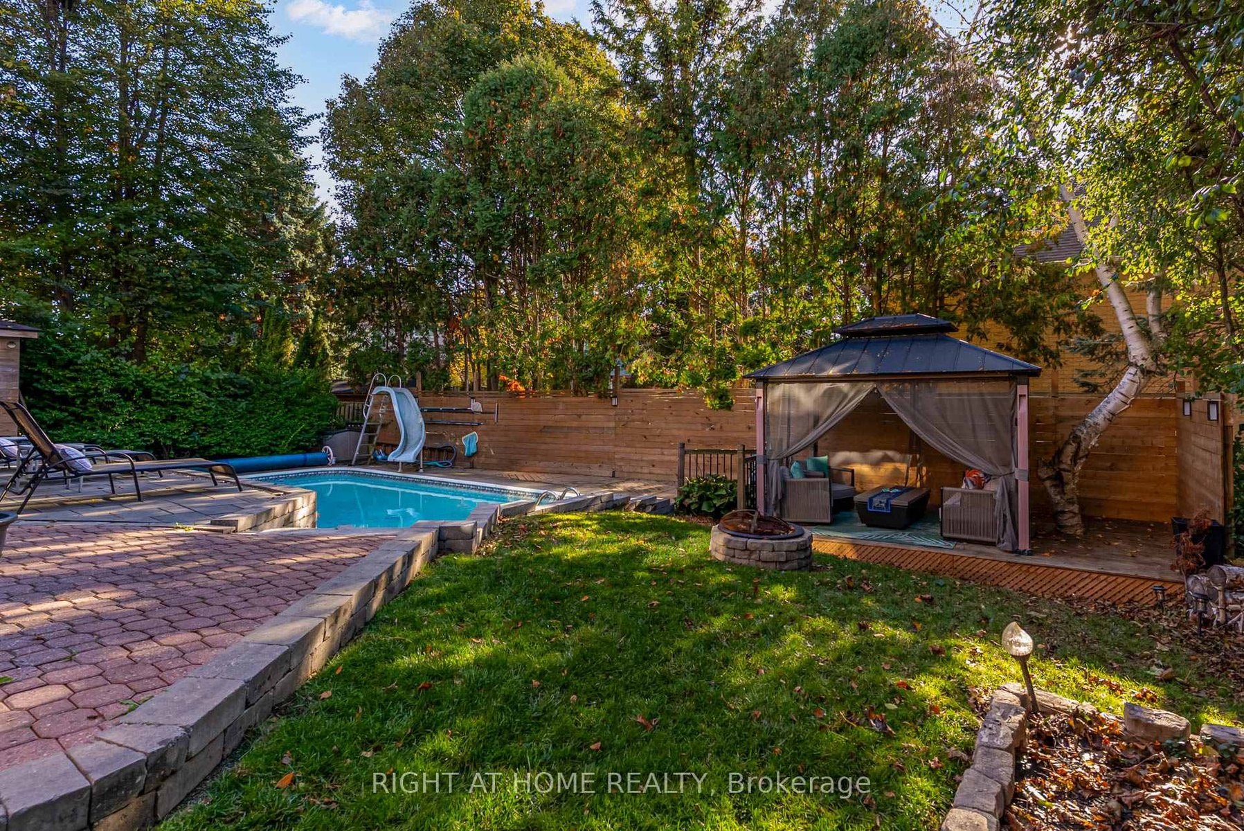 Spacious 4-bedroom home flooded with natural light throughout. The inviting living room features a cozy fireplace, pot lights, and beautiful hardwood floors. The modern kitchen is equipped with stainless steel appliances, an eat-in island, and plenty of storage-perfect for family meals and entertaining. The dining room offers hardwood floors, pot lights. A convenient powder room completes the main floor. The luxurious primary bedroom includes a sitting area with hardwood floors, a walk-in closet, and a 4-piece ensuite with his-and-her sinks. Three additional spacious bedrooms feature broadloom, closets. 4-piece bathroom with his-and-her sinks complete the second floor. The finished basement offers a large rec room with plenty of storage, ideal as a man cave or kids' play area, along with a convenient laundry room. Step outside to the fabulous backyard oasis, featuring a raised deck, inground pool, and gazebo-perfect for hosting family and friends. Conveniently located close to parks, schools, shopping and recreation complex. Make this perfect family home yours today!