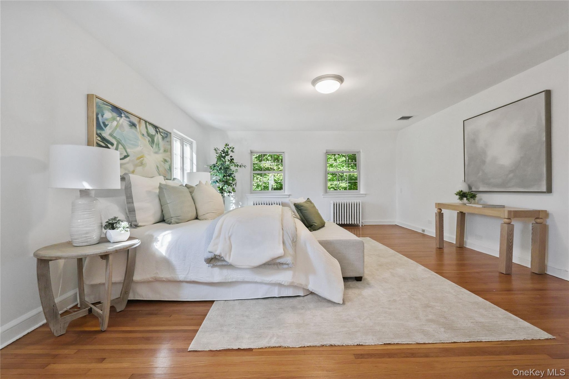 - Large, carpeted bedroom (wood floors underneath) and lots of windows
