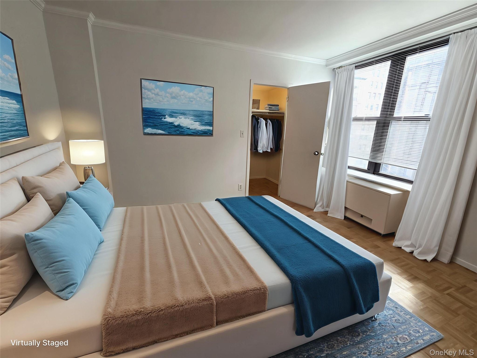 The Fitzgerald is a rare pre-war full service condominium building in a prime Upper West Side location.  You would be proud to live in the elegant art-deco style, but more importantly the sense of community among the residents and building staff allow for a calm and genteel oasis surrounded by the best of what the Upper West Side offers. The convenience of the express 72nd Street subway stop just one block away and located just steps away from prime shopping at Fairway, Citarella, Trader Joe’s and more are some of the amenities of the neighborhood.  Just two blocks either east or west to Central Park or Riverside Park. This beautiful light filled South facing 1 Bedroom apartment has hardwood floors, large windows, space for a king sized bed, walk-in closet in the BR, and numerous closets throughout. Stainless Steel full sized appliances in the generous kitchen, with a pass through to the dining area, and a tumbled marble clad bathroom.  The building features 24/7 doormen, a beautifully appointed roof deck common space with panoramic views, newer laundry space, and live-in Super. Photos shown with and without Virtual Staging. Amounts due prior to move-in: $4300 1st month base rent, $4300 security deposit, $200 Building move-in fee, $350 condo board application fee, $200 per applicant condo board credit report, $350 first refusal by condo board, $200 condo application fee, $75 Agent initiation fee, $65 condo digital submission fee, 5% digital app fee (approximately $100), $1000 move-in deposit- refunded after move-in if no damage. (Approximate funds needed for move-in $11,000.) Schedule your showing today!