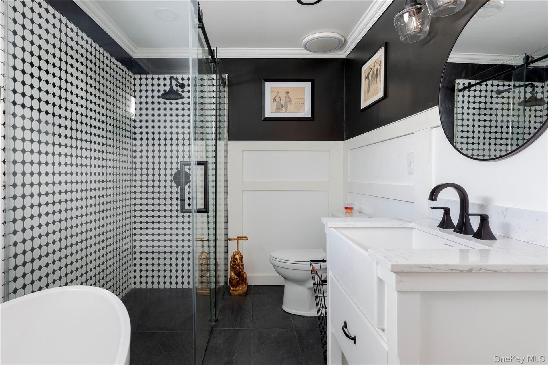 The open-concept living area on the main floor includes a well-equipped kitchen, a large dining room, a breakfast nook that leads out to the stone patio, and a cozy living room. A hidden door off the kitchen leads to a large pantry/laundry room and a luxurious bathroom featuring a soaking tub. All three bedrooms are upstairs including a spacious primary with its very own ensuite. The bonus attic provides a versatile space for storage, exercise, office or studio!