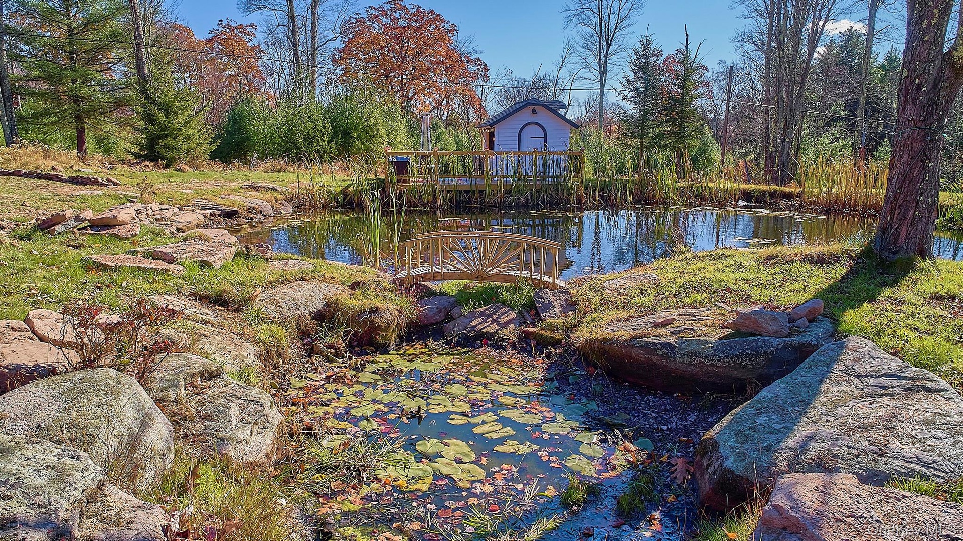 Set on nearly two tranquil acres, this property is perfect for hosting unforgettable gatherings. You can easily enjoy all the beauty this area has to offer with an expansive stone patio, a spring-fed pond with a deck and bar, a fenced-in garden space, and a large fire pit area for fun nights under the stars.
