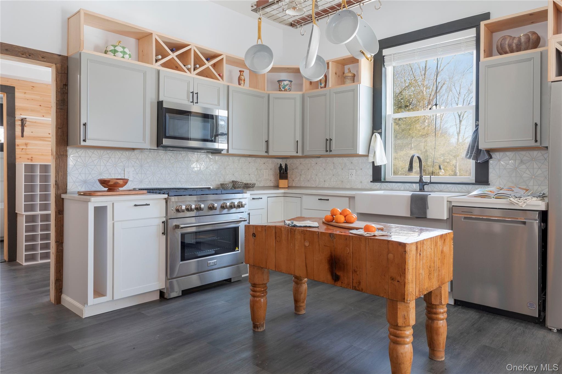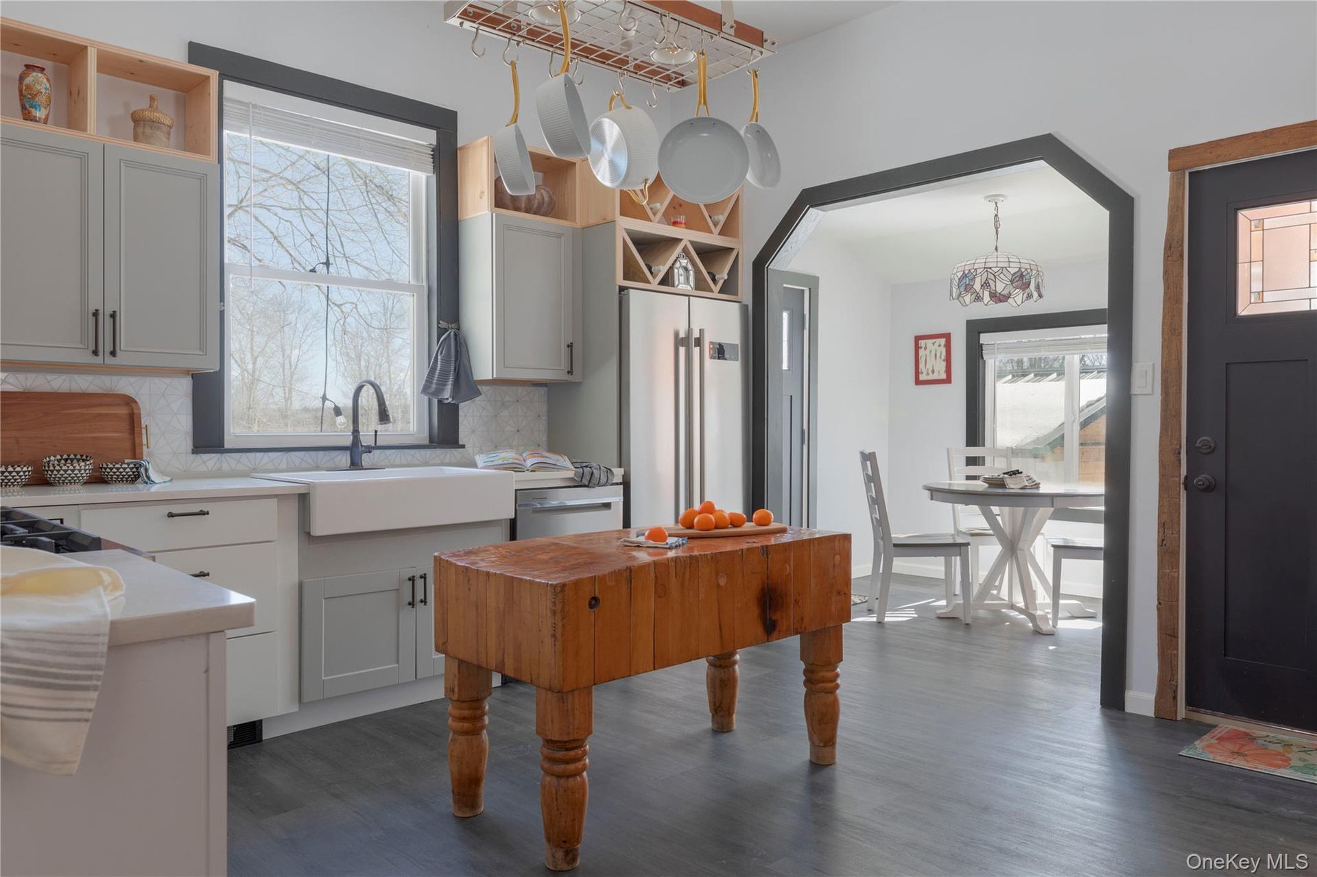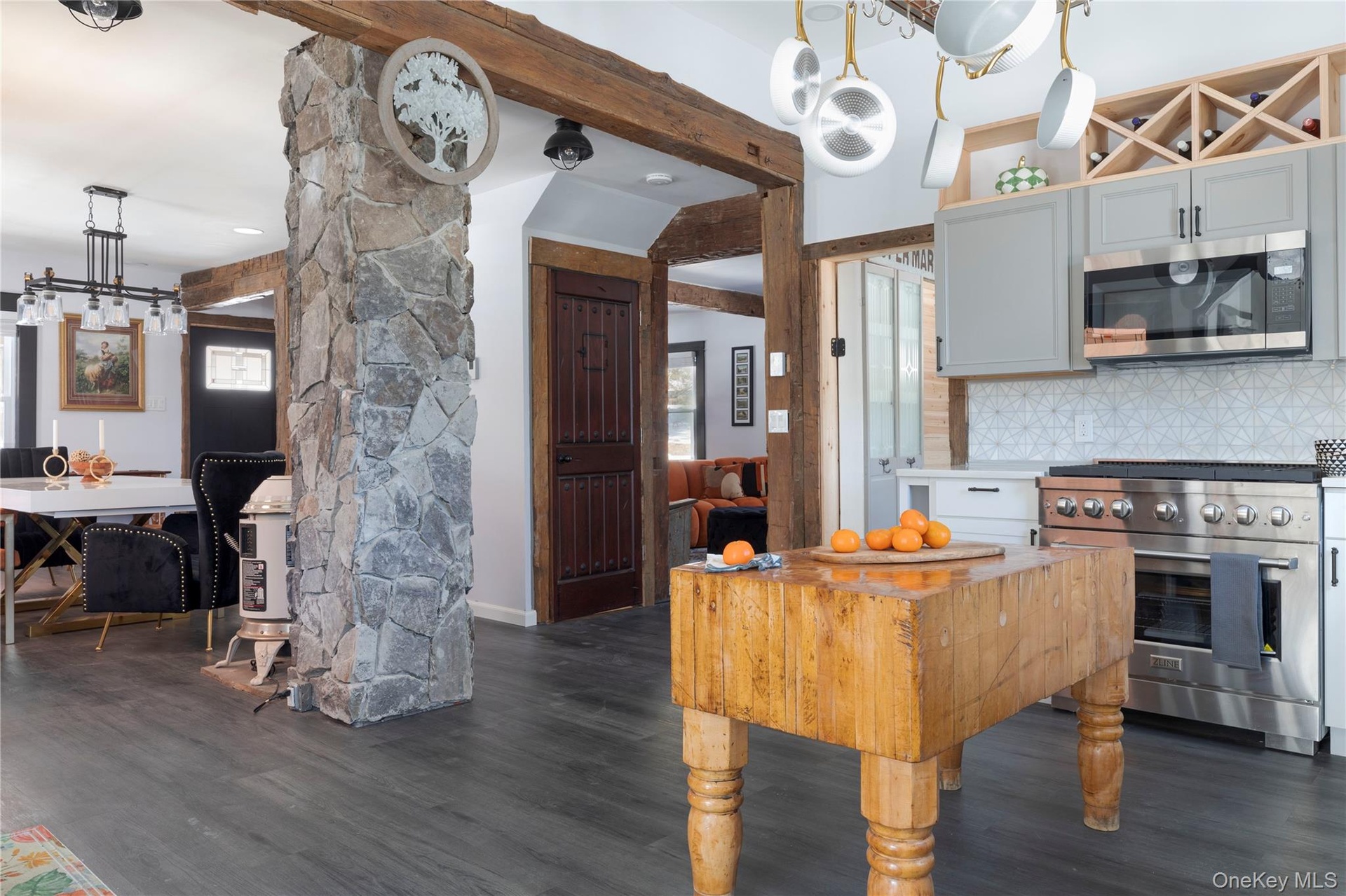 Experience the charm of this beautifully renovated farmhouse on Cold Spring Road, where a spacious wraparound porch, a sprawling backyard, and an adorable pond welcome you home. Original character has been preserved with exposed hand-hewn beams—a thoughtful nod to the home’s history that pairs perfectly with all of the updates.
