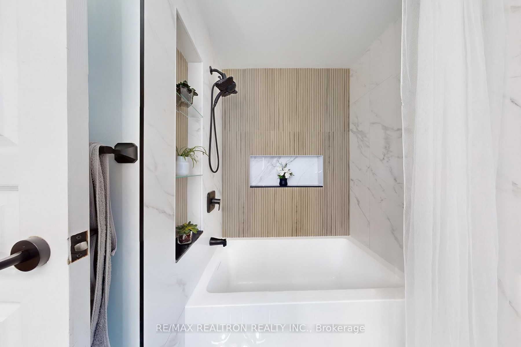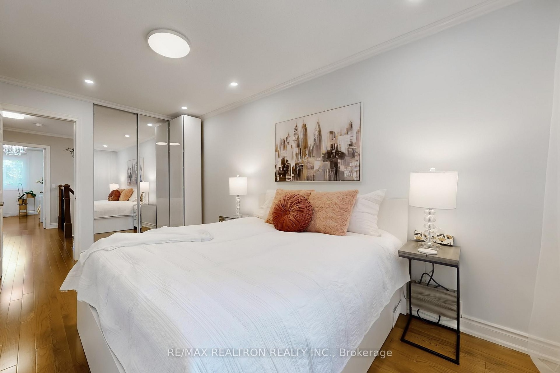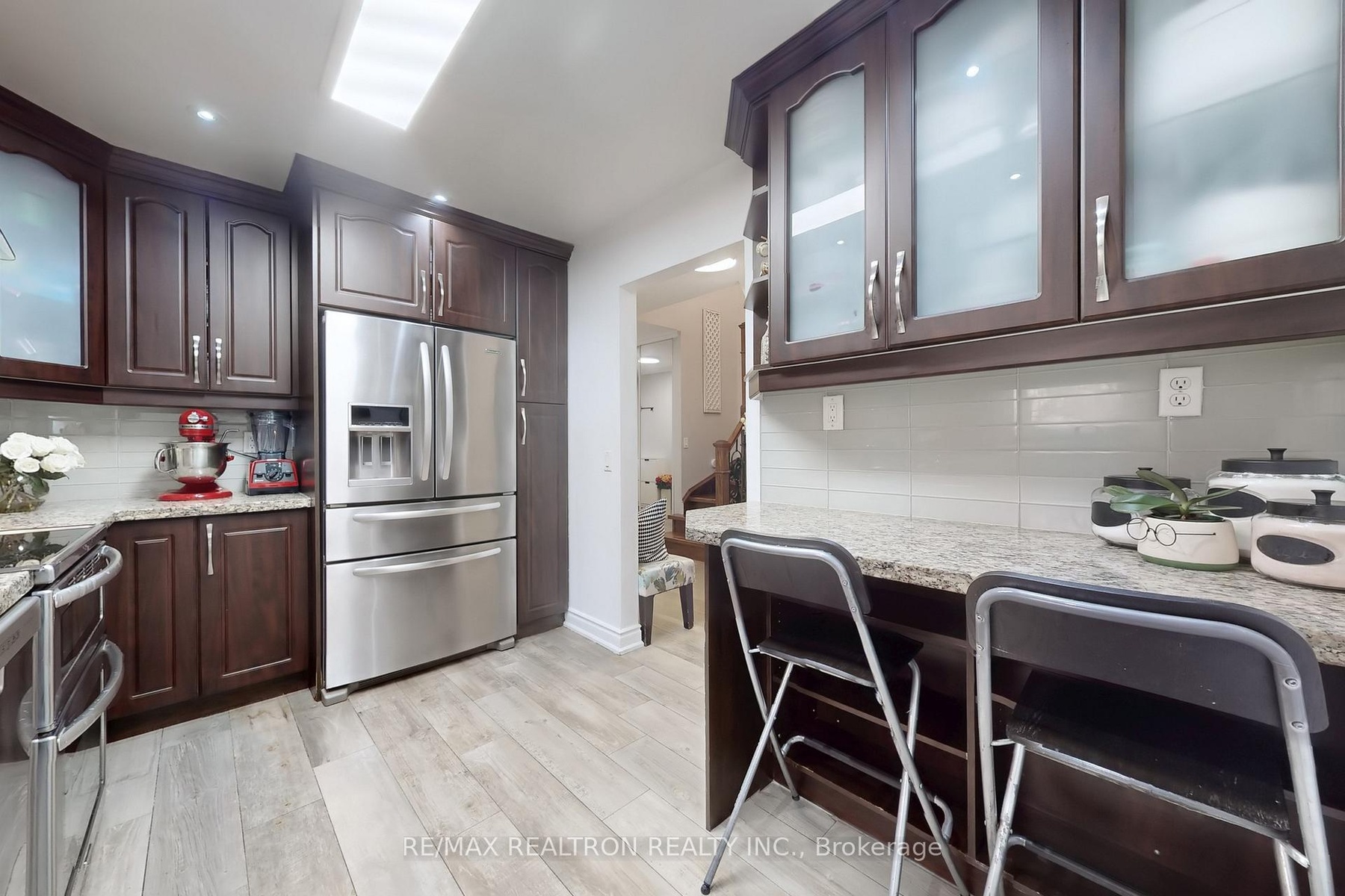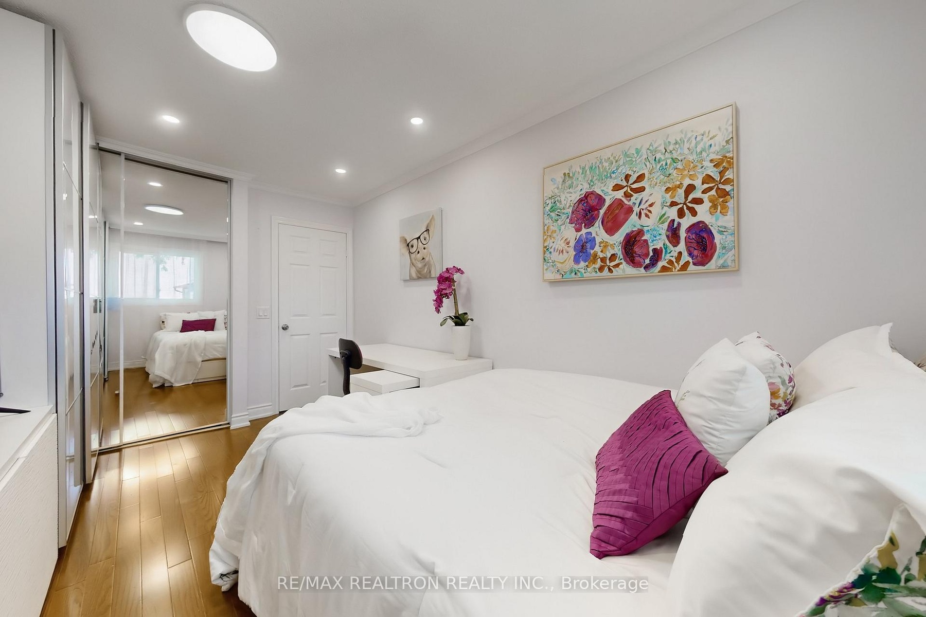 Welcome to this stunning, fully renovated semi-detached gem in the heart of Thornhill's sought-after Cottonwood Court! This sun filled 3 bedroom, 3 bath home showcases quality finishes from top to bottom. The inviting main floor features an elegant living/dining area with hardwood floors, crown mouldings, pot lights, an electric fireplace set on a striking split-face marble feature wall with custom built shelving and TV mount and a seamless flow to the beautifully landscaped backyard oasis. The renovated kitchen offers granite countertops, glass subway backsplash, breakfast bar and s/s appliances. Upstairs, the primary bedroom is a true retreat with South facing windows, two generous mirrored door walk-in closets, designer wallpaper, custom lighting and a gorgeous feature wall. The modern second level bathroom impresses with wood like tiles, double ceramic sink, floating vanity and anti-fog mirrors. Two additional bright bedrooms offer hardwood floors, crown mouldings and mirrored closets. The lower level offers a large family room with pot lights and a wood burning fireplace for cozy winter nights, a 3 pcs bathroom and a large storage room with custom shelving. Enjoy sunsets out on the deck at the oversized table under the large Brazilian awning (negotiable). The spacious wooden deck is surrounded by custom trellises and flower pots, ensuring privacy. A garden shed for extra storage completes this fully fenced yard. The thoughtful touches throughout make this home truly move in ready. Families with children will love the top-ranked Bayview Fairways PS and St. Robert HS with its prestigious IB program. Steps to golf course, scenic ravine trails, parks and transit, in a quiet, family friendly coul de sac. This turnkey beauty has it all: style, space and convenience, plus an outdoor haven to enjoy all year round!