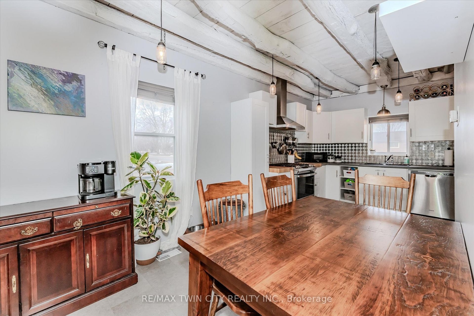 Charming family home in the heart of Conestogo. Enjoy small-town living just 5 minutes from top city amenities. This updated character home features exposed beams on the main floor, a renovated bathroom, freshly painted main floor and an updated spacious kitchen with gas-stove and stainless steel appliances. The second floor offers two large bedrooms with ample natural light and room for the whole family. Situated on a spacious 86 x 200ft irregular lot, the property backs onto a community centre with tennis courts, ball diamond, playground and a ball hockey rink. The property offers ample parking, including a double driveway for 6+ cars and a detached workshop/garage with a drive-through door. An additional single driveway accommodates 2 more vehicles or allows for parking an RV/other machinery. Recent updates include a newer furnace and A/C (2018), an owned water softener (2019), gas line for a BBQ, gas stove (2022), fridge (2023), washer & dryer (2021). The fully fenced yard boasts a large deck with a gazebo, a large fire pit, 4 lilac trees, 2 cherry trees and a well established grape vine as well as beautifully landscaped gardens with plenty of room for a vegetable garden. Don't miss out on this impressive home!