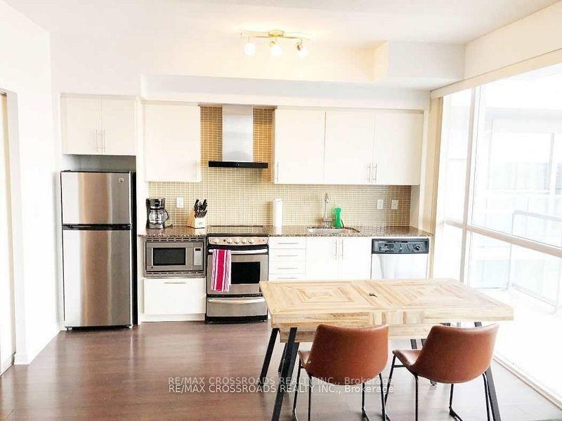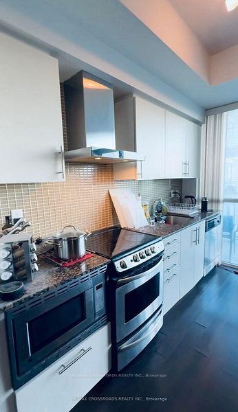 Gorgeous 1-bedroom plus den West facing condo in the heart of Torontos Entertainment District. Bright and spacious, with a functional 659 interior sq footage, it features floor-to-ceiling windows, west sunset views, and a massive balcony perfect for entertaining. The open-concept layout includes space for a living and dining area, work from home, spacious multi-purpose den, and a modern kitchen with stone counters, tile backsplash, built-in oven, and countertop range. Steps from The Well, King West, Union Station, CN Tower, Rogers Centre, and Blue Jays games, with nearby waterfront trails, Clarence Square Park, and the TTC/Gardiner/DVP nearby. Building amenities include 24-hour concierge, guest suites, gym, sauna, party room, rooftop patio. One locker is included & Tenant Pays Hydro, Content/Liability Insurance & $300 Key Deposit
