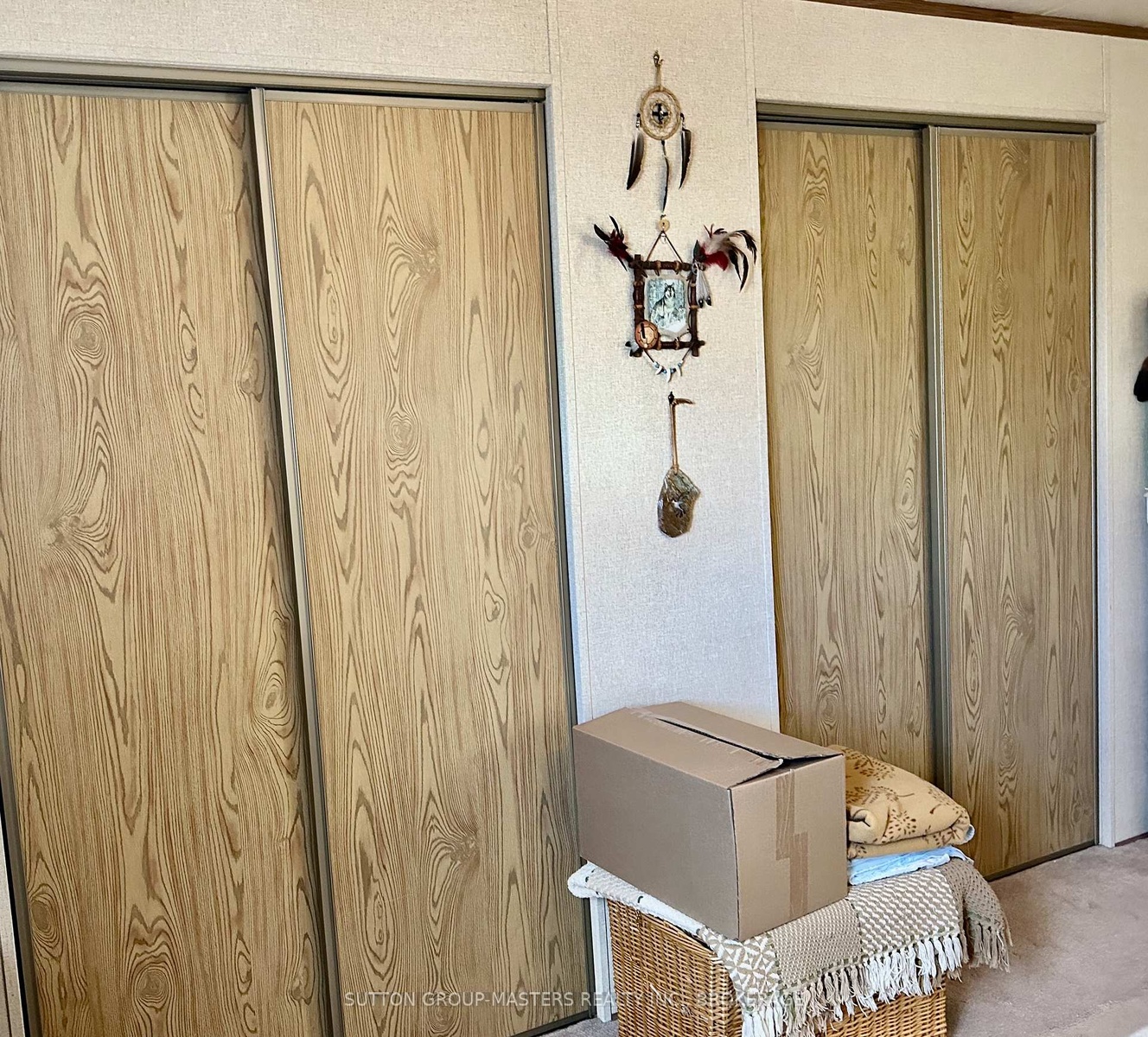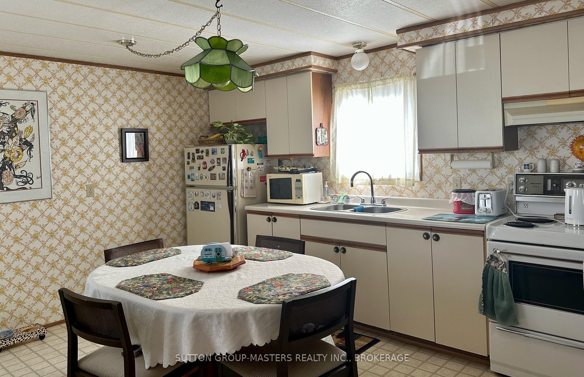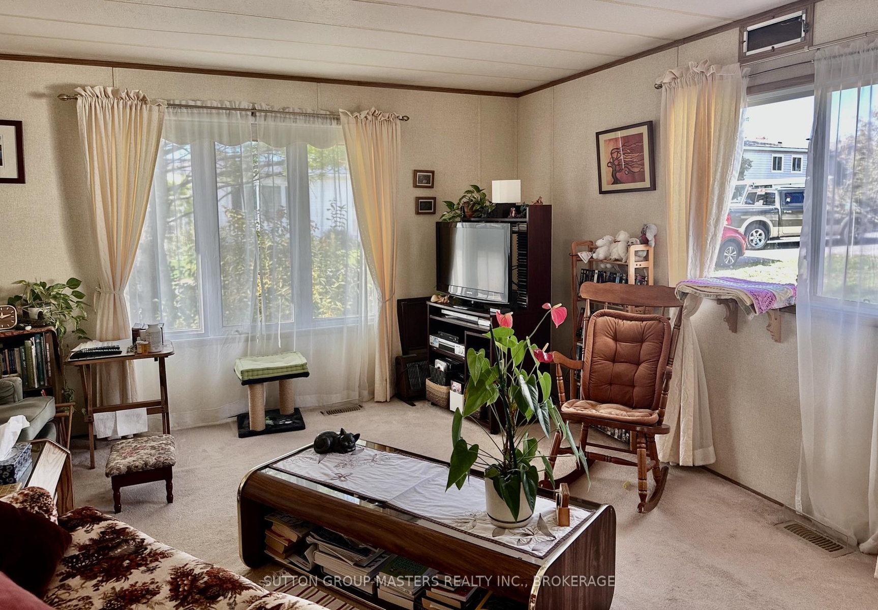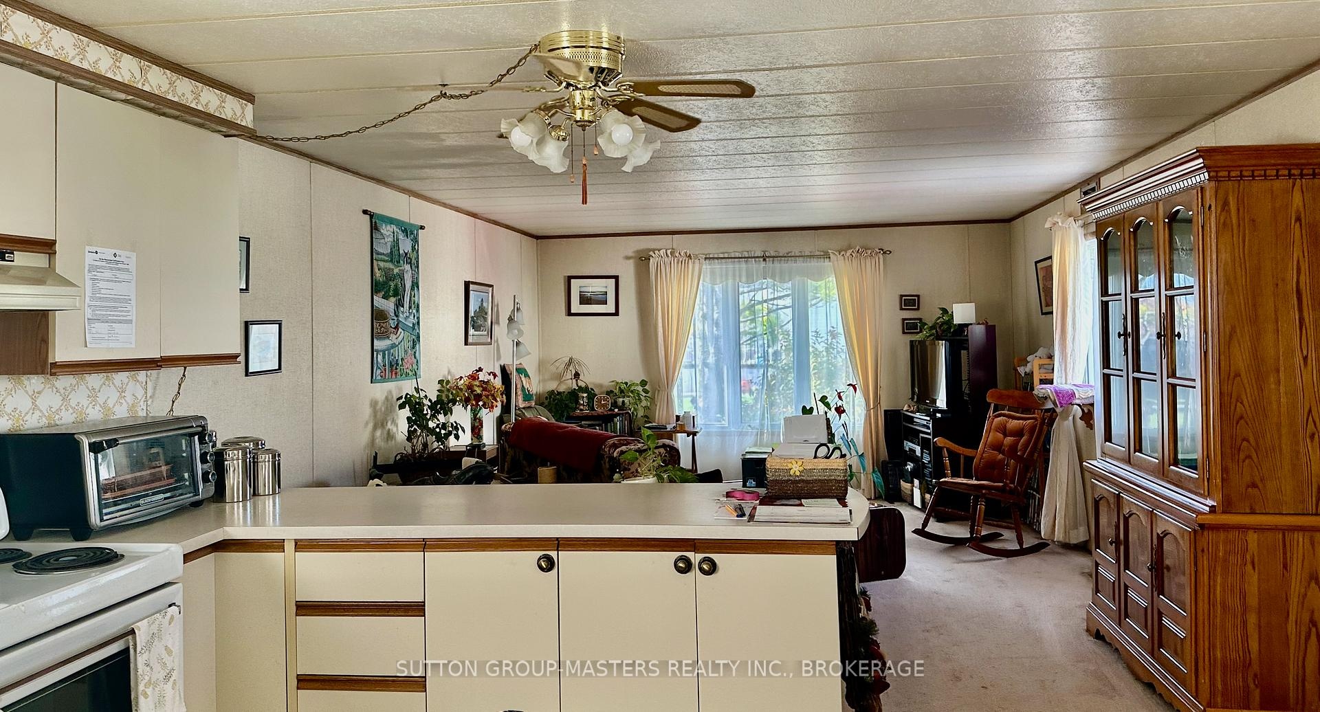 The perfect solution to affordable downsizing!  The Richmond Park community is close to Napanee amenities, backs onto the future seniors home, yet set in a country setting on a quiet road perfect for walking.  A covered entrance way from the paved drive with lots of parking leads to the open concept eat in kitchen with lots of cupboards and counter space. The hallway leads to a 4-piece bath and two bedrooms, houses convenient laundry set up, and to a second exterior door to the shed and small manageable yard.  This pet friendly, well established and well-maintained park offers a quiet lifestyle in a neighbourly environment. This home has been well loved for some time and ready for someone looking for the most affordable comfortable living space possible! You aren't paying more for fancy extras here, but it has what you need and it's ready for your own touches to make it your own. The spacious master offers 2 large closets, and the bright second bedroom for a spare or hobbies. The electric furnace, central air, newer metal roof, and good windows ensure a warm, dry comfortable living space. Close to Napanee this popular Richmond Park is expanding with new mobile homes for sale, and promises shared community hall for activities, and a swimming pool for the homeowners and their guests.  This could be the answer to your downsizing dilemma!