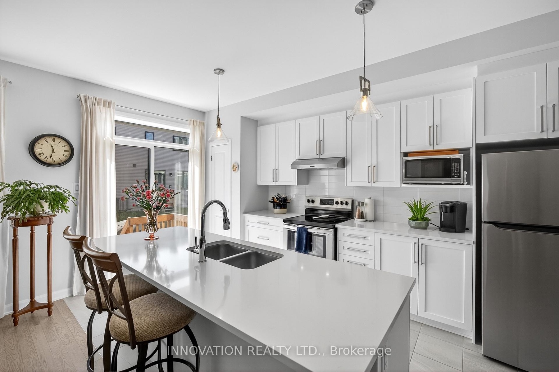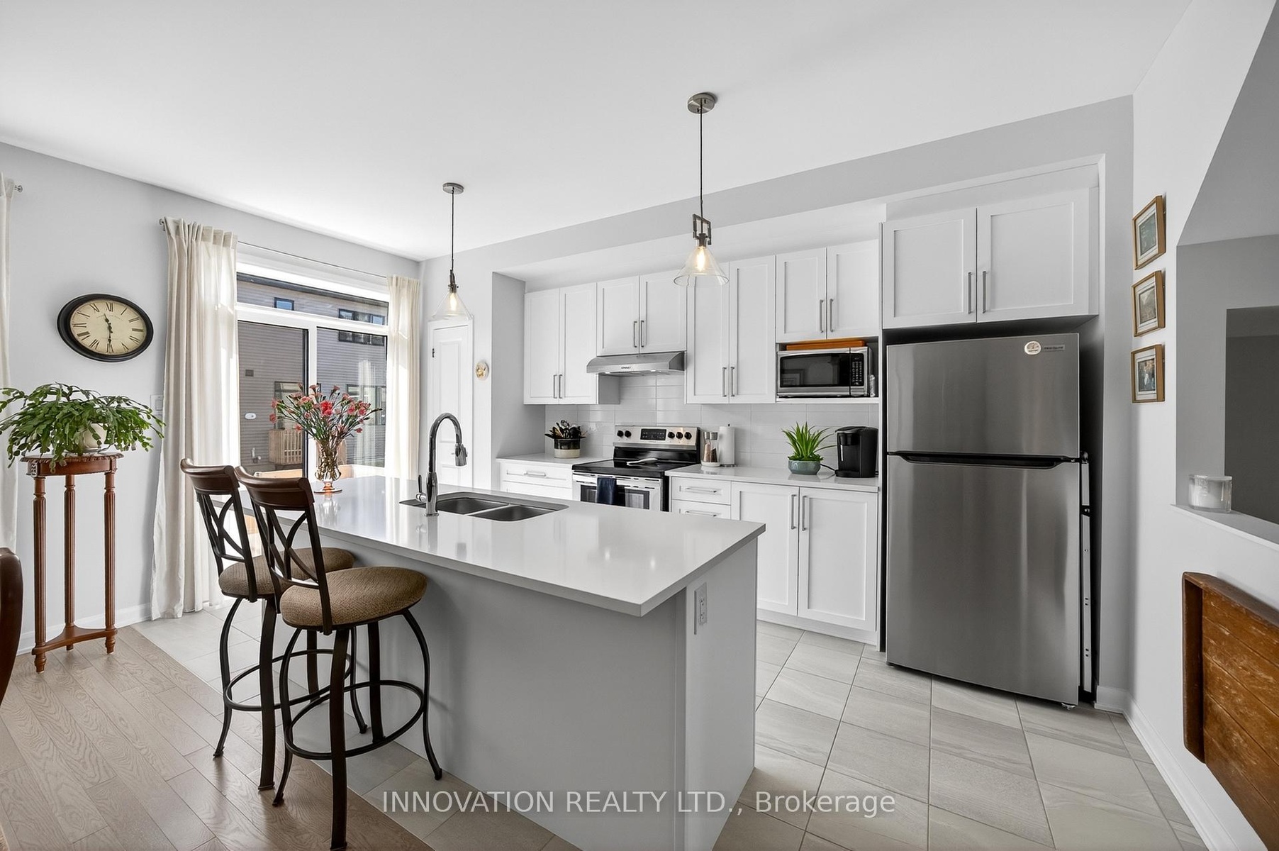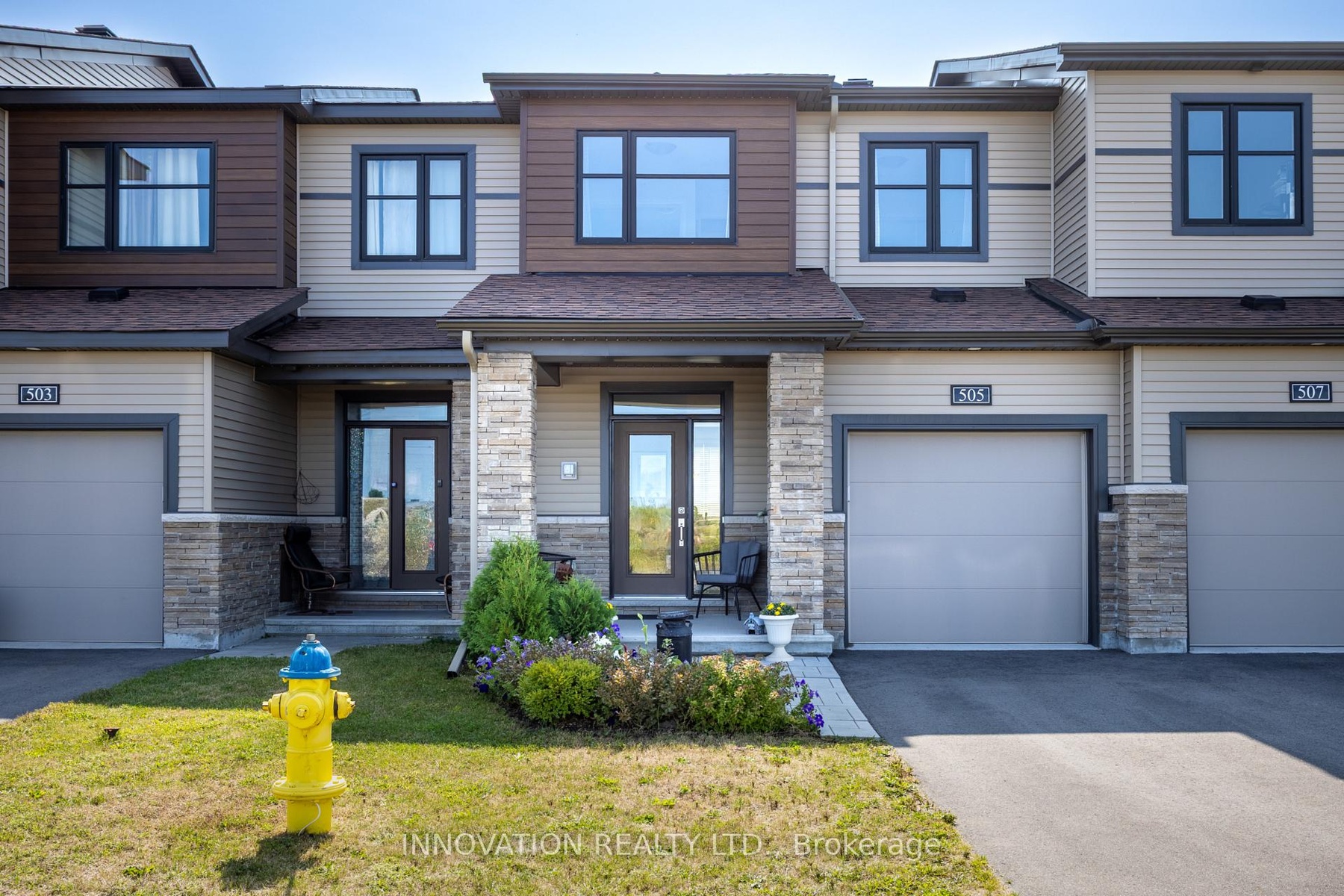 Welcome to 505 Moyard Drive in the highly desirable community of Half Moon Bay, Barrhaven. This beautifully maintained 2-storey townhouse offers a perfect blend of modern comfort, stylish finishes, and functional living spaces. The open-concept main floor is designed for both everyday living and entertaining, featuring rich hardwood flooring, designer neutral tones, and abundant natural light. The bright, white kitchen is the heart of the home, complete with a large island, quartz countertops, and ample cabinetry, seamlessly connecting to the dining and living areas. Upstairs, discover three spacious bedrooms, including a serene primary retreat with an ensuite bath and generous closet space. The finished basement expands your living options with a versatile recreation room, highlighted by a cozy gas fireplace - perfect for family movie nights, a play area, or a home office. Practical features include two full bathrooms, two convenient powder rooms, and an extra-deep garage providing excellent storage. With a modern layout and timeless design throughout, this impeccable home is move-in ready. Set in a family-friendly neighbourhood, you'll appreciate the close proximity to top-rated schools, scenic parks and trails, shopping, and transit - offering the ideal balance of comfort and convenience. 24 hour irrevocable on all offers