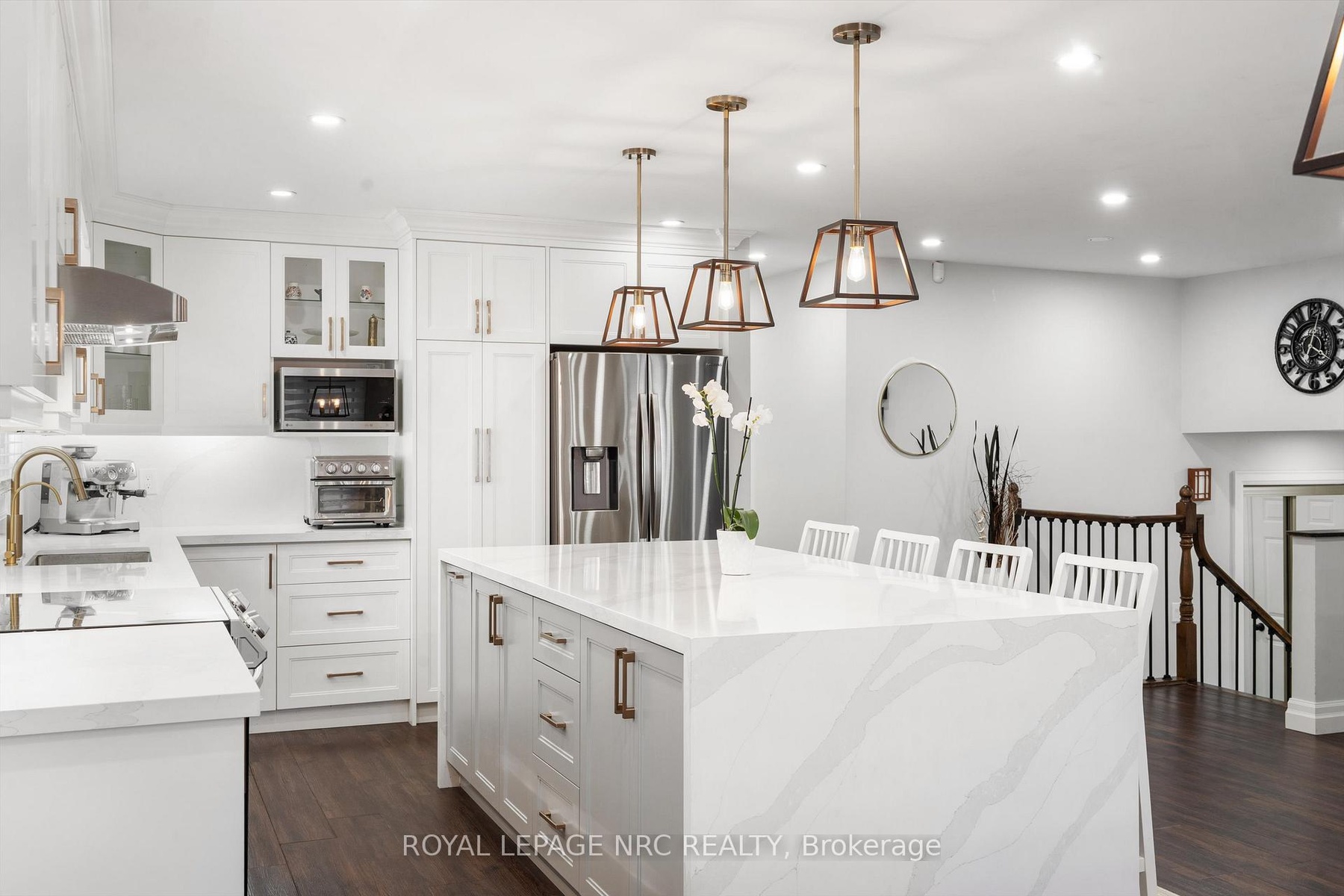 It's All Here!  Everything on the wish list.....Fantastic neighbourhood, deep lot, 2nd suite plus stylish open concept layout. This bi-level home is updated throughout!  Enter the spacious 17' x 6' foyer offering lots of room for coat & shoe storage, entrance to the garage & privacy for the main level from the front entrance.  The open concept kitchen, living, dining room measures 24'4" x 22'4" & features a stunning white kitchen with Quartz counters, island with seating, gold coloured accents, deep sink, pantry cabinets & stainless steel appliances. Three bedrooms on the main floor and a renovated bathroom with double shower with glass doors, 2 sinks & black accents.  The lower level features a huge kitchen with barn door that separates this area from the family room.  A 4th bedroom plus an office with a gas fireplace and a laundry room with wood counter that can be easily removed to access the washer & dryer.  This level has a separate outside entrance that makes it a practical choice for in-law accommodations with some separation.  The completely fenced rear yard is 165 ft. deep and offers a tool shed, vegetable garden & patio with a screened in gazebo.  Situated in a desirable school district, close to the hospital & SMART shopping district. Easy access to the QEW & Hwy 406.