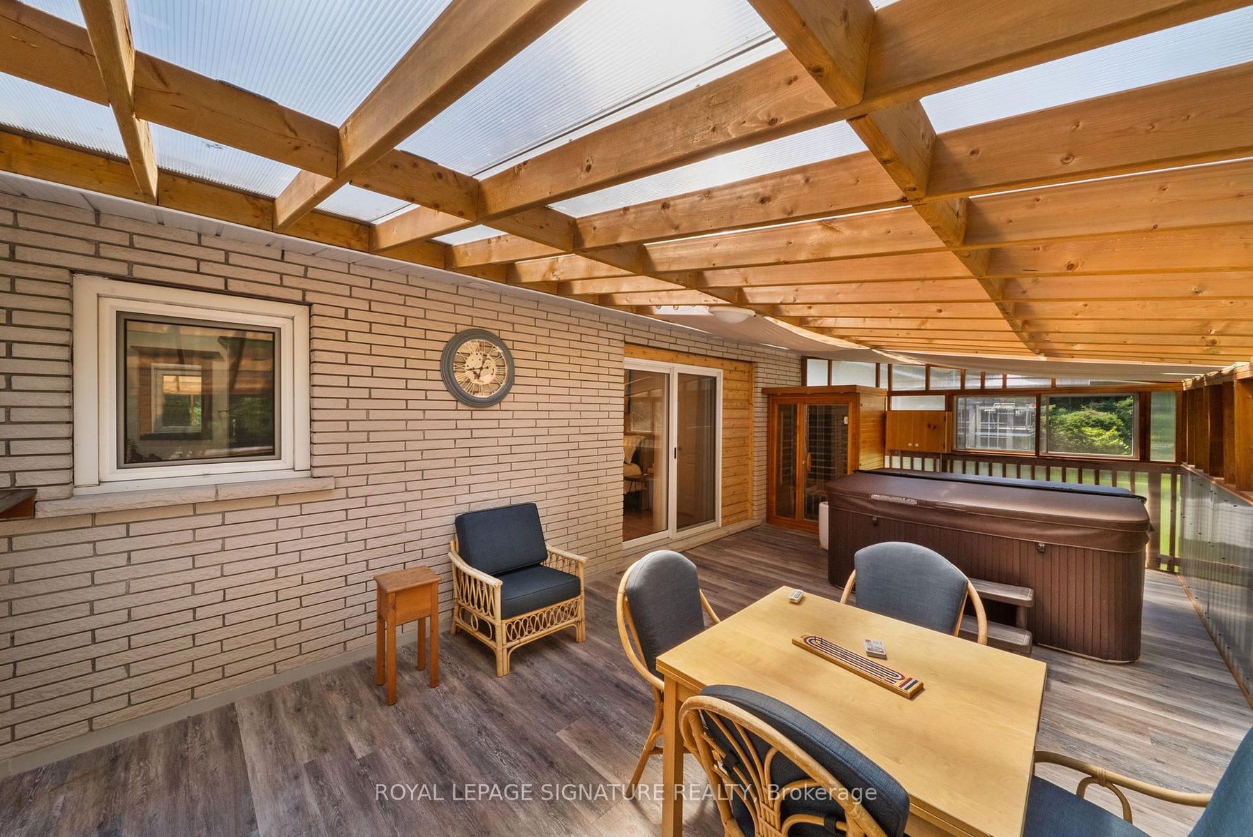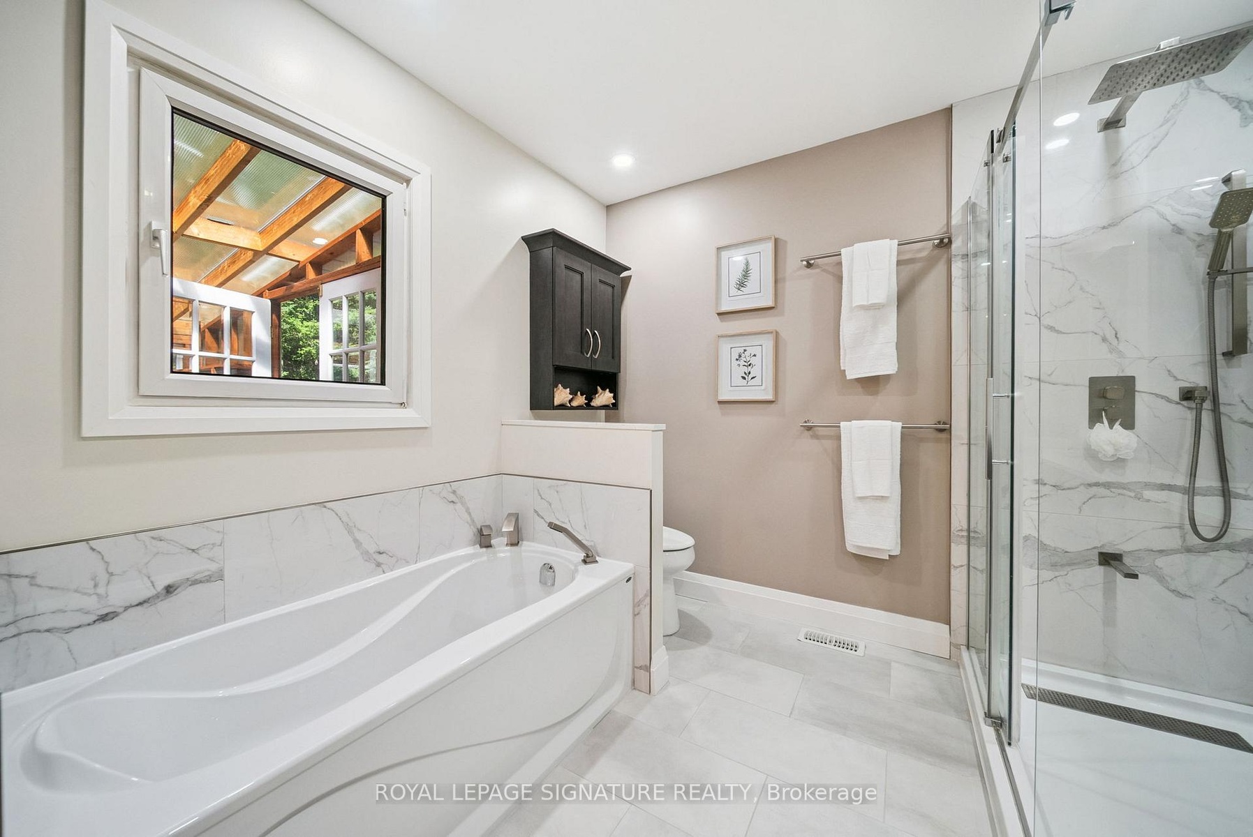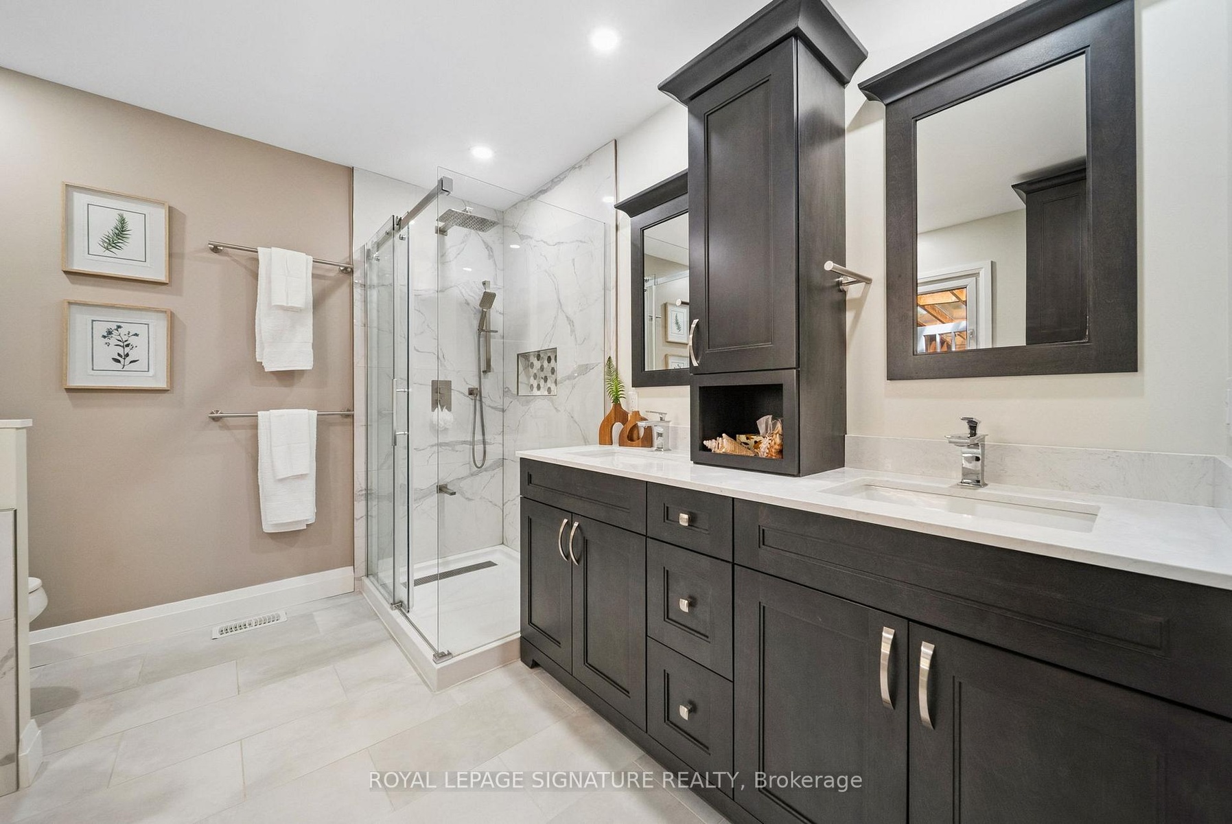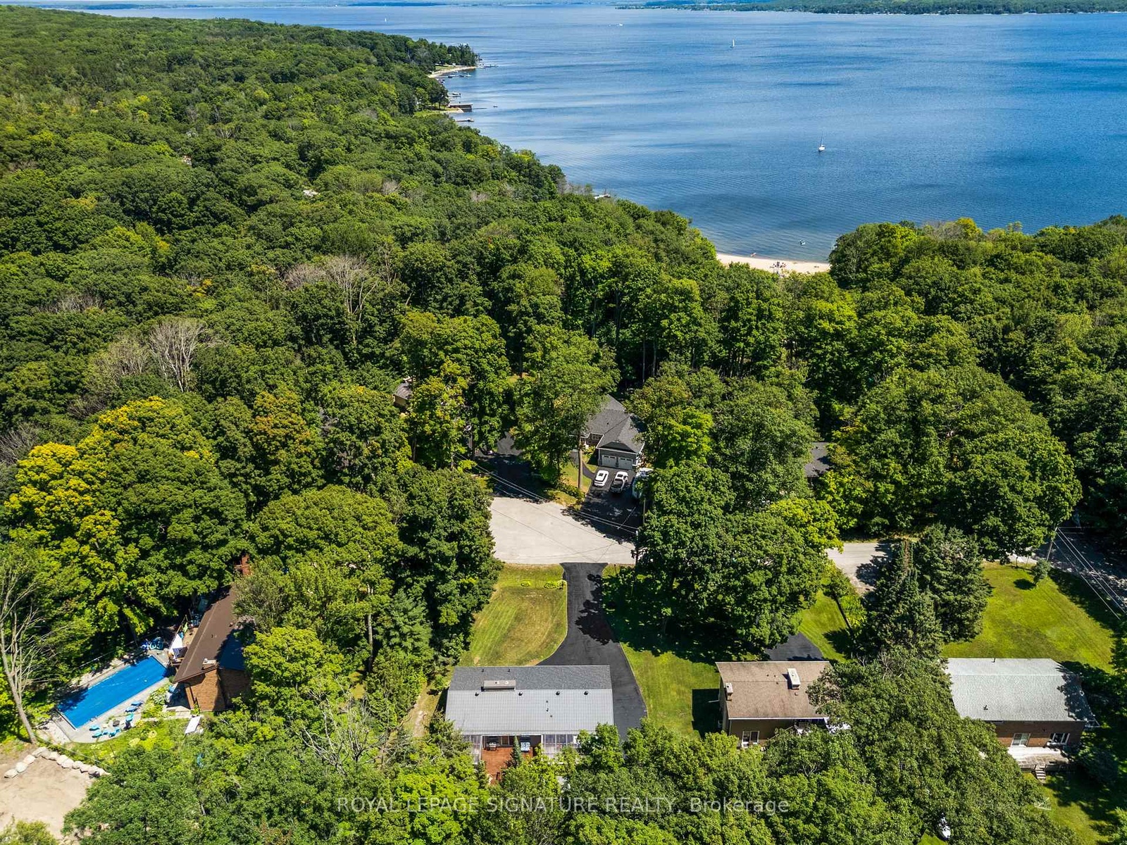 Experience the perfect blend of lifestyle, luxury, and location in this exceptional executive raised bungalow fully above grade with no basement tucked away on a quiet, tree-lined court in one of Midlands most desirable communities. Just steps to Georgian Bay and a beautiful sandy beach, this home offers four-season recreation from summer fun on the water to winter snowmobiling while being minutes to downtown, trendy restaurants, shopping, banks, and major retailers.A short stroll takes you to Midlands renowned paved trail system loved by cyclists, runners,and nature lovers connecting to downtown, Wye Marsh, and other key attractions. Enjoy seasonal water views, serenity, and no through traffic just the sound of birds and rustling trees.At the heart of the home is a stunning chefs kitchen featuring solid wood cabinetry with dovetail joinery, quartz countertops, soft-close drawers, under-cabinet lighting, dual sinks,and a jaw-dropping 10'11" island crafted from a single slab of quartz. The spacious living and dining area flows seamlessly to a large deck with two sunrooms. The primary suite offers a walk-in closet, ensuite bath, laundry and walkout to a sunroom complete with hot tub and infrared sauna. Two additional bedrooms and a full bath complete the main level.Step outside to a private oasis: an expansive upper deck, two enclosed gazebos, power awning,secluded firepit, greenhouse, and tiered landscaping.The heated and air-conditioned oversized garage with back workshop and two large sheds provide ample storage for boats, kayaks, ATVs, and more.A beautifully finished lower-level suite (2023) with a full kitchen, 4-pc bath, laundry, and separate entrance offers flexibility for guests, in-laws, or rental income. Ideal for a small business or live/work setup, this property offers versatile space in huge garage / lower level to seamlessly balance work and lifestyle. This is not just a home it is a lifestyle
