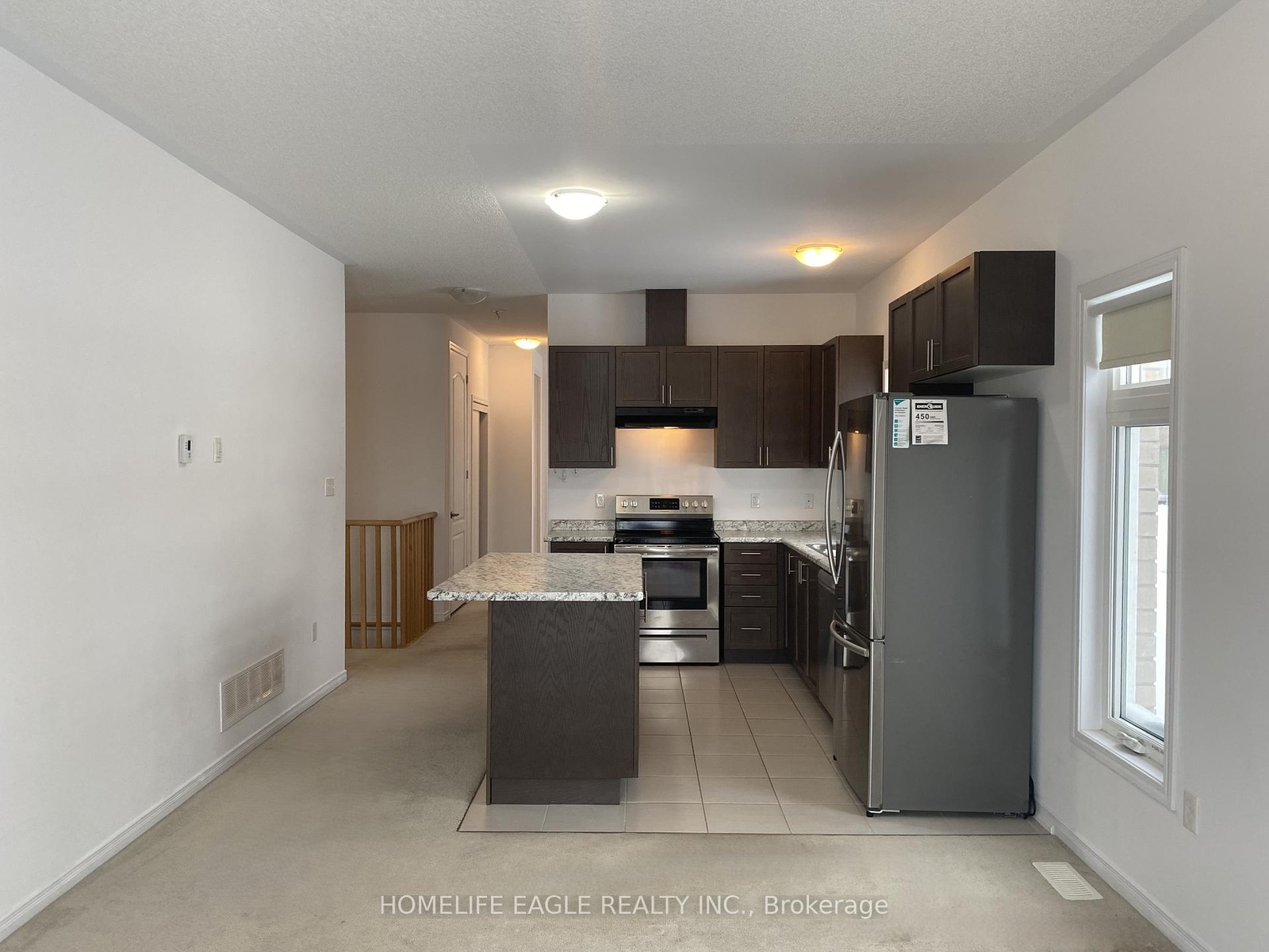 Lives like a detached home, this 5-year-old corner bungalow townhouse is attached only by the garage. Freshly painted, meticulously maintained, it offers 3 bedrooms and 2 full bathrooms. The spacious primary bedroom features an ensuite bathroom and a double-sized closet. The bright, lookout unfinished basement is exceptionally clean and inviting, with a large window ideal for a future recreation area and ample storage space. A walk-out from the family room leads to a generous deck equipped with a gas BBQ line. Additional features include central air conditioning, a remote garage door opener, and an underground sprinkler system with a rain sensor. The oversized garage accommodates a full-size truck and offers direct access to the home. The driveway has no sidewalk and comfortably fits two vehicles, providing a total of three parking spaces.