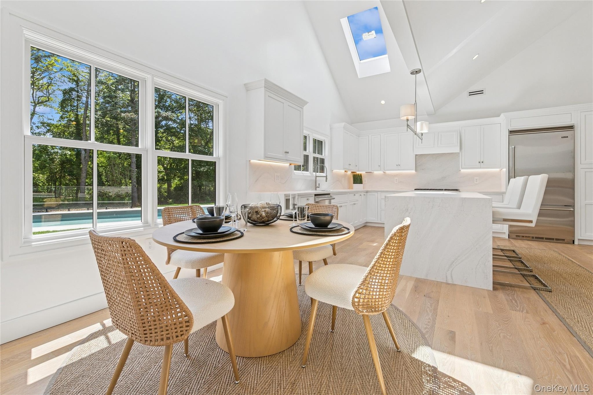 16 Walker Court, East Quogue, Luxury Waterfront Living Meets Modern Design!!! Welcome to 16 Walker Court, where modern elegance meets coastal tranquility. This waterfront masterpiece offers private access to Dave’s Creek leading to Shinnecock Bay! Ideally located South of Montauk Highway, A true Hamptons gem that feels special from the moment you arrive!!! Step through the striking Pivot Door and discover a sun-filled, open-concept design by Sand Dollar Development, crafted for effortless entertaining and relaxed everyday living. Every detail has been thoughtfully curated, from the Cambria quartz waterfall countertops (with a lifetime warranty) to the top-of-the-line Viking appliances that elevate the gourmet kitchen. Enjoy peaceful views from the eat-in breakfast area, perfectly positioned to overlook the glass-enclosed, heated saltwater pool, ideal for watching summer afternoons unfold. This energy-efficient, green-built home offers sustainability without compromise, featuring high-performance windows, superior insulation, and advanced HVAC systems for year-round comfort and savings. The DaVinci fireplace adds a touch of warmth and luxury, creating a perfect balance of sophistication and coziness throughout the open living spaces. With three seamless walkouts to the backyard, this home was designed for the ultimate indoor-outdoor Hamptons lifestyle. Host summer barbecues by the pool, enjoy sunset dinners with breathtaking creek views, or unwind under the stars in your private sanctuary. The outdoor shower and direct waterfront access complete this resort-style retreat.