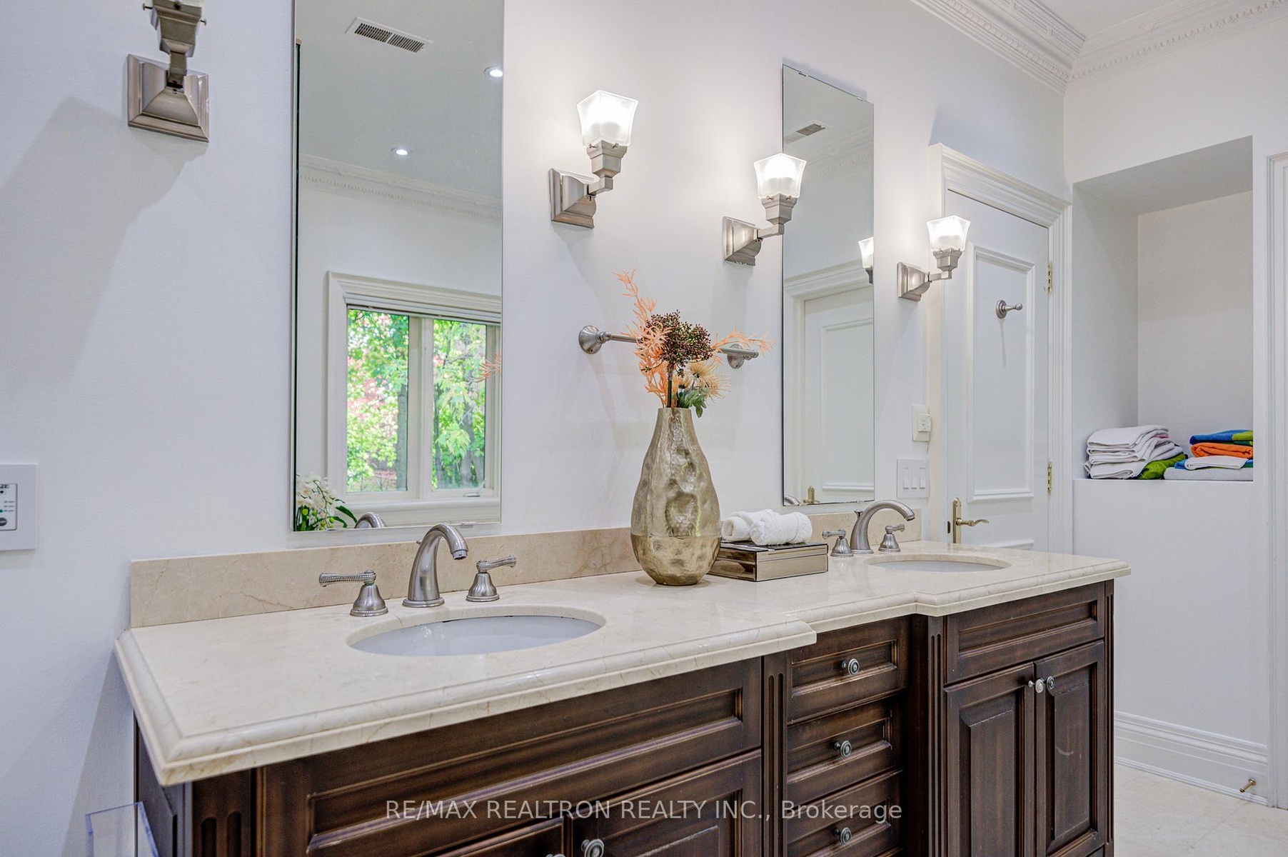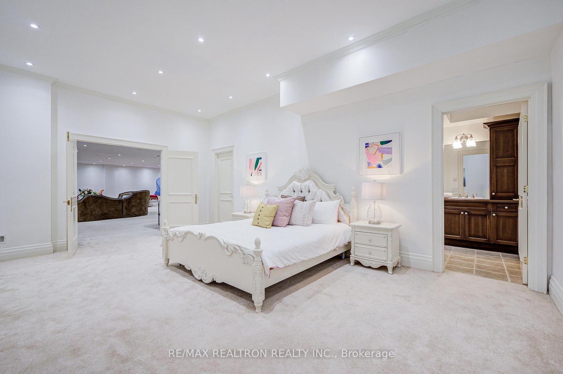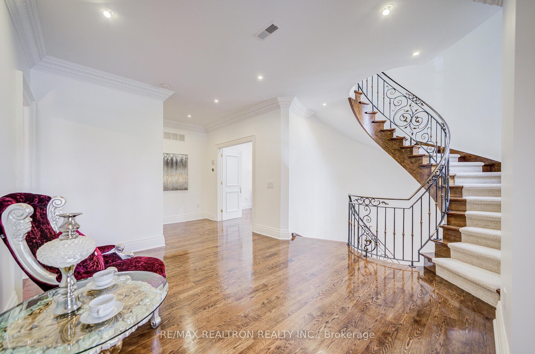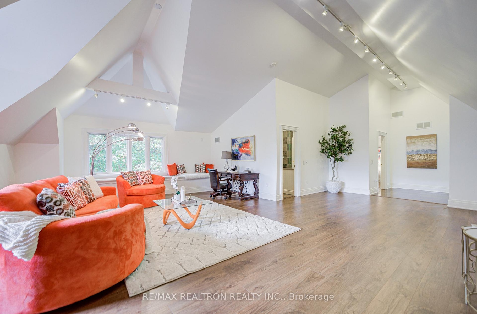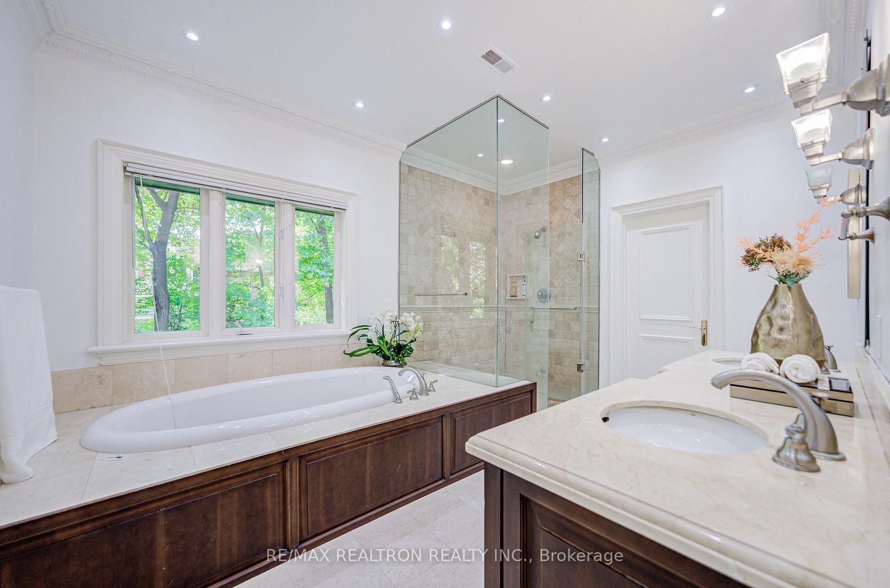 This spectacular, custom-crafted, architecturally designed 23-year-new residence is nestled on a quiet cul-de-sac in the prestigious St. Andrew-Windfields family-friendly neighborhood. Situated on a 270 ft wide private treed lot (15,750 sqft) with park-like yards, it offers over 6,500 square feet of luxurious living space, including a 1,670 sqft separate-entrance basement.This home features a striking four sides stone exterior and soaring ceilings. A circular iron staircase anchors the elegant interior, where every bedroom includes its own ensuite bathroom. The spacious primary suite offers a large sitting area and a 6-piece ensuite, while the second-floor laundry room adds daily convenience.The unique third-floor loft showcases a vaulted ceiling, open-concept office, bedroom with 4-piece semi-ensuite, and a huge home entertainment area, adding architectural flair. The open-concept lower level, with a separate entrance, includes a nanny room with 4-piece ensuite, an extra powder room, and plenty of storage-providing the perfect setting for family gatherings and entertainment.The circular driveway enhances curb appeal and provides ample parking. The home is impeccably maintained and in immaculate condition, features two central air conditioners (2014), two newer furnaces, three sump pumps, a double weeping tile system, and an HRV. This one-of-a-kind home is ideally located close to highways, parks, and top private schools, and within walking distance to top-ranking Owen PS and York Mills CI-offering the perfect blend of sophistication, comfort, and convenience.