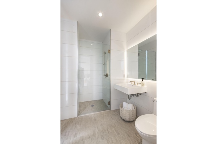 Floor to ceiling windows, stainless steel appliances and a sleek look completed by imported custom cabinetry and white Corian countertops, the kitchen is only outdone by the elegant bathrooms with fully tiled showers, full medicine cabinets, backlit mirrors and more. Each meticulously designed home has wide plank flooring, nine foot ceilings, and in unit washer/dryer.