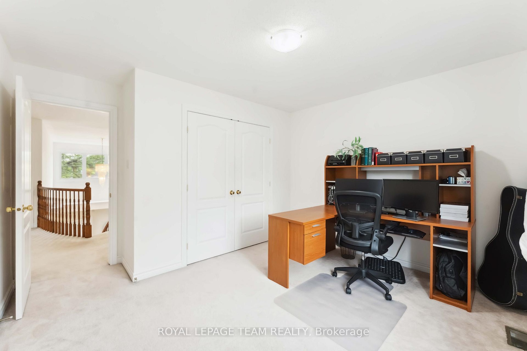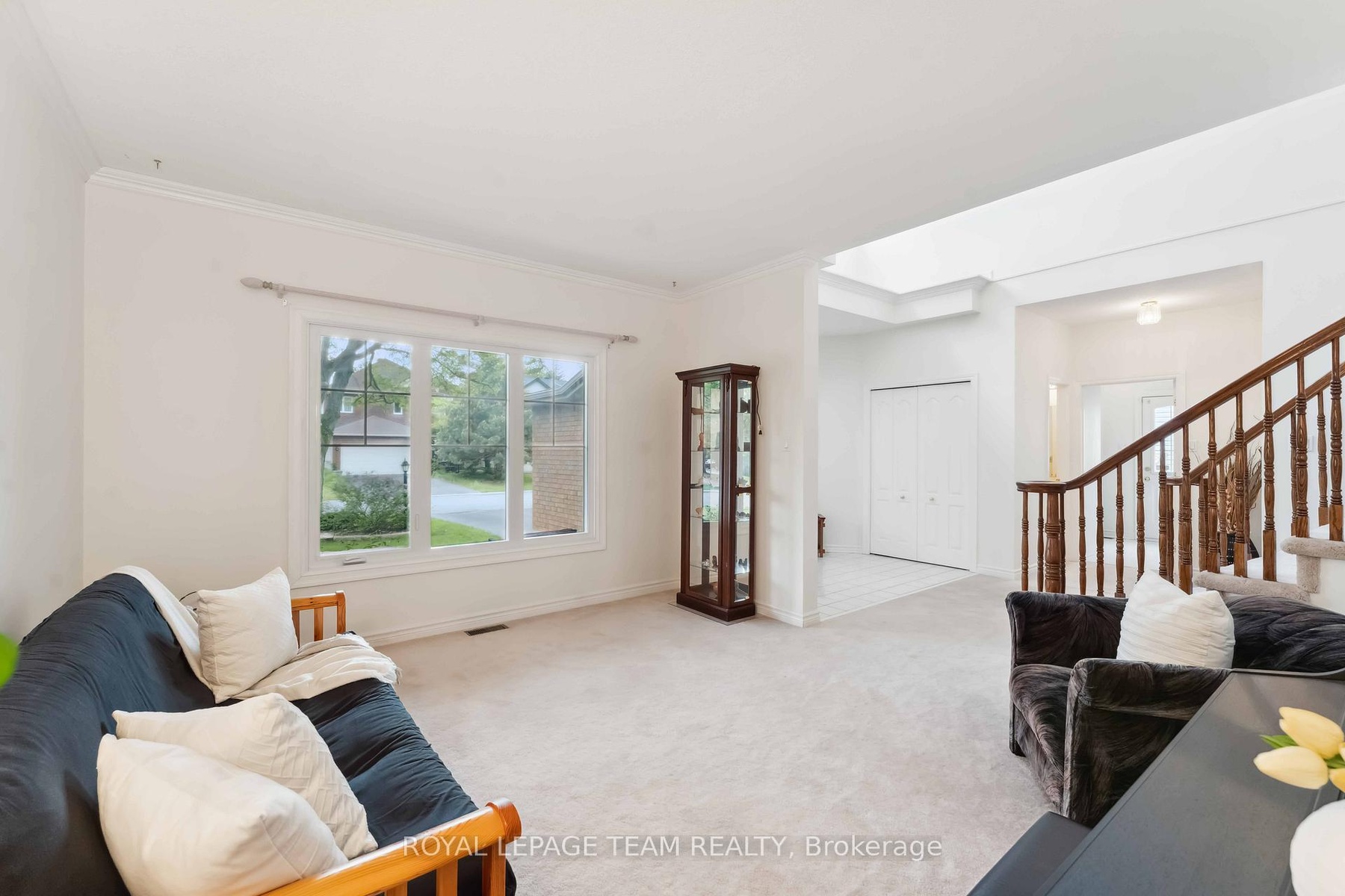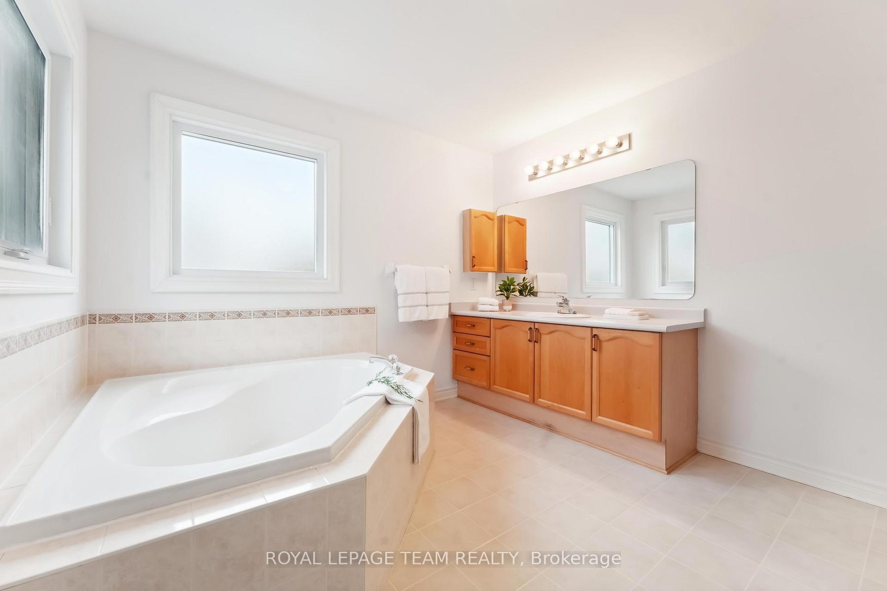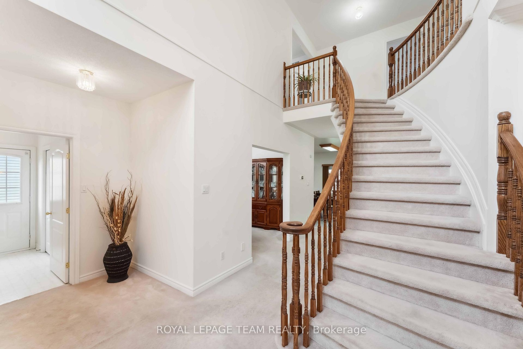 Welcome to this stunning 6 bedroom, 4-bathroom and a office room in ground floor, home with over 4,000 sq ft of living space and 9 ft ceilings, located in the desirable Barrhaven East neighbourhood. Step into a dramatic two-story foyer with natural light from oversized windows, this grand entryway features soaring 18 ft ceilings, elegant lighting, and a winding staircase. The modern kitchen offers new quartz counter tops, a breakfast nook, and new flooring that blends style with durability. A separate living and dining room in the front and a formal family room at the back connects to the kitchen, which includes ample storage, shelving, and an eating area. The family room features a cozy gas fireplace and opens to a spacious covered deck perfect for entertaining.The main floor also includes a powder room, laundry, and a versatile room ideal as a bedroom, study, or office space.Upstairs, the spacious primary bedroom includes a walk-in closet and a luxurious 4-piece en-suite with a freestanding tub, glass walk-in shower, and stylish vanity. Three more bedrooms and a main 3-piece bathroom complete the second level.The fully finished basement offers a large family room, a generous bedroom, an additional flex room perfect for a home gym, office, or playroom, and a dedicated home theatre. Furnace (2018), A/C (2018), Roof (2015), Windows(2020), Dryer (2020), Washer (2020), Gas Stove. Spacious deck with roof. Gas connections available for dryer and BBQ. Home theatre setup (Screen, Speakers, Projector and receiver) includes in sale. The house has been under the same ownership since beginning. This family-friendly community features top-rated schools, a sports complex, trails, parks, transit(Bus stop number #1119 is at a very short distance through the park), and all essentials within walking distance. As per form 244 No conveyance of offers until 04 November, Tuesday at 5 PM. Seller reserves the right to accept preemptive offers. Open houses 2-4 on Sat and Sun.