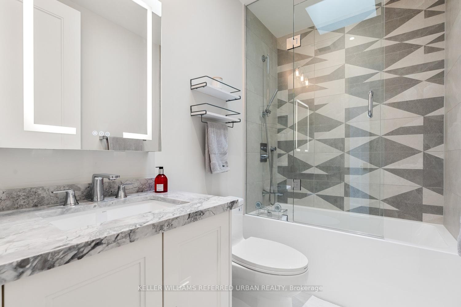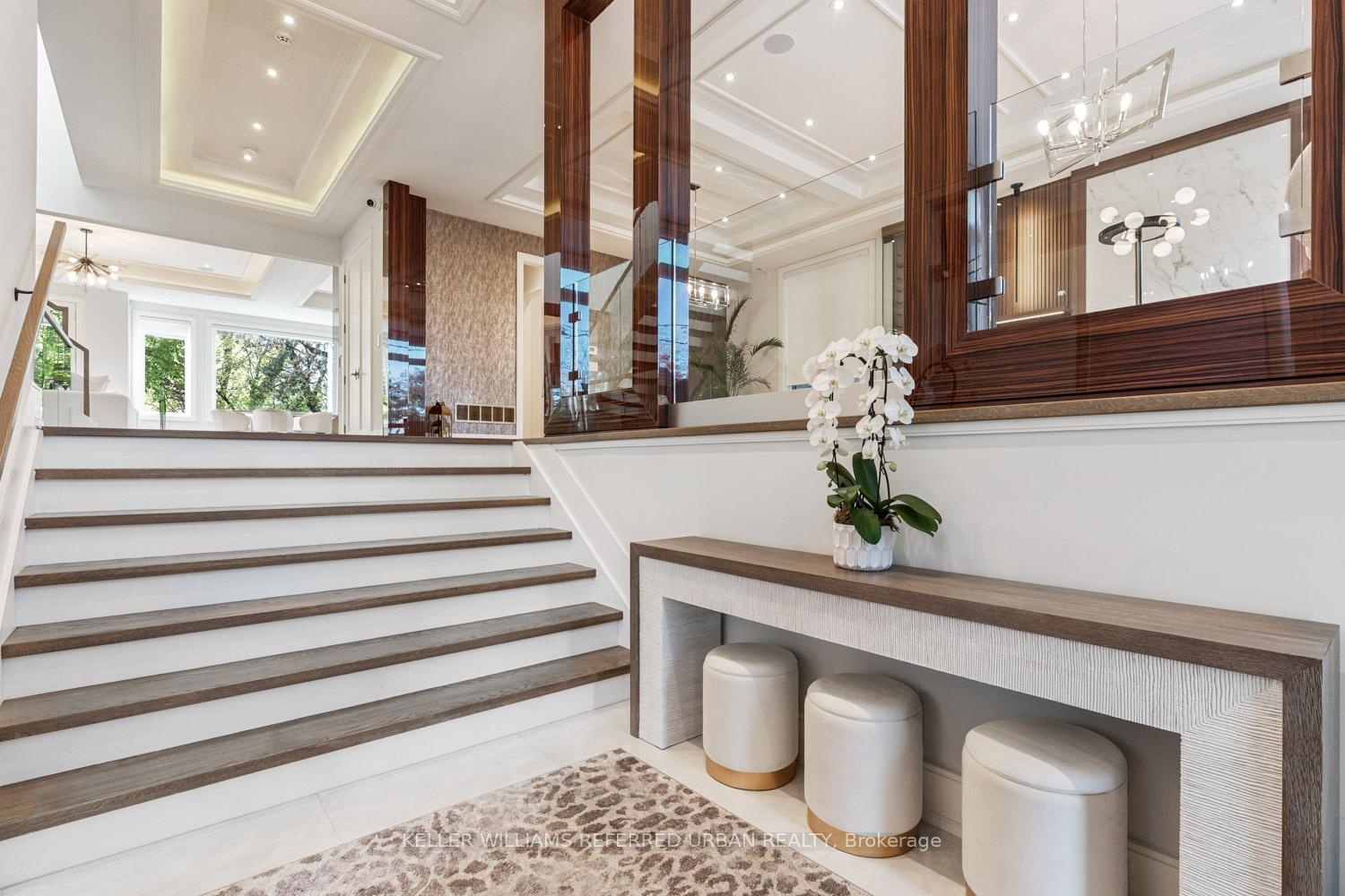 This stone and brick residence built in 2020 has been recently re-imagined and renovated to the highest standards with exceptional attention to detail. Offering nearly 5,600 sq. ft. of luxury finished space on all levels, this home features brand-new designer bathrooms, a custom kitchen, built-in cabinetry, a showcase wine wall, and Control 4 home automation including motorized blinds and heated basement floors. All bedrooms include ensuite baths, and the home's soaring from 10 to 12 ft ceilings, detailed millwork, and elegant lighting create a refined and welcoming atmosphere. Exterior highlights include extensive landscaping with an irrigation system, a new interlock driveway with automatic security bollards, and a double-car garage. With walking distance to schools, shopping and transit the location is fantastic.
