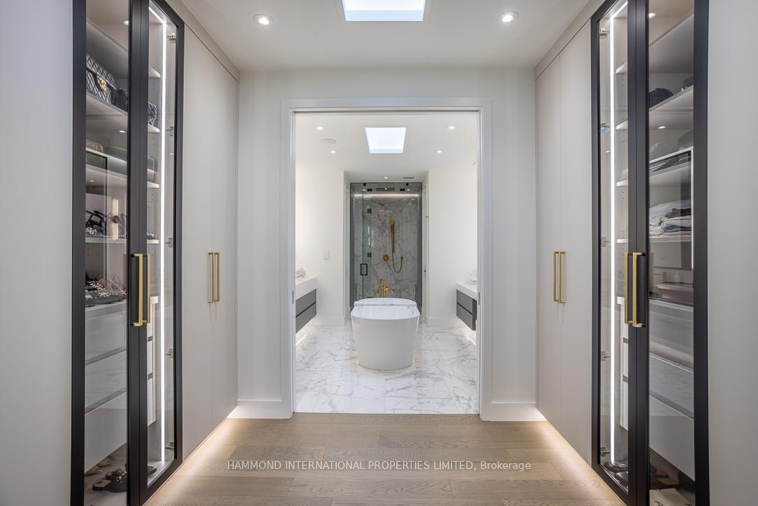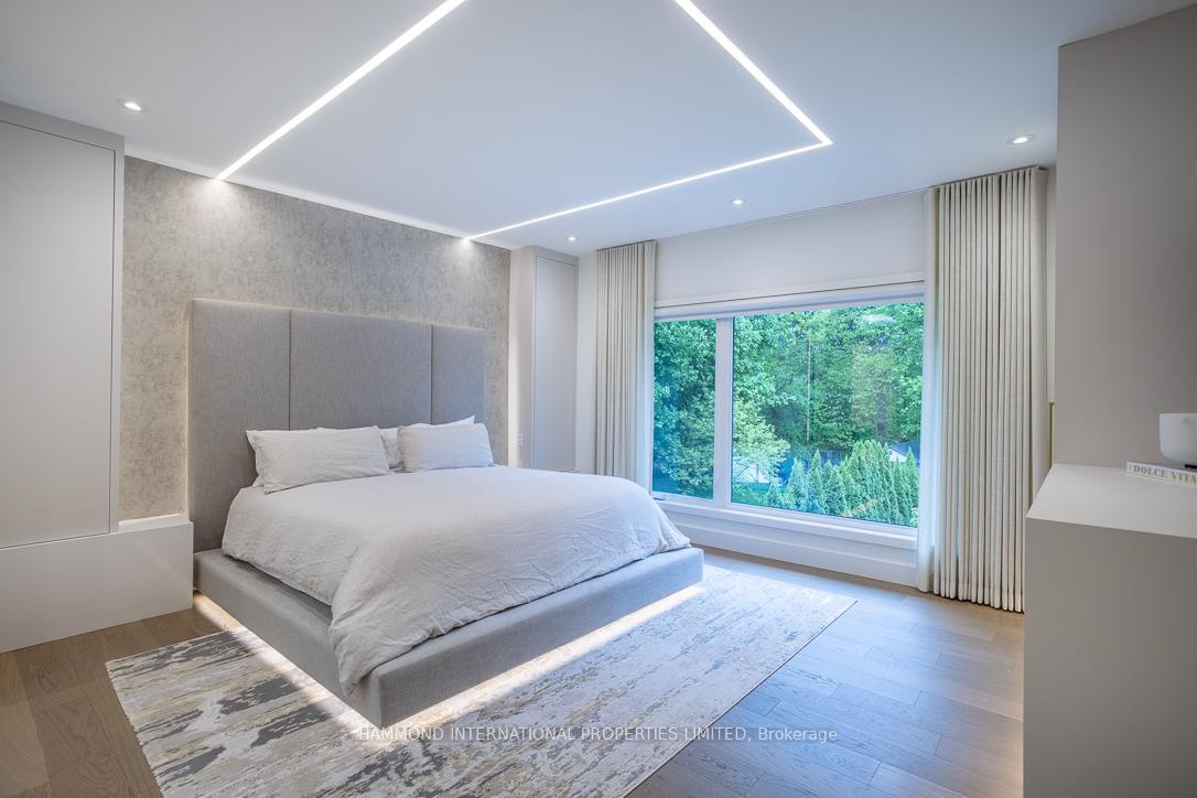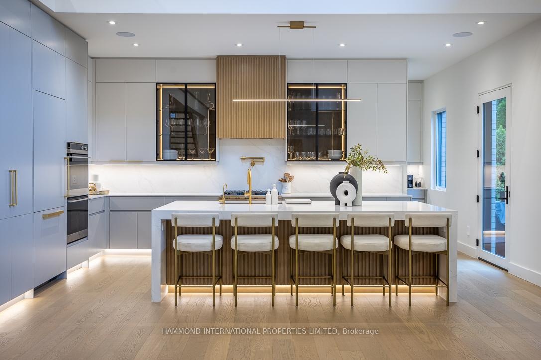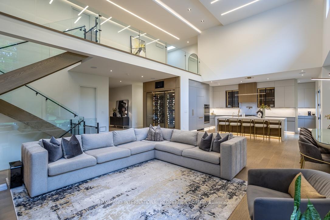 Welcome to 14 Penhale Drive A Modern Masterpiece in the Heart of Etobicoke. Experience architectural brilliance and luxurious living in this newly built custom home, set on an exceptional SOUTH FACING 68 x 268 RAVINE LOT in one of Etobicoke's most desirable family neighborhoods. Every inch of this residence reflects thoughtful design, premium craftsmanship, and effortless style. A bold 20-foot ceiling in the family room creates an awe-inspiring first impression, enhanced by a full wall of windows and a 16-foot sliding door that opens to a covered loggia perfect for seamless indoor-outdoor living and entertaining. Sunlight streams throughout the main level, highlighting the open-concept layout and sleek modern lines. At the heart of the home, a glass-enclosed, temperature-controlled 200-bottle wine display offers a stunning focal point that combines visual drama with function. The chefs kitchen, custom-designed by Napa Valley Kitchens, is a showstopper featuring a bookmatched stone backsplash, Caesarstone countertops, high-end integrated appliances, and a separate service kitchen for effortless hosting. Upstairs, four spacious suites each include bath/washroom access, offering comfort and privacy for every family member. The lower level is designed for recreation and relaxation, with a home theatre, gym, wet bar/kitchen, lounge area, and an additional bedroom for guests or extended family. No detail has been overlooked from custom millwork and high-end finishes to full smart home automation and a 2-car garage.14 Penhale Drive is a rare opportunity to own a truly exceptional modern home in a warm, established community known for top schools, lush parks, and everyday convenience.