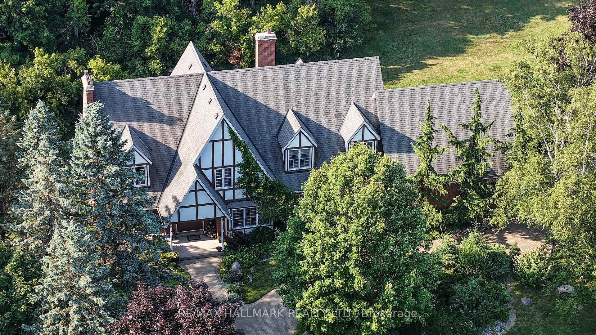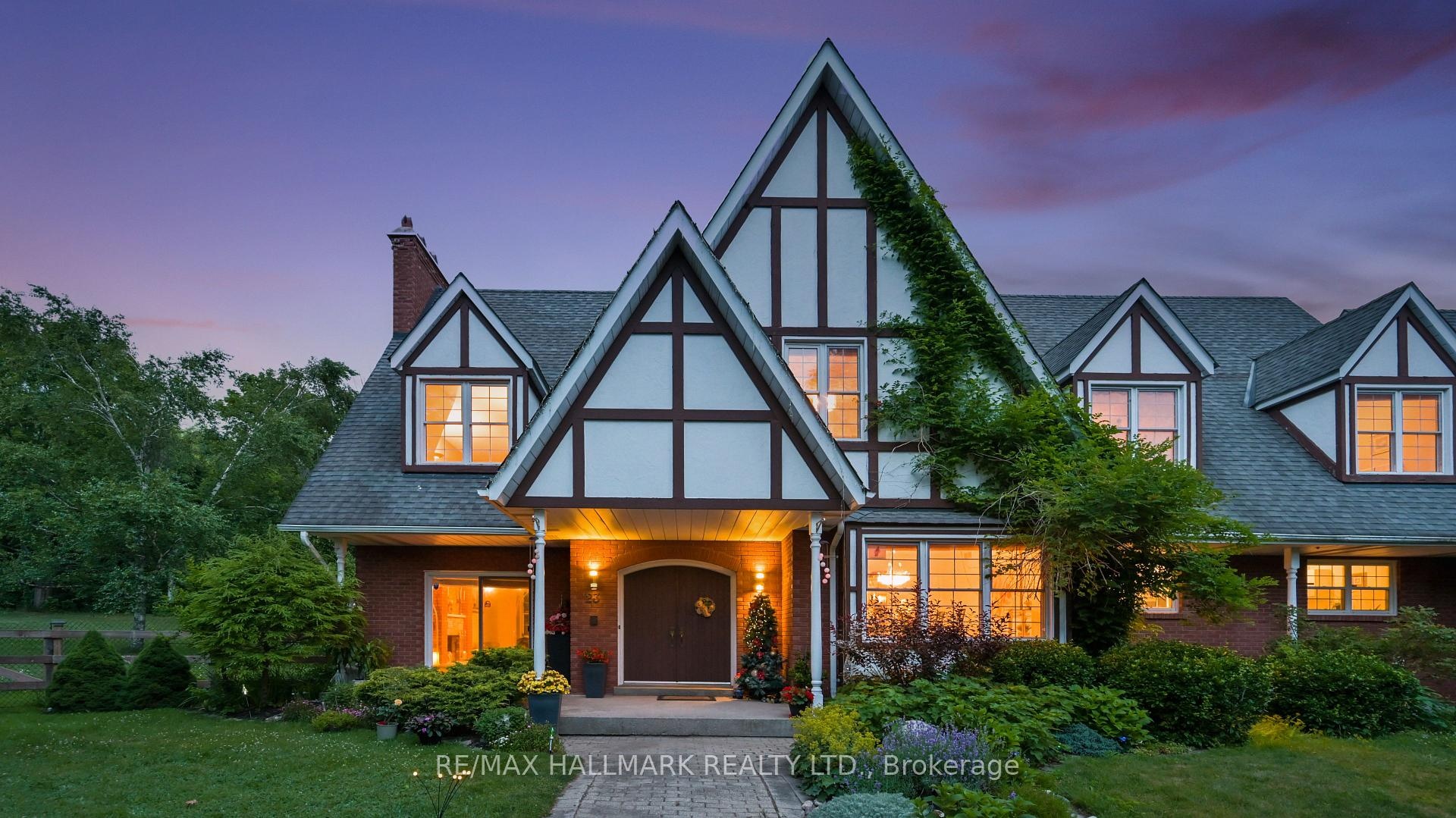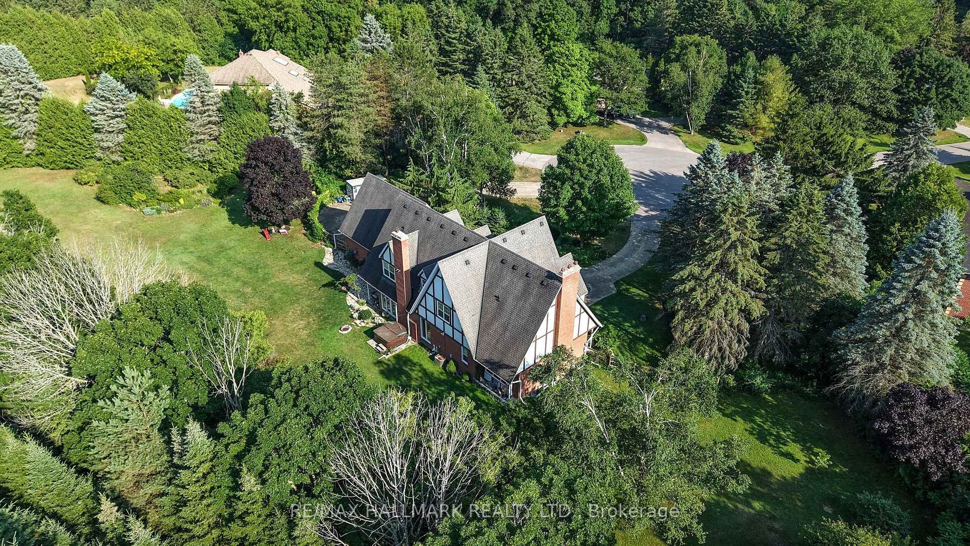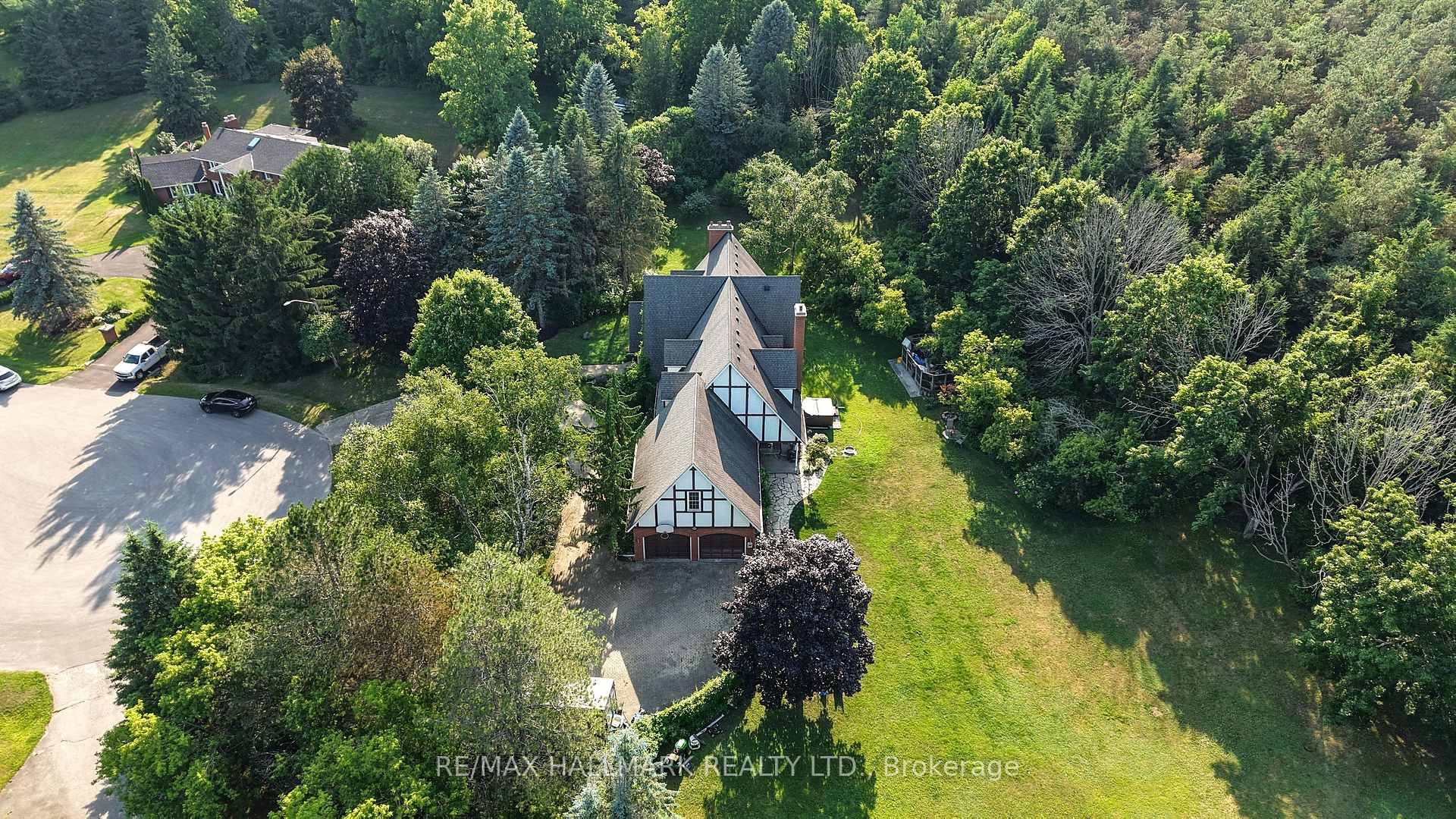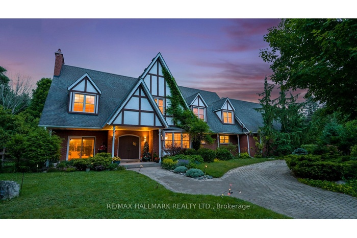 The Best of Both Worlds Serene Country Living Just Minutes from the City. This immaculate Tudor-style estate sits on a fully fenced 1.46-acre pie-shaped lot backing onto protected evergreens offering complete privacy, picturesque forest views, and over 6,200 sq ft of beautifully finished living space (3,936 sq ft above grade + 2,200 sq ft lower level) * Tucked away on a quiet cul-de-sac along prestigious Forfardale Road, and surrounded by multi-million dollar estates, this architectural masterpiece showcases timeless curb appeal, an elegant facade, and mature landscaping *The interlock circular driveway and expansive flower beds create an unforgettable first impression *Inside, gleaming hardwood floors throughout *Spacious formal living room with fireplace, separate dining room, and a spectacular great room with walk-out access and a custom wet bar make this home an entertainers dream *2 staircases total, one is a Custom spiral private staircase, the layout leads to a truly luxurious primary suite upstairs complete with vaulted and beamed ceilings and a cozy sitting lounge retreat *the finished basement making it ideal for an in-law suite, home office, gym, or teenagers private space *Located in a prestigious estate enclave walk to scenic Musselman's Lake & Ballantrae, Stouffville amenities, minutes drive to Hwy 404 & 48, Old Elm Go Station, 60 minutes to Toronto!