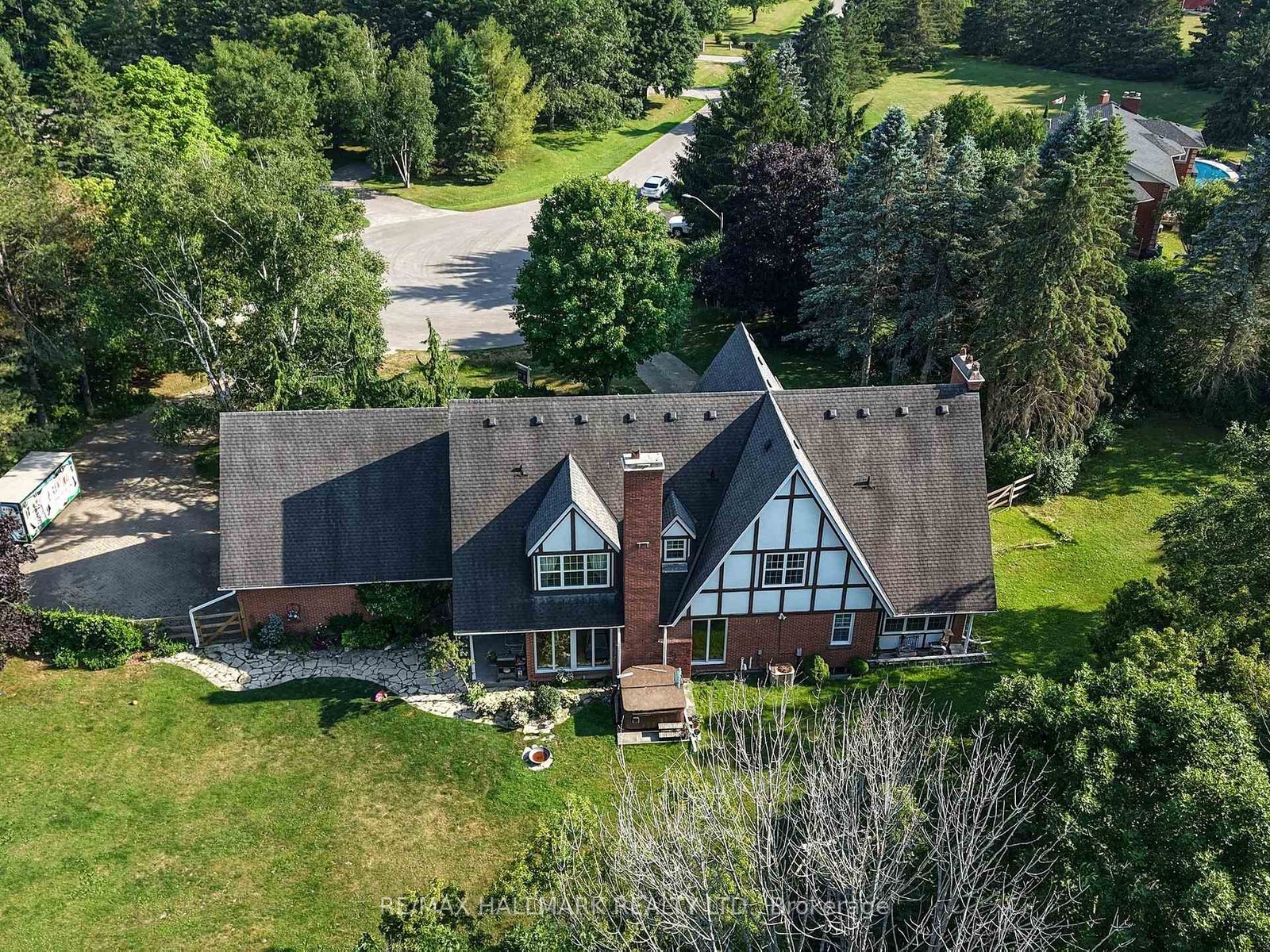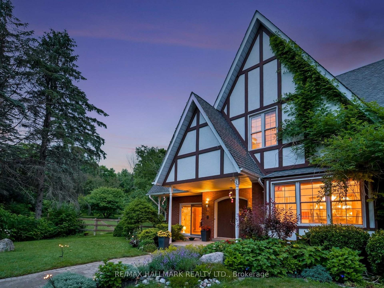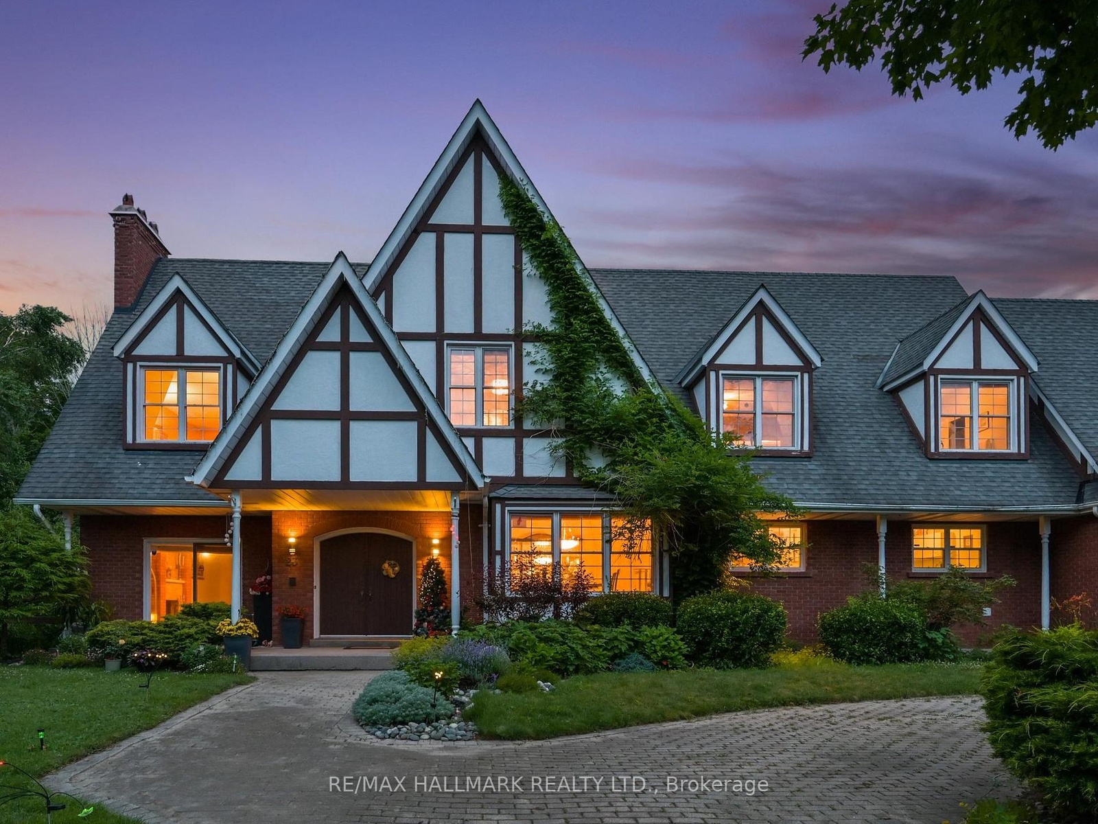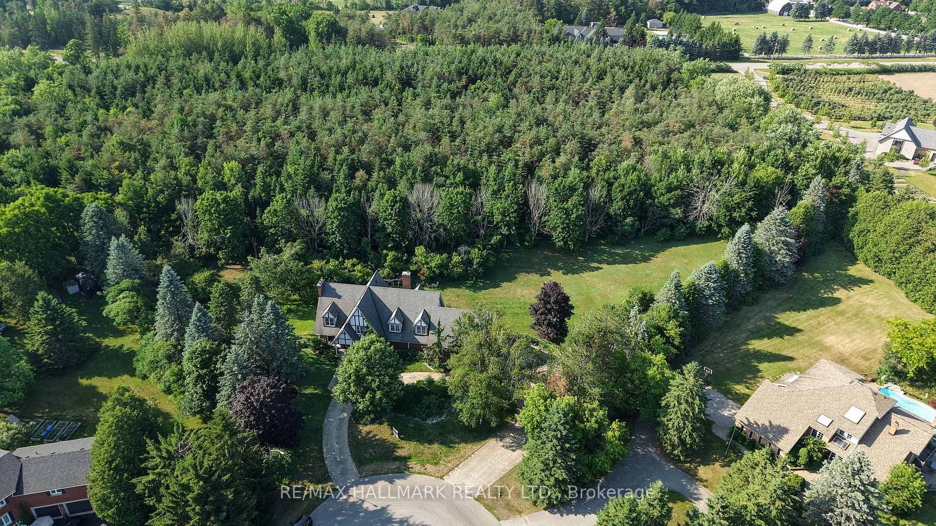 The Best of Both Worlds Serene Country Living Just Minutes from the City. This immaculate Tudor-style estate sits on a fully fenced 1.46-acre pie-shaped lot backing onto protected evergreens offering complete privacy, picturesque forest views, and over 6,200 sq ft of beautifully finished living space (3,936 sq ft above grade + 2,200 sq ft lower level) * Tucked away on a quiet cul-de-sac along prestigious Forfardale Road, and surrounded by multi-million dollar estates, this architectural masterpiece showcases timeless curb appeal, an elegant facade, and mature landscaping *The interlock circular driveway and expansive flower beds create an unforgettable first impression *Inside, gleaming hardwood floors throughout *Spacious formal living room with fireplace, separate dining room, and a spectacular great room with walk-out access and a custom wet bar make this home an entertainers dream *2 staircases total, one is a Custom spiral private staircase, the layout leads to a truly luxurious primary suite upstairs complete with vaulted and beamed ceilings and a cozy sitting lounge retreat *the finished basement making it ideal for an in-law suite, home office, gym, or teenagers private space *Located in a prestigious estate enclave walk to scenic Musselman's Lake & Ballantrae, Stouffville amenities, minutes drive to Hwy 404 & 48, Old Elm Go Station, 60 minutes to Toronto!