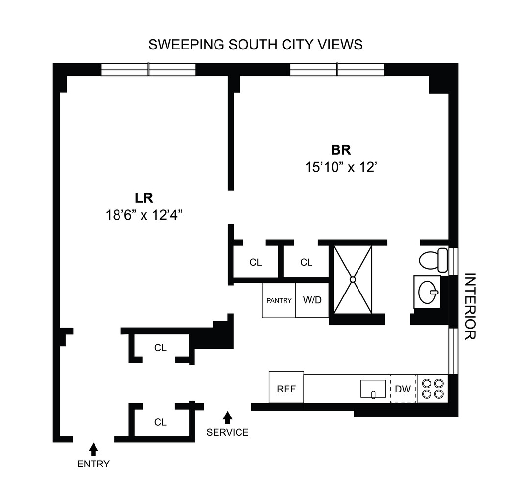 This newly renovated, mint-condition one-bedroom has sweeping south city views from both the elegant living room and spacious bedroom.