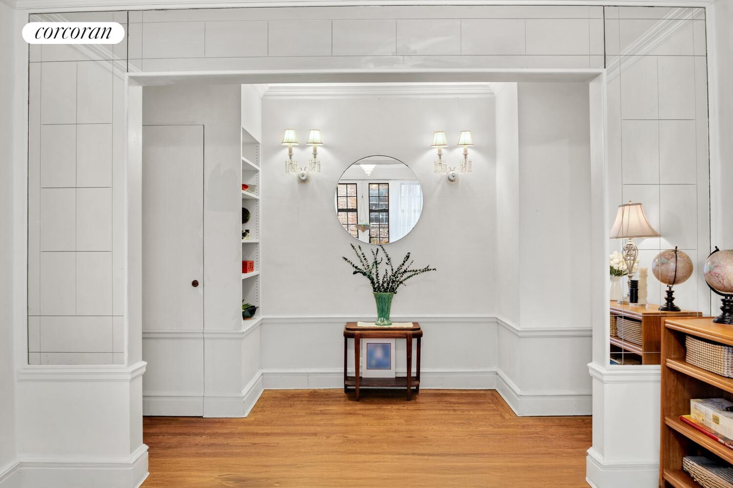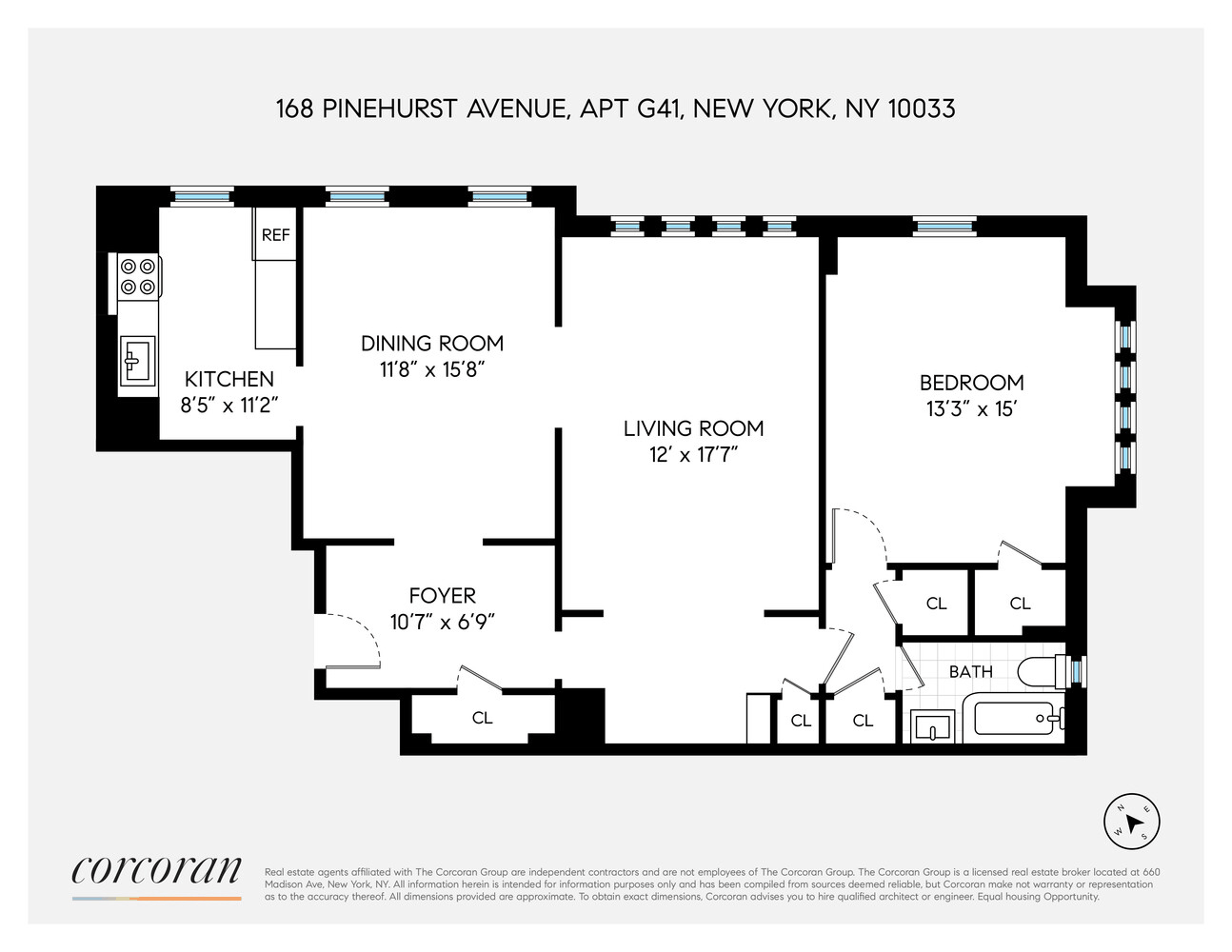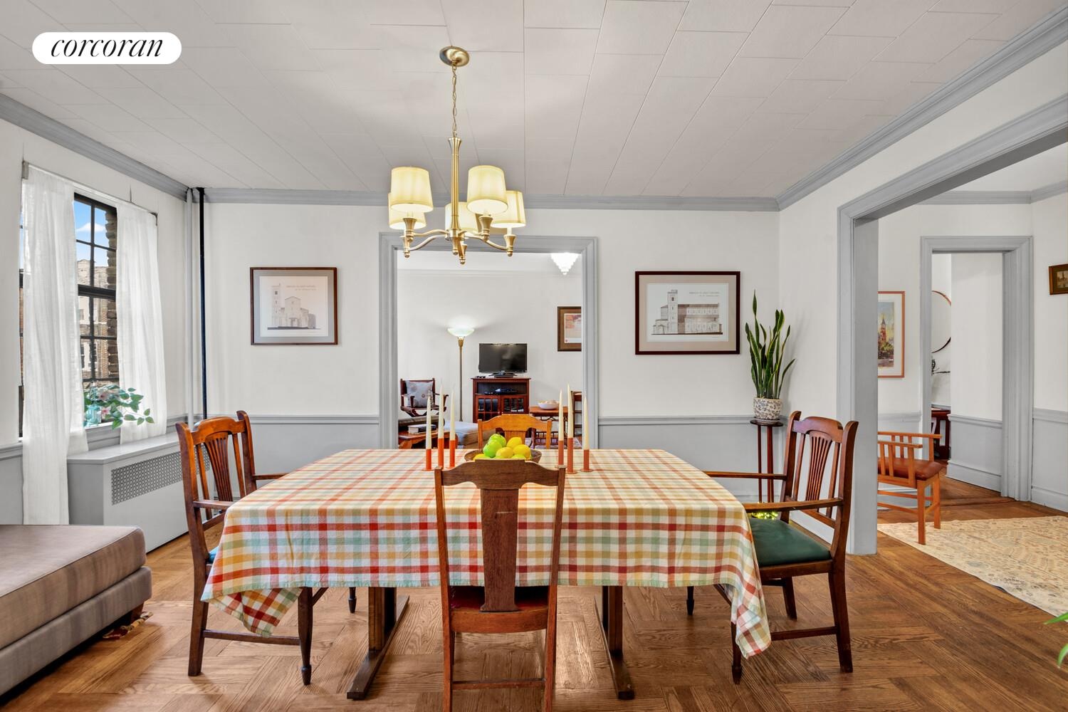 Utterly charming classic home with a flexible floorplan.   Apartment G41 is a gracious and bright 4-room apartment located in Hudson View Gardens. Currently configured as a 4-room home with a living room, a formal dining room, a separate windowed kitchen, generously sized bedroom, and bath, this is the home with that extra room you have been waiting for. The floorplan of this gem of an apartment allows for an easy conversion to a two -bedroom home. Upon entering the elegant foyer, you are ushered into another time with a spacious dining room that flows into the open living room, creating an expansive and cheerful living space. The spacious windowed kitchen with Corian counters is furnished with a stove, fridge, and ample cabinets for storage. The large corner bedroom has double exposures ensuring great light throughout the day. The original bathroom has been updated. There are 5 large closets to keep you organized. Located on a tree-lined street in Hudson Heights, the apartment faces East and North with lovely light all day.  $1,787.40 maintenance/month that includes gas and electric. There is an on-going capital assessment of $313.10/month. The apartment is located in an elevatored building but also has stairs to the lobby.