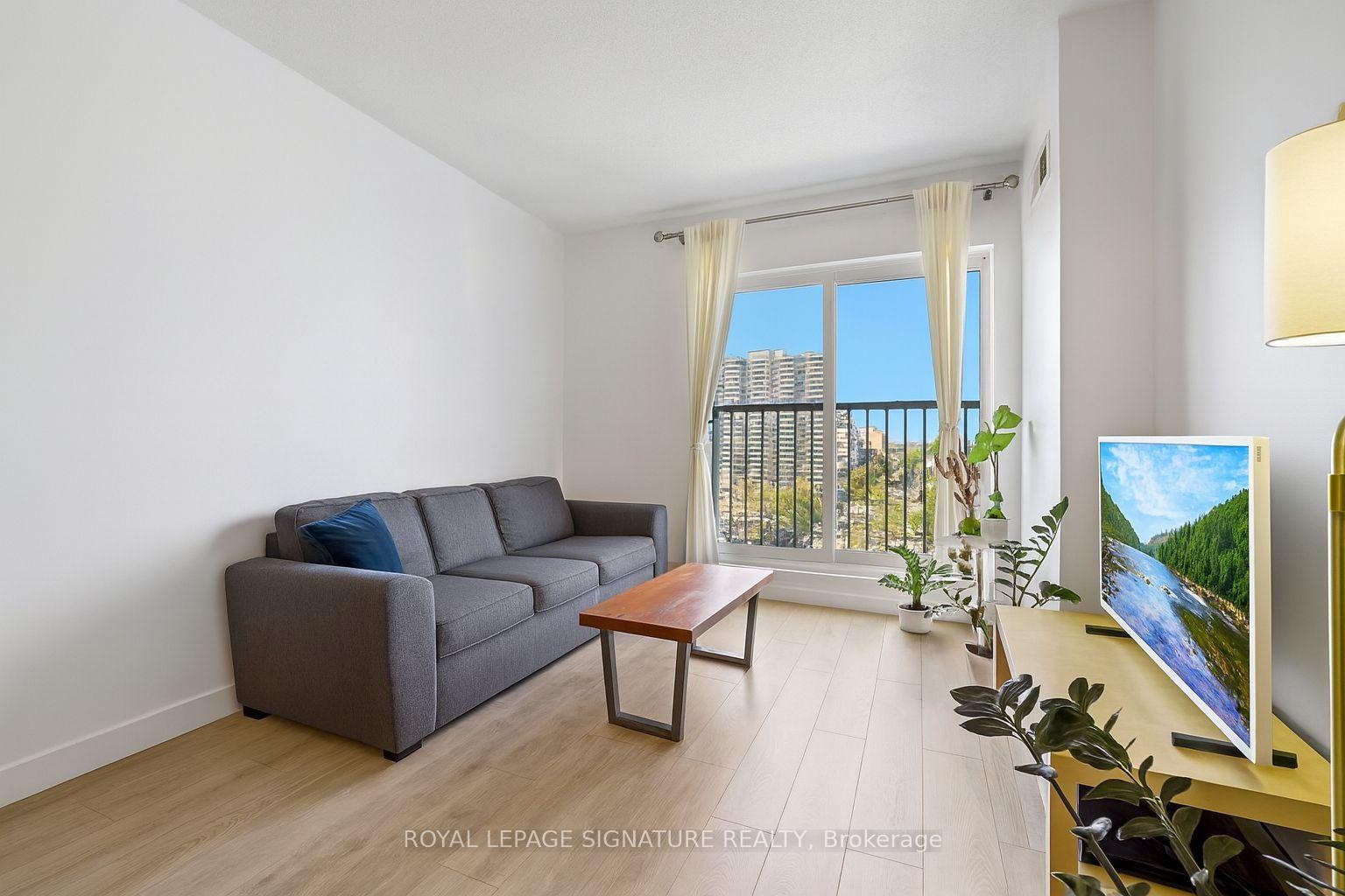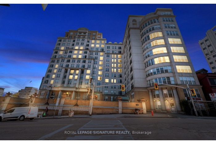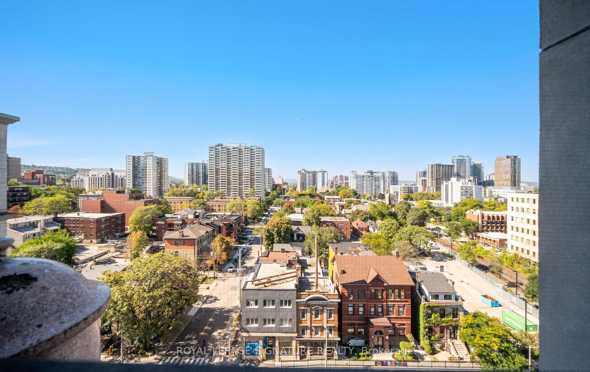 Spacious, sunfilled and spotless 1-bedroom, 1-bathoom condo, fully update, in the Chateau Royal. With nine-fool ceilings, newer flooring throughout, with neutral palette, the suite is open and inviting. The kitchen features stainless steel appliances (2022), and the bathroom has been completed refreshed in a modern style. Additional highlights include in-suite laundry, a large walk-in closet in the bedroom, a generous front closet and central heating and A/C. Its west exposure provides abundant natural light, with large windows showcasing cityviews, sunset vistas and a Juliette balcony. Ideally located next to the Hamilton GO Stationa nd minutes from Highway 403, this home offers exceptional convenience. Enjoy nearly cafes,restaurants, and the charm if Durand's historic streets, with St. Joseph's Hospital and scenic escarpment trails close by. Outstanding amenities include 24-hour concierge and security, a fitness centre with sauna, rooftop terrace, landscaped courtyard with barbecue area, and a party room with pool table. A storage locker is included, and public parking is available nearby.