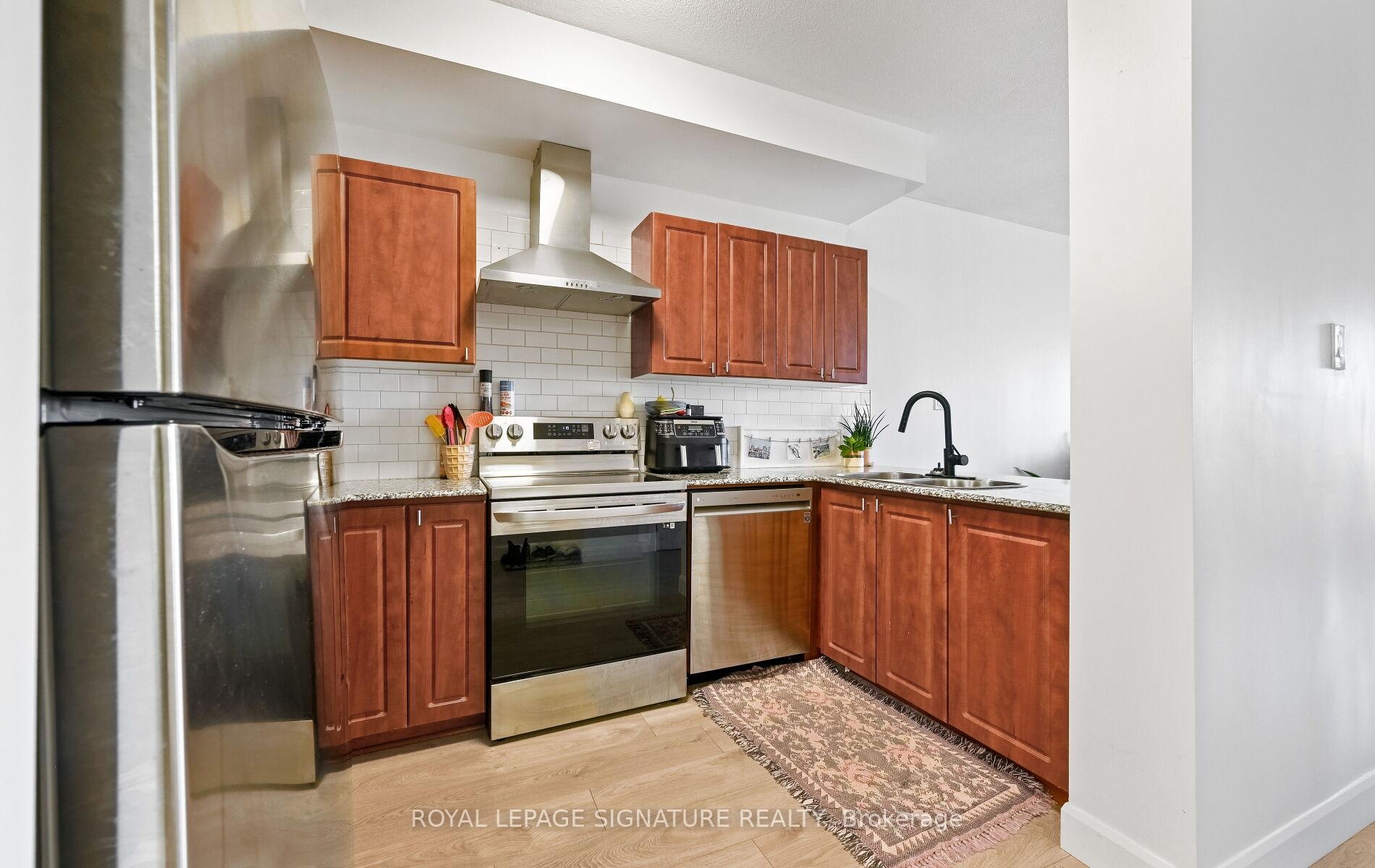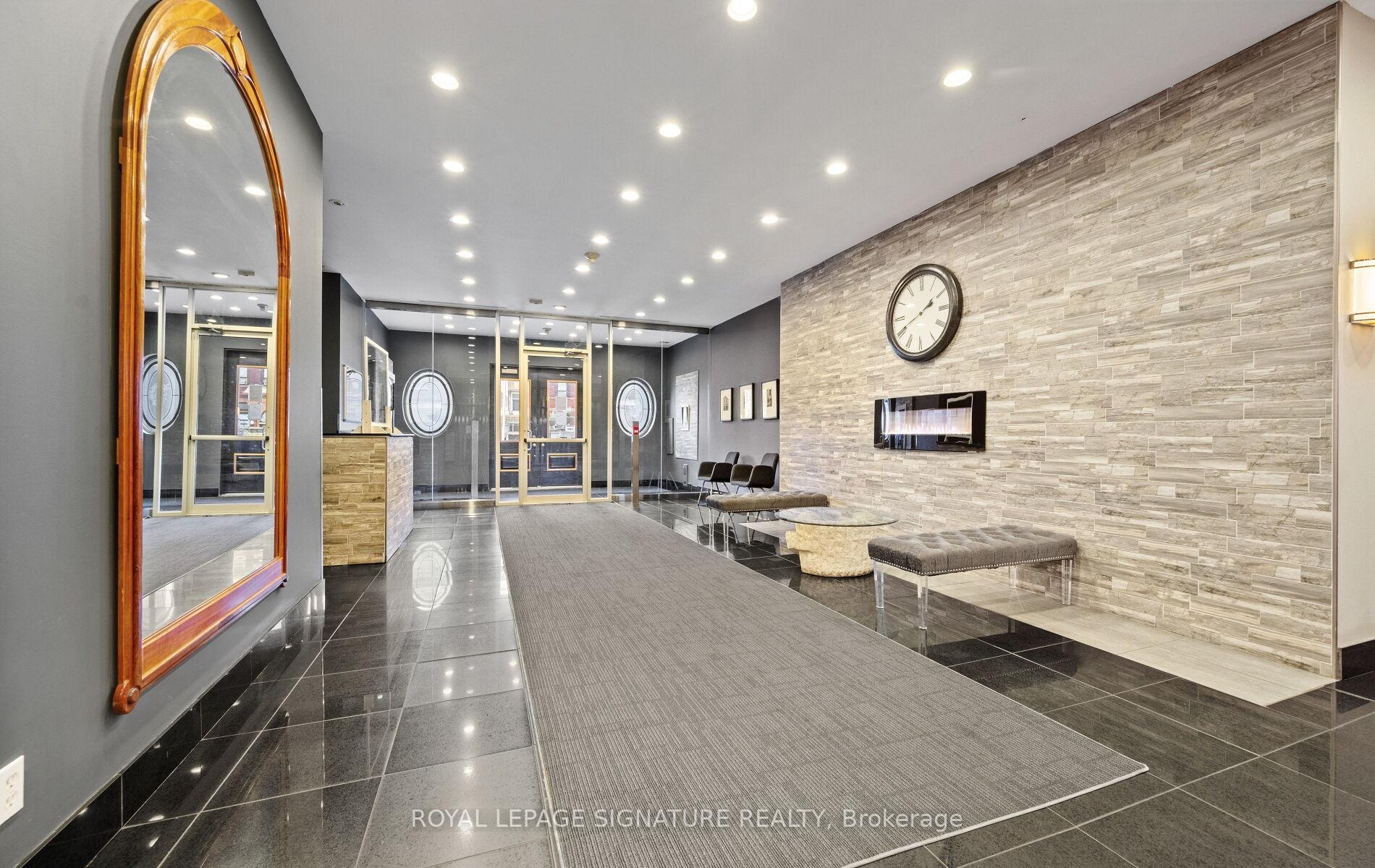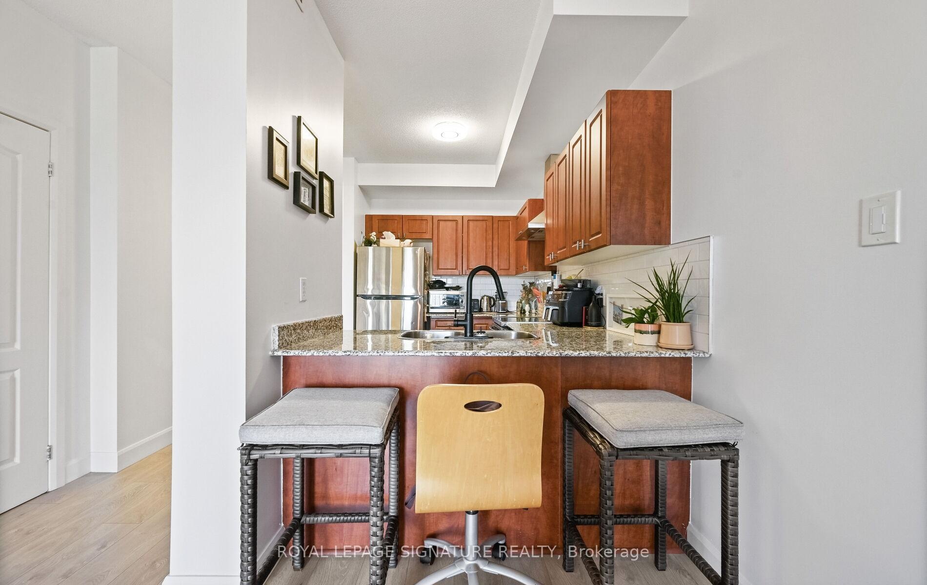 Spacious, sunfilled and spotless 1-bedroom, 1-bathoom condo, fully update, in the Chateau Royal. With nine-fool ceilings, newer flooring throughout, with neutral palette, the suite is open and inviting. The kitchen features stainless steel appliances (2022), and the bathroom has been completed refreshed in a modern style. Additional highlights include in-suite laundry, a large walk-in closet in the bedroom, a generous front closet and central heating and A/C. Its west exposure provides abundant natural light, with large windows showcasing cityviews, sunset vistas and a Juliette balcony. Ideally located next to the Hamilton GO Stationa nd minutes from Highway 403, this home offers exceptional convenience. Enjoy nearly cafes,restaurants, and the charm if Durand's historic streets, with St. Joseph's Hospital and scenic escarpment trails close by. Outstanding amenities include 24-hour concierge and security, a fitness centre with sauna, rooftop terrace, landscaped courtyard with barbecue area, and a party room with pool table. A storage locker is included, and public parking is available nearby.