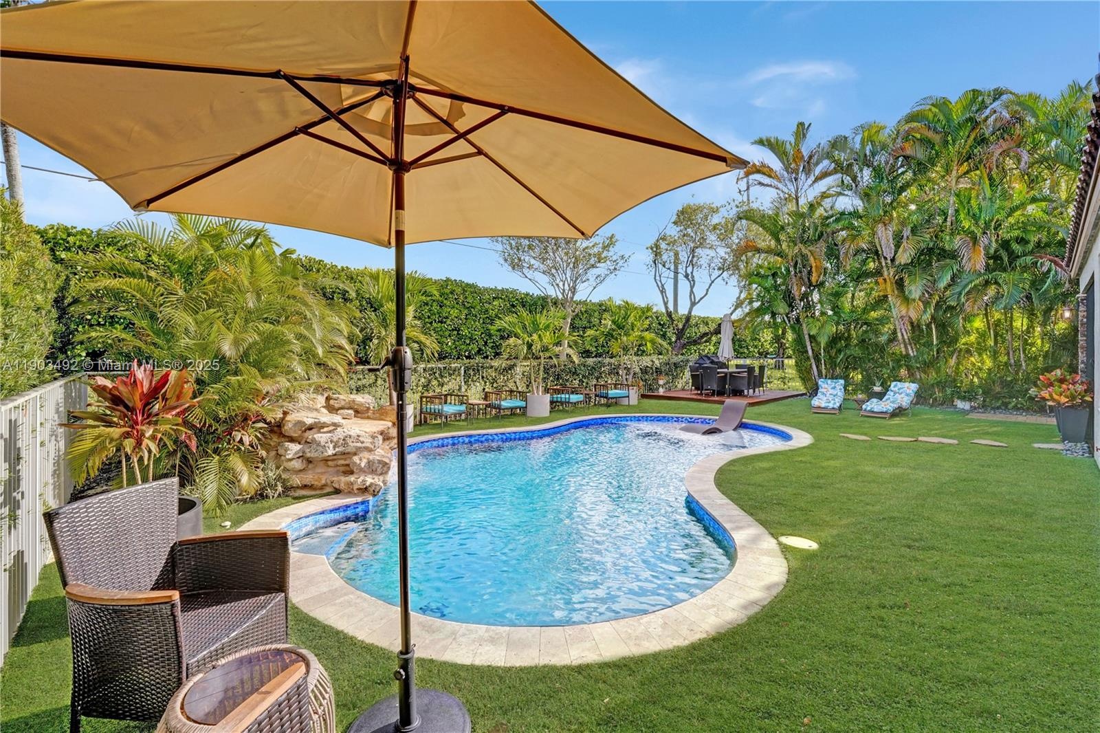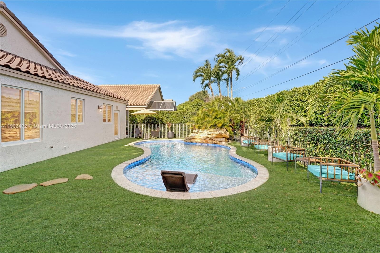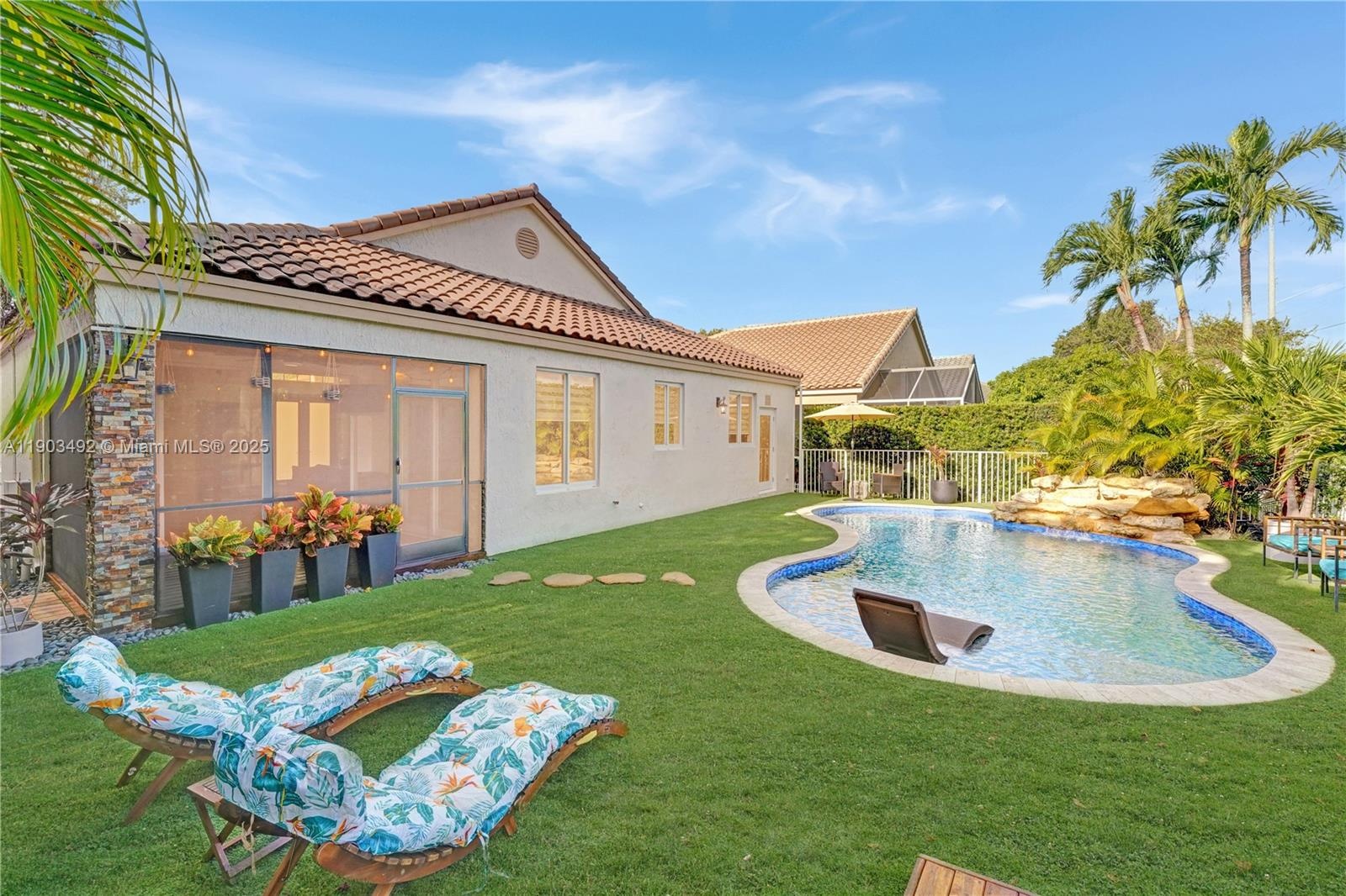 Indulge in luxury living at this exquisitely upgraded Parkland retreat. The resort-style backyard boasts a saltwater pool with lagoon-finish Diamond Brite (2022), a dramatic rock waterfall, new deck (2023) and screened patio (2025). Enjoy serene privacy with jasmine-lined fencing, turf yard and lush landscaping (2023). Inside, a designer kitchen (Dec 2024), upscale lighting, soaring vaulted ceilings, impact windows (2024) and new roof (2024) elevate the home. The AC-ready garage features a new garage door (2024) and premium Epoxy Kings floor. A rare blend of elegance and comfort! Enjoy the exclusive lifestyle of Mayfair at Parkland—a gated enclave in one of South Florida’s most prestigious and family-oriented cities, known for its top-rated schools, lush parks, and serene atmosphere.