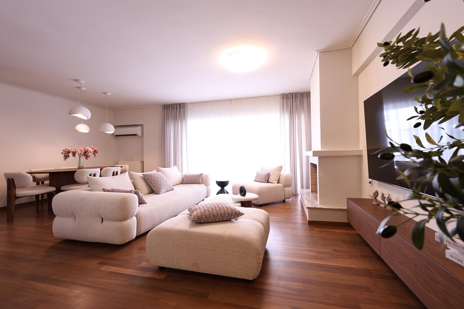 The space is bright and spacious, featuring wooden flooring, 3 bedrooms, 2 bathrooms, a comfortable living and dining area with a fireplacae, and large terraces that provide the perfect setting for relaxation, entertaining, or enjoying the city views. An exceptional location – just a few minutes’ walk from Kolonaki Square and the university district, with its abundance of restaurants, boutiques, museums, and vibrant nightlife, while Mount Lycabettus offers an escape into nature and unforgettable panoramic views.