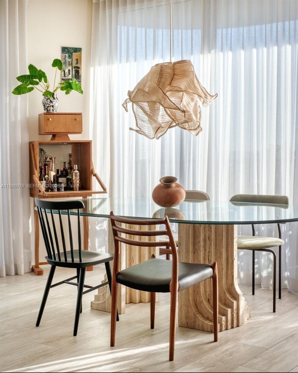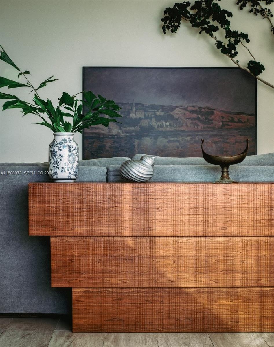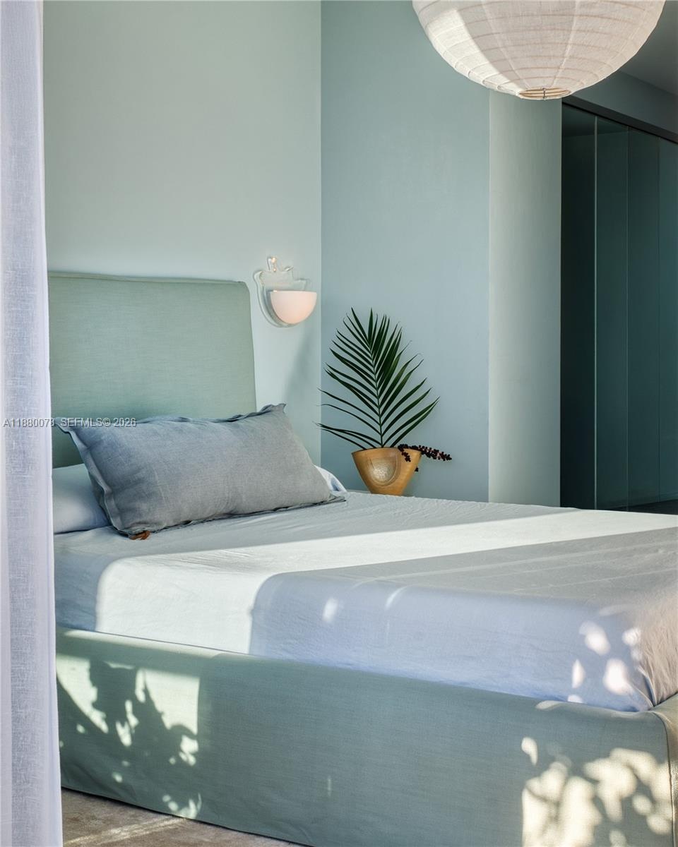 One-of-a-Kind Corner Unit with water views at Hyde Midtown. Unobstructed Biscayne Bay views in this fully renovated high-floor 3 bed / 4 bath 1,435 sq ft—floor-to-ceiling windows, corner unit at Hyde Midtown. Custom designer finishes with Italian Mireri Monticelli lighting, polished nickel and brass bathroom fixtures, built-out California Closets, and new doors. Each bath is finished in sleek microcement. The open-concept kitchen and living space with custom cabinetry, a burlwood-topped island, and direct access to your oversized balcony with bistro seating, lounge chairs, and travertine shelving, perfect for indoor/outdoor living. The main suite offers two closets, a spa-inspired bath, dual vanities, & an oversized shower. Comes with 2 deeded parking spots & a private storage unit.