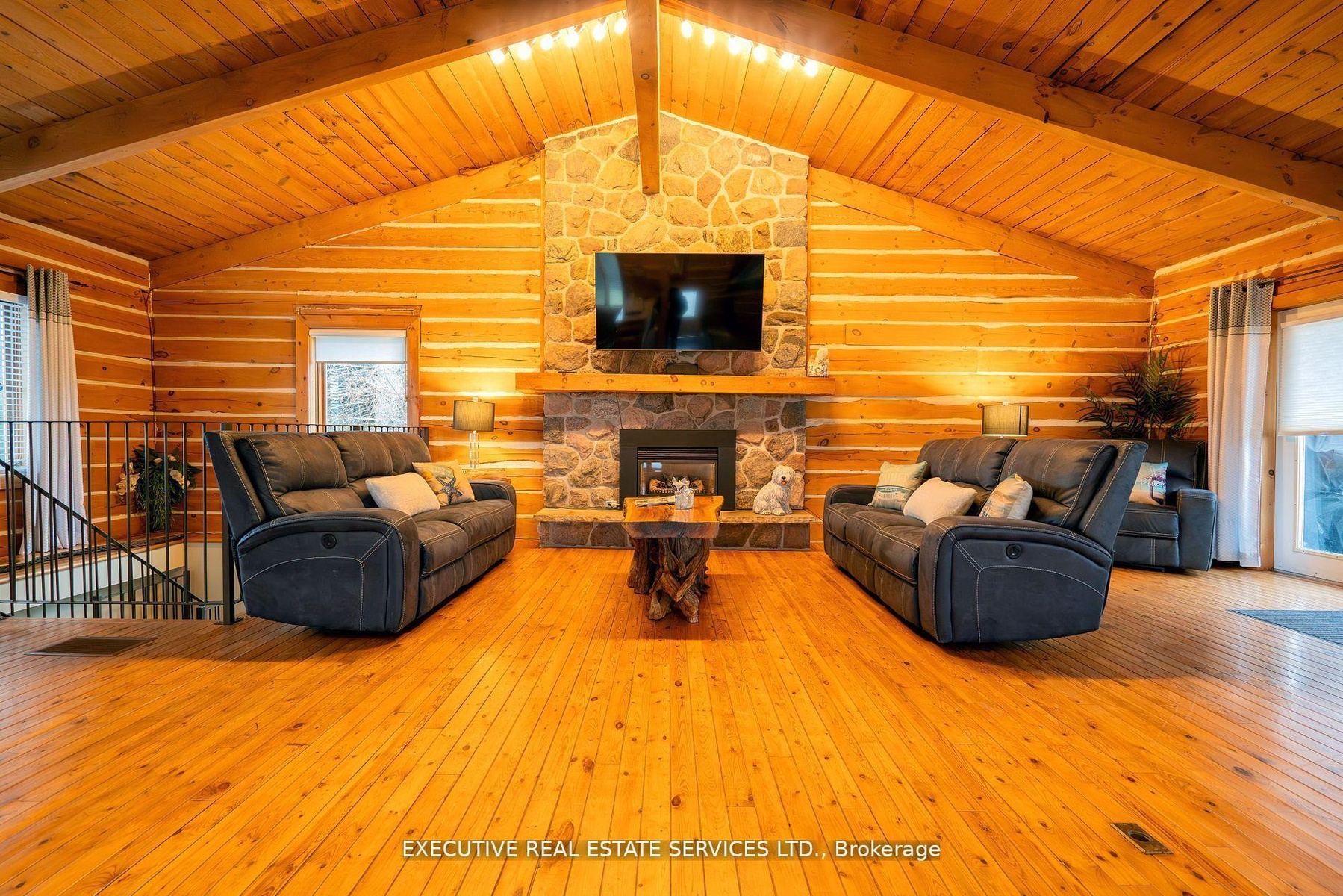 Welcome To 795744 Grey Rd 19! This Beautiful Log Home Features 3 Bedrooms, 3 Bathrooms, & A Fully Functional Layout! This GEM Of A Home Is Situated On A 0.457 Acre Lot, Making It The Perfect Cottage Or Primary Residence For You. Professionally Sand Blasted & Stained Exterior (2023), Open Concept Main Floor With Cathedral Ceiling. Plenty Of Windows Flooding The Area With Natural Light! Upgraded & Fully Equipped Kitchen With New Stainless Steel Fridge, Gas Stove, Dishwasher, Quartz Counter Tops, Cupboards, & Vented Range Hood! Main Floor Features A Beautiful Stone To Ceiling Gas Fireplace, & Hardwood Flooring Throughout! 3 Spacious Bedrooms On The Lower Level. Primary Bedroom Features A Second Fireplace & Soaker Tub. Primary Washroom Has Been Updated With A Standing Glass Shower & Heated Floors! The Landscaped Lot With Pear Trees, Oversized Deck (2023), & River Running Through Make This Yard Perfect For Entertaining Or Relaxing All Year Round!