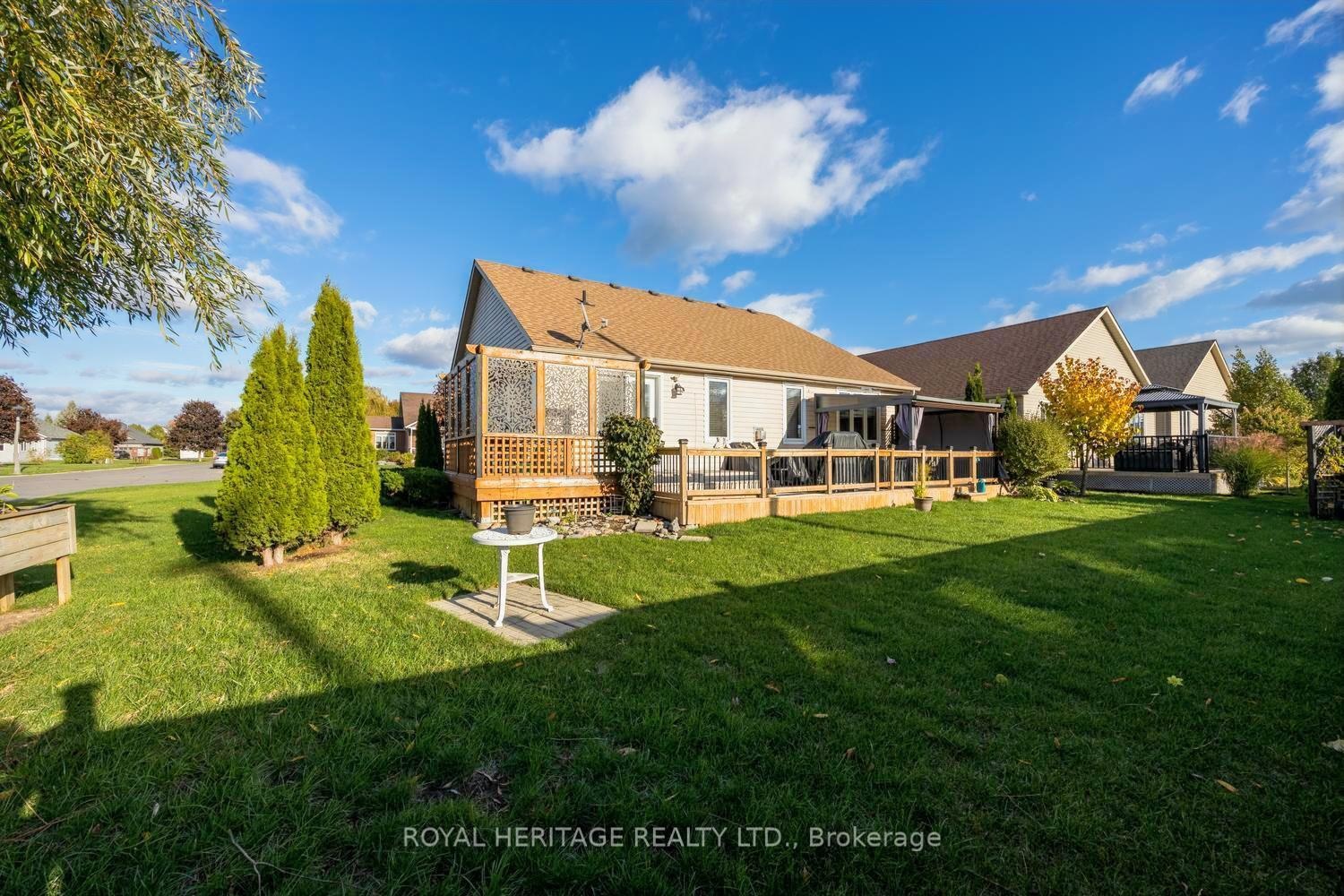 Welcome to 48 Ward Drive in Brighton by the Bay! A beautifully maintained 2-bedroom, 3-bath bungalow offering over 2,500 sq ft of finished living space on a desirable corner lot. Designed for comfort and style, this home features gleaming hardwood floors and a bright open-concept layout that seamlessly connects the living, dining, and kitchen areas, making this home ideal for entertaining or everyday living. The sunlit kitchen overlooks the main living space and includes granite countertops, a peninsula breakfast bar, newer appliances including a gas stove, and ample cabinetry. Garden doors off the dining area lead to a spacious deck and private backyard retreat, perfect for relaxing outdoors. Cozy up by one of the two gas fireplaces, located in the main floor living room and the fully finished lower-level recreation room. The spacious primary bedroom features a luxurious 5-piece ensuite, offering a spa-like escape with a double sinks. A second bedroom, a 3-Pc bathroom and a full-size washer and dryer complete the main floor. The finished basement greatly expands your living space with multiple functional areas, including a generously sized rec room, sauna, 3-piece bath, and a workshop/hobby area making it ideal for crafts, storage, or projects. The heated double car garage with inside entry adds year-round convenience and extra storage. Located in a warm and welcoming community near the shores of Lake Ontario, Brighton by the Bay offers an active, adult-lifestyle setting close to walking trails, parks, marinas, and everyday amenities. Residents also enjoy membership at the Sandpiper Community Centre for only $40/month, which includes access to social programs, fitness activities, clubs, and community events. This exceptional home offers premium finishes, thoughtful details, and a lifestyle to love in one of Brighton's most sought-after communities. Don't miss your chance on this home and book your private viewing today!
